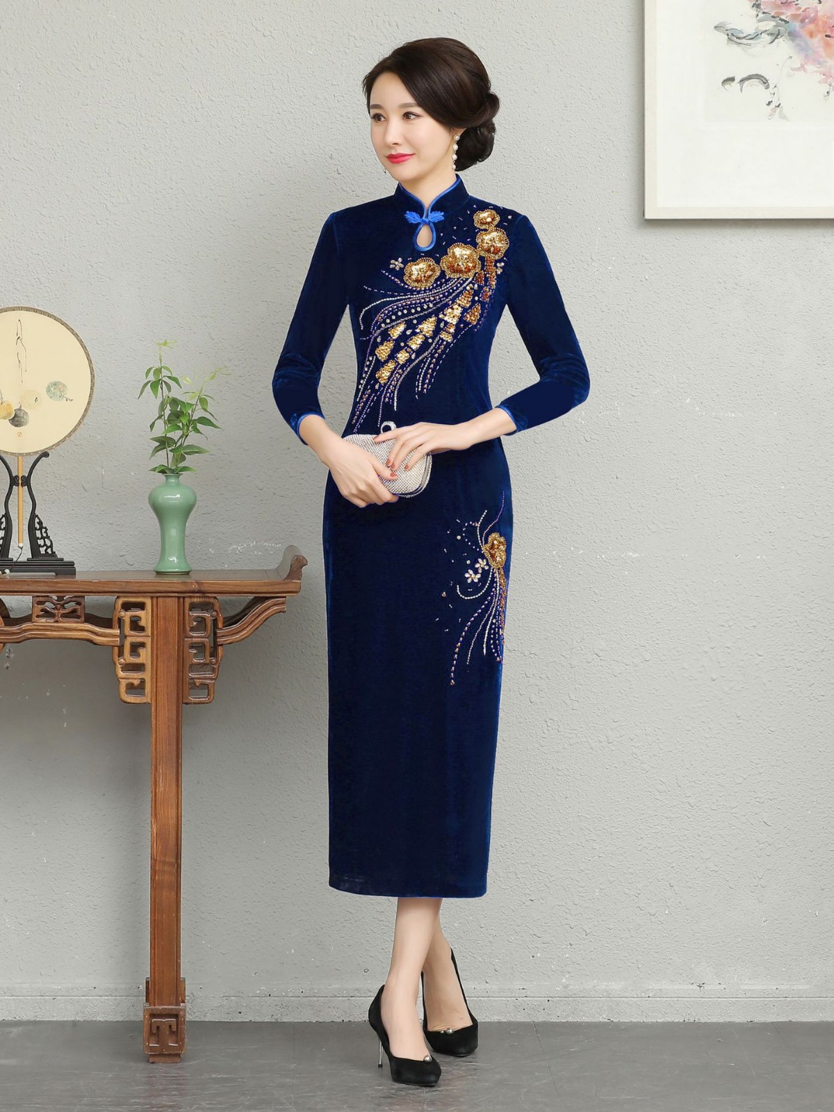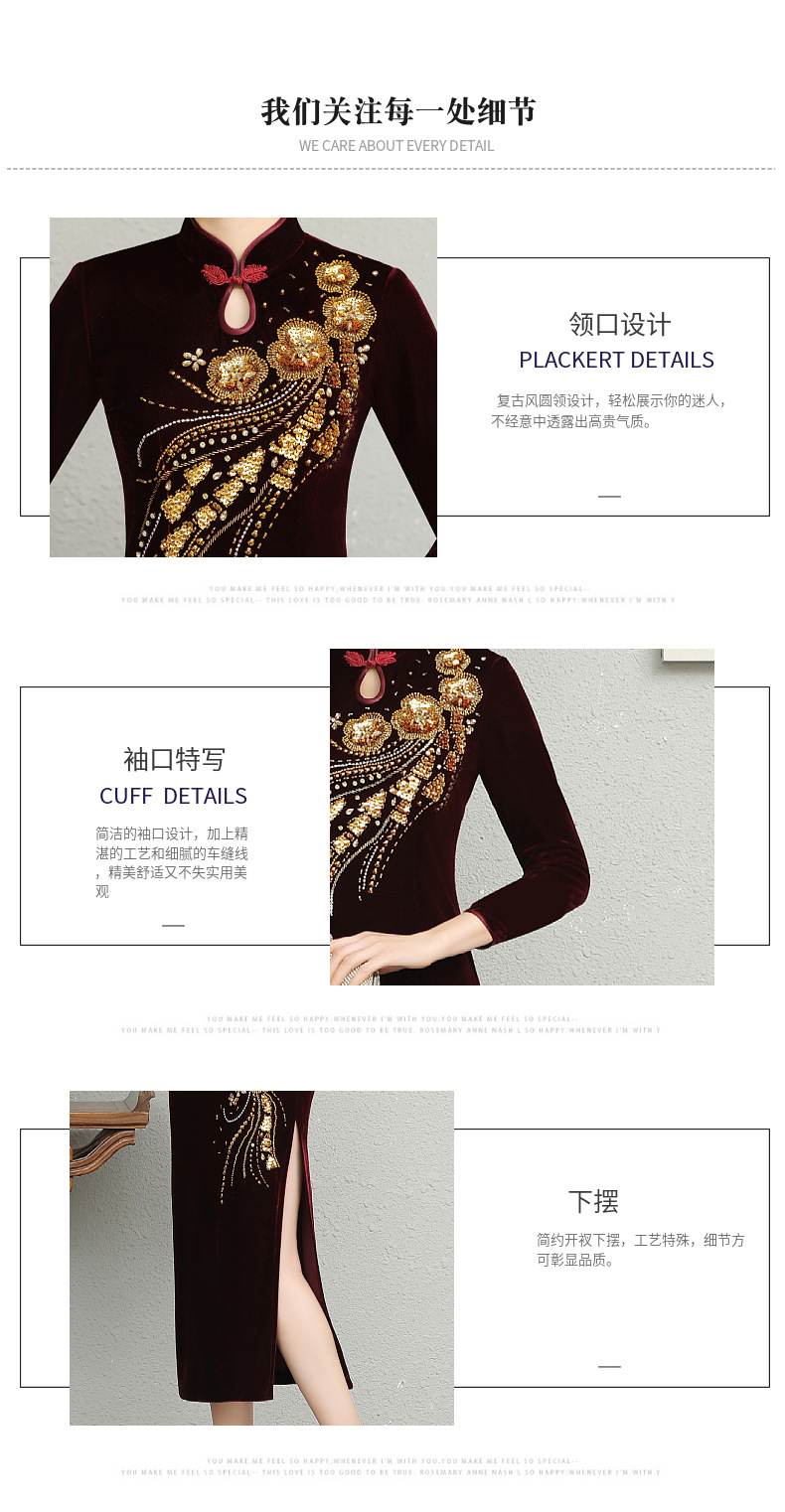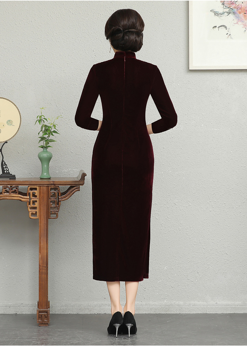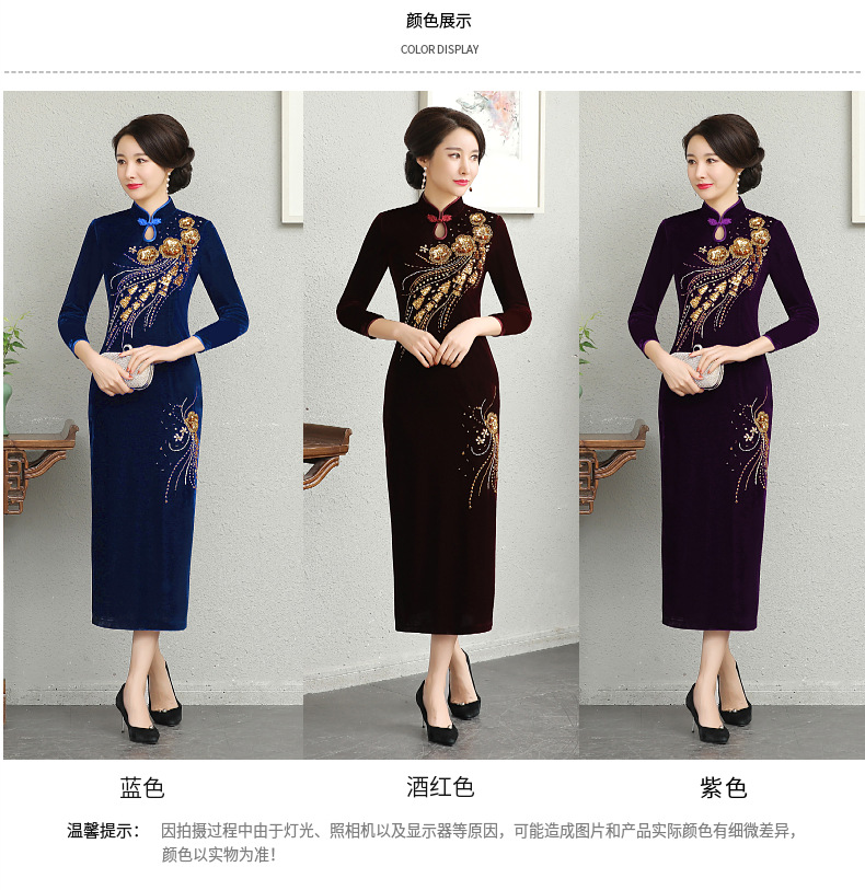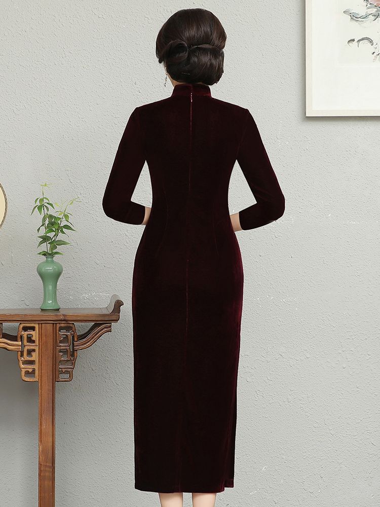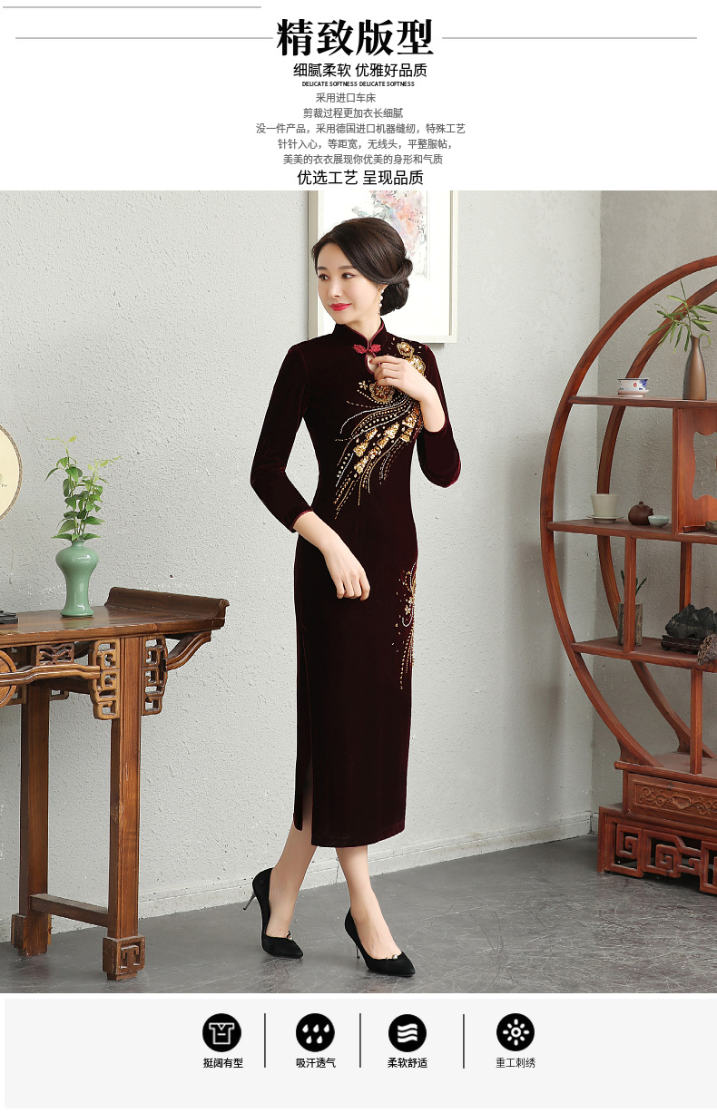 В наличии: флисовое и утолщенное платье-ципао для торжеств, расшитое бисером, новое осенне-зимнее бархатное платье для мам, цельное, оптом.