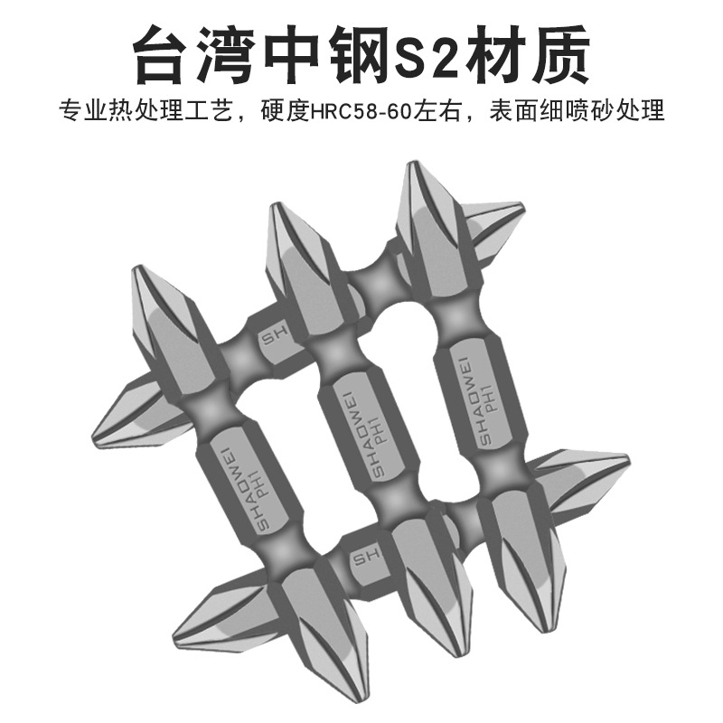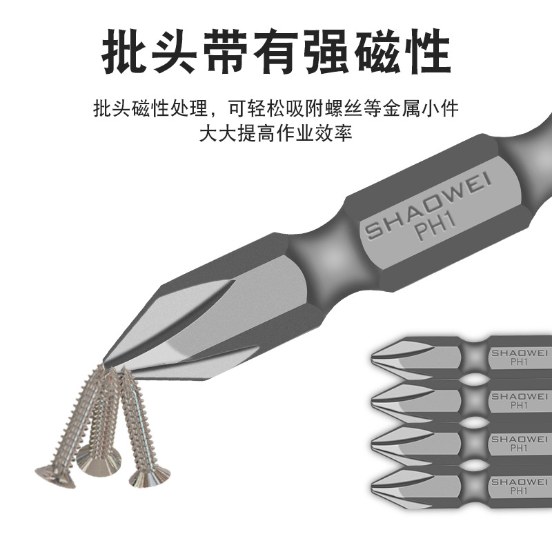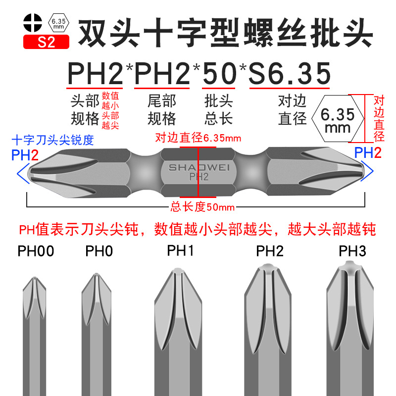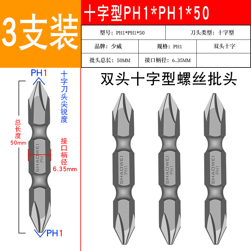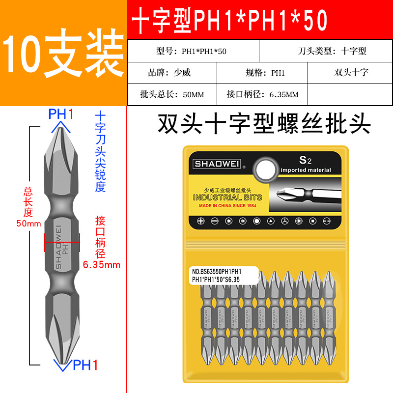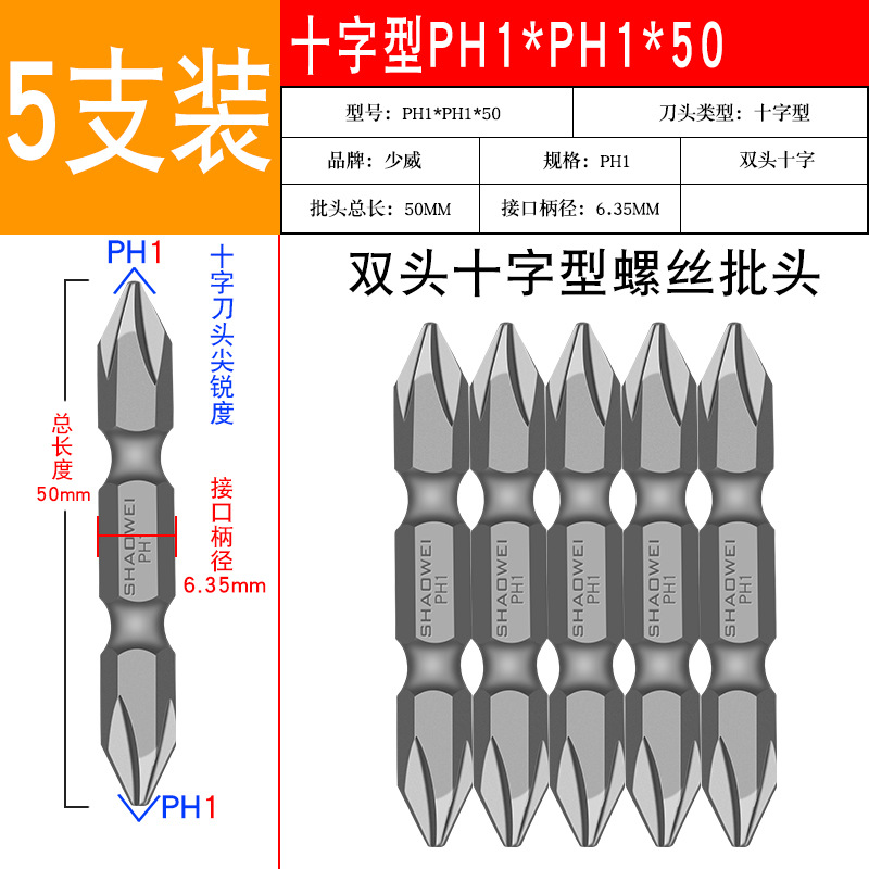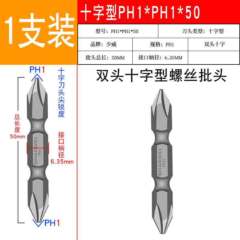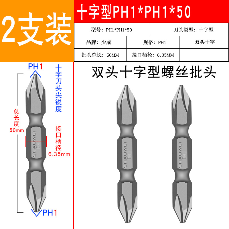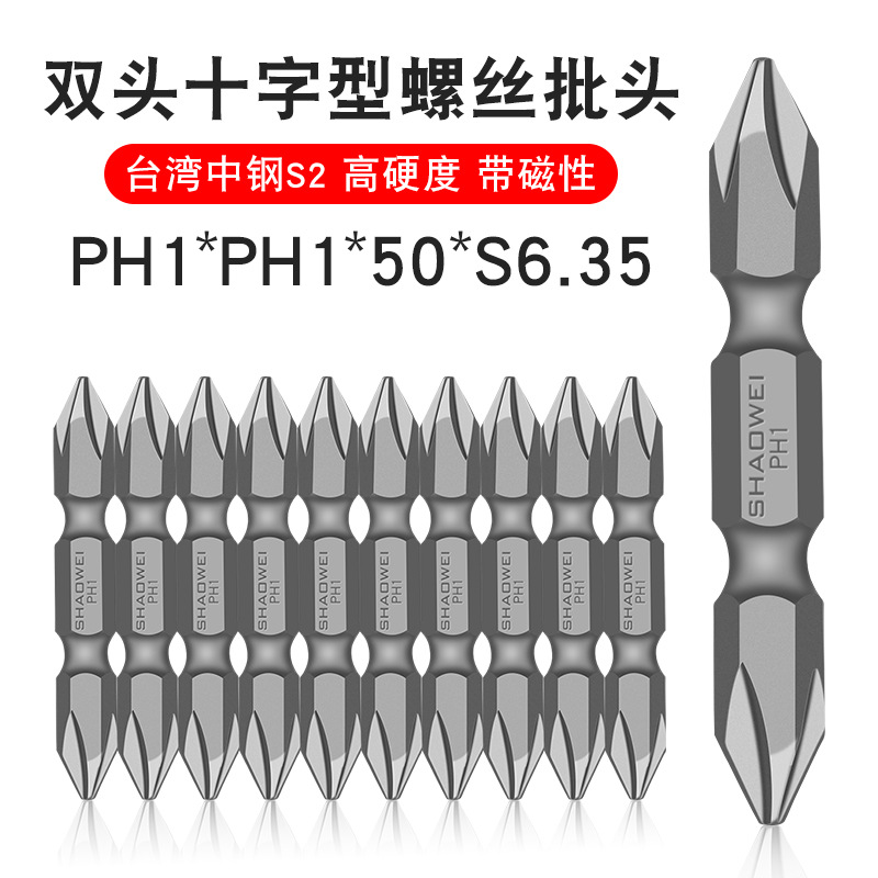 Shaowei Двухголовая крестообразная головка Двойная головка отвертки Сильная магнитная головка отвертки PH1-PH1-50-6.35