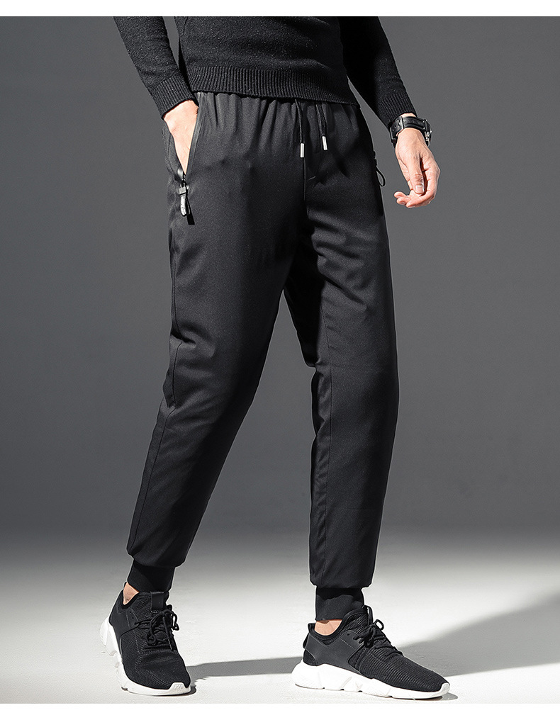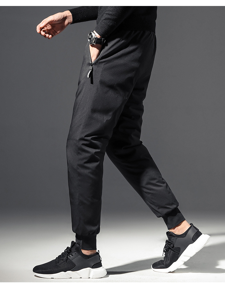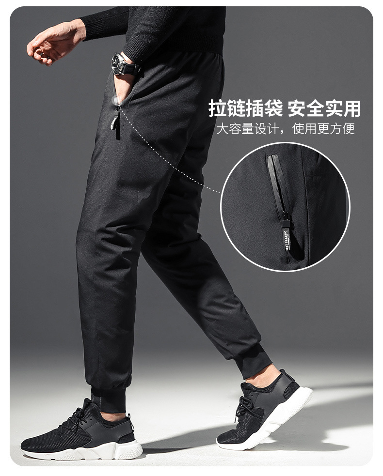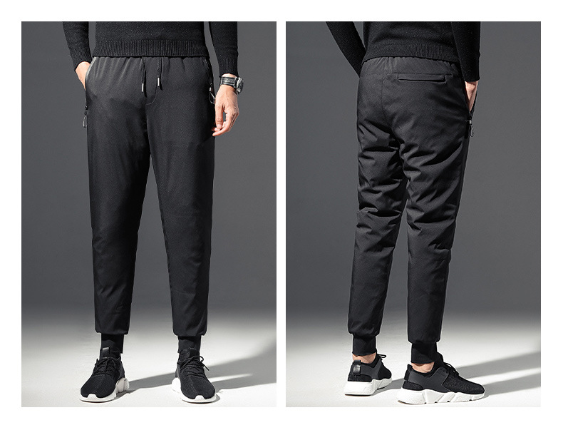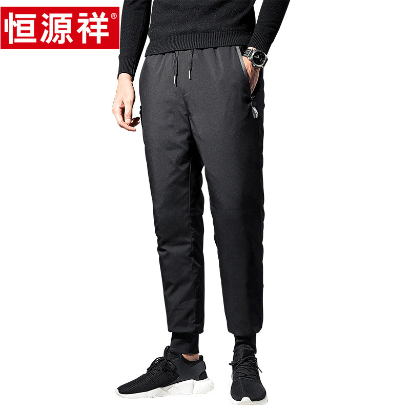 Мужские Пуховые брюки Hengyuanxiang, новые утолщенные черные брюки на флисовой подкладке, теплые прямые повседневные брюки на внешней основе, Осень-зима