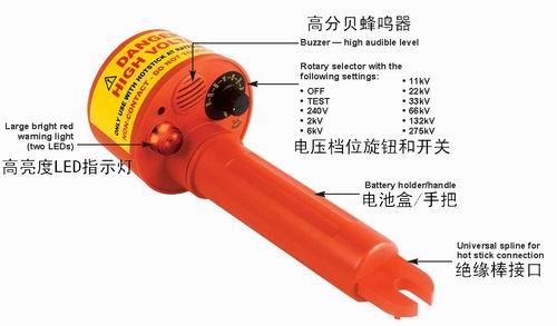 高压验电器提供作为检查通电缆线、检查软性缆线、检查接地设备、检查氖气灯、追踪通电电线、检查高频率辐射、侦测残留或导入电压。
