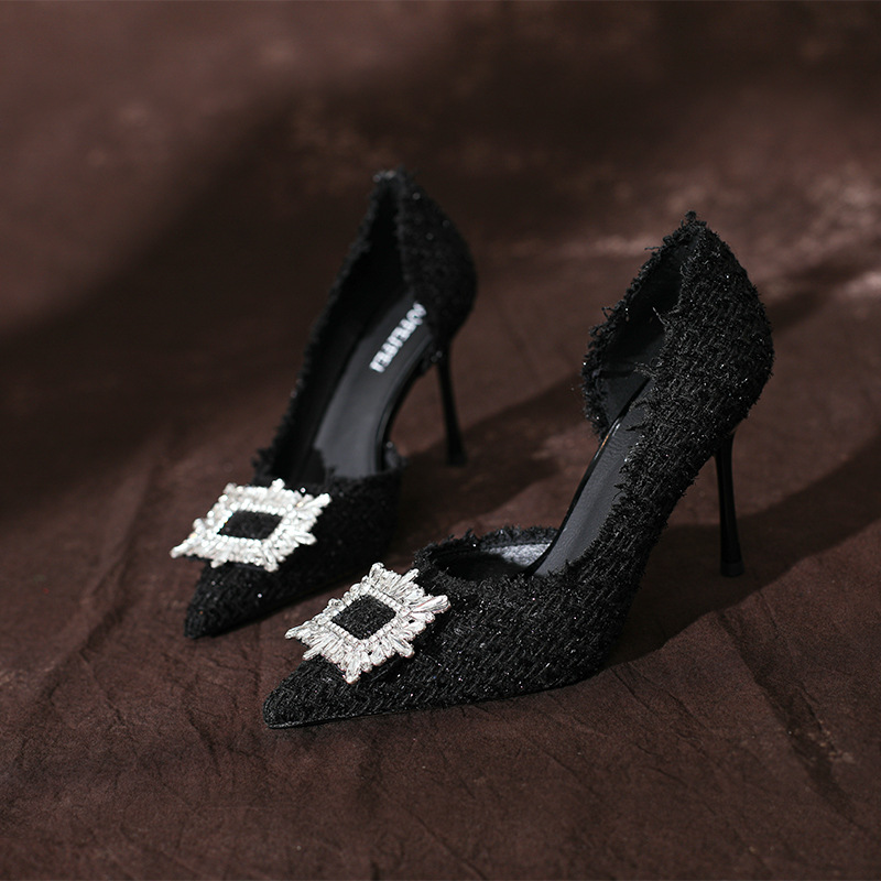 868-130 поколение моды для волос женские туфли на высоком каблуке с острым стразами 2022 зима Новые туфли на тонком каблуке