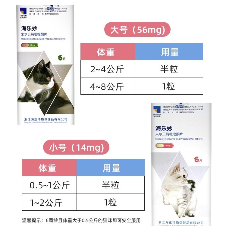 【注意事项】(1)不推荐用于 6 周龄以内或体重小于 0.5kg 的猫。 (2)猫服用本品前,需由兽医检查是否已感染心丝虫。 (3)避免用于患有肝、肾损坏的猫。