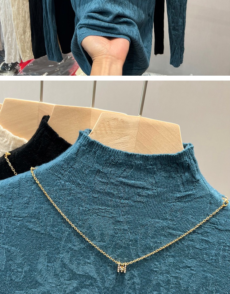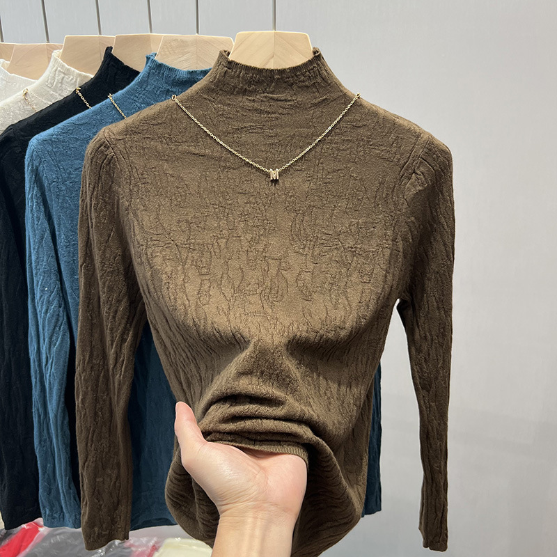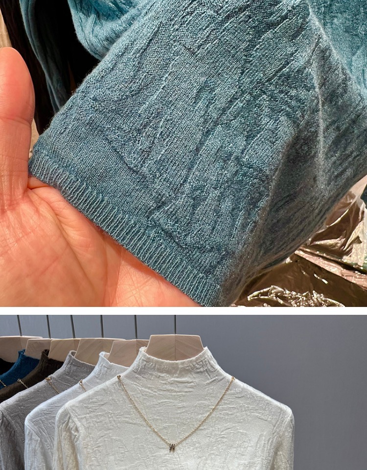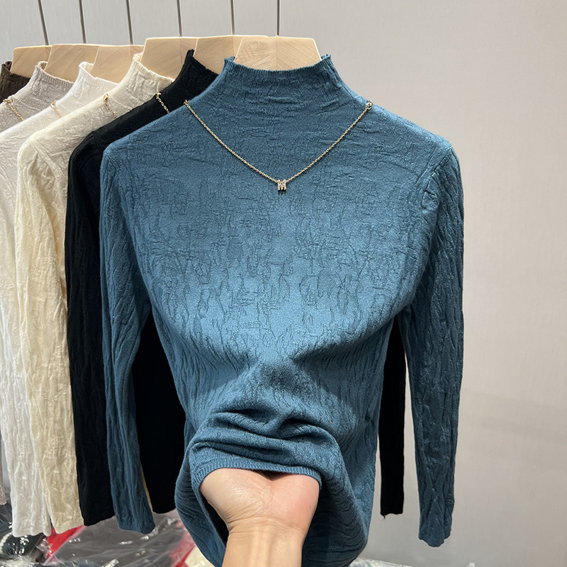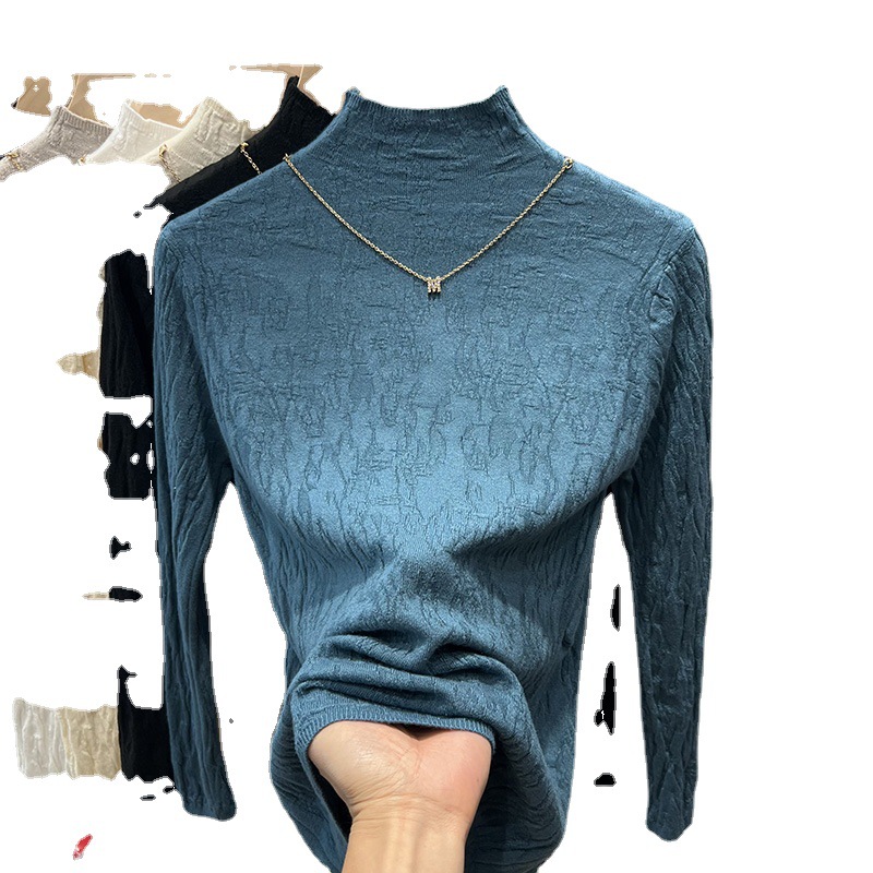 Трикотажная рубашка с полувысоким воротником, Базовая рубашка, весенне-осенний топ со средним воротником, Женский Осень/Зима 2022, новый стильный внутренний свитер