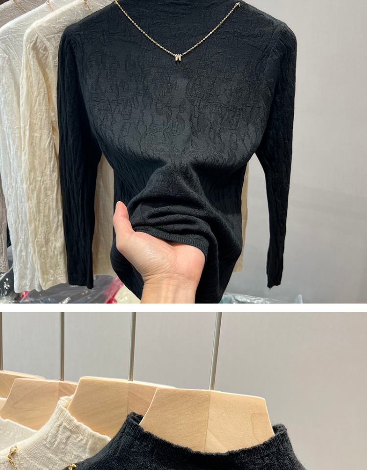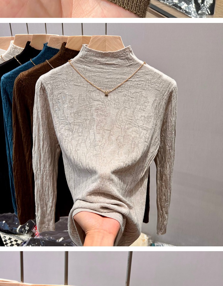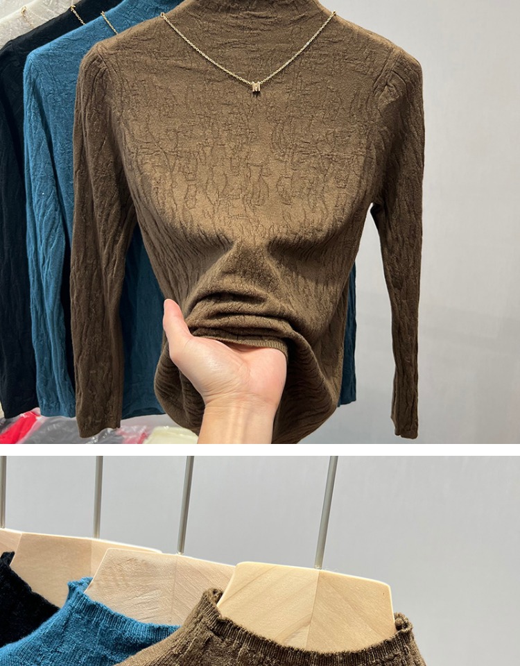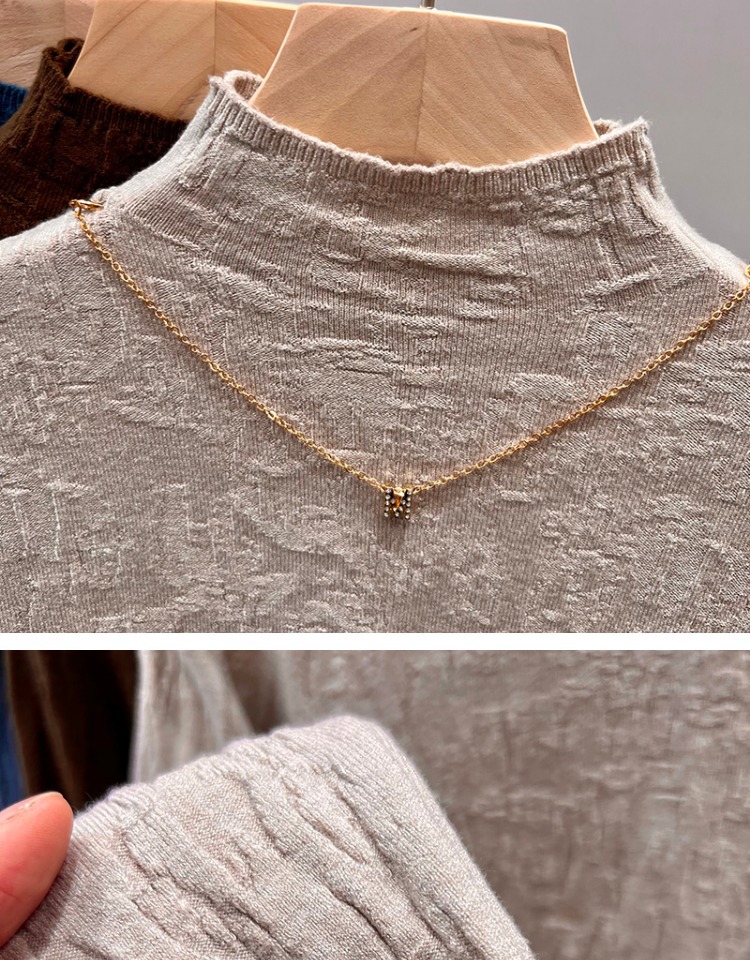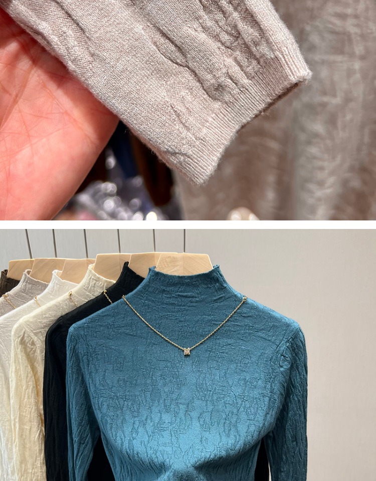 Трикотажная рубашка с полувысоким воротником, Базовая рубашка, весенне-осенний топ со средним воротником, Женский Осень/Зима 2022, новый стильный внутренний свитер