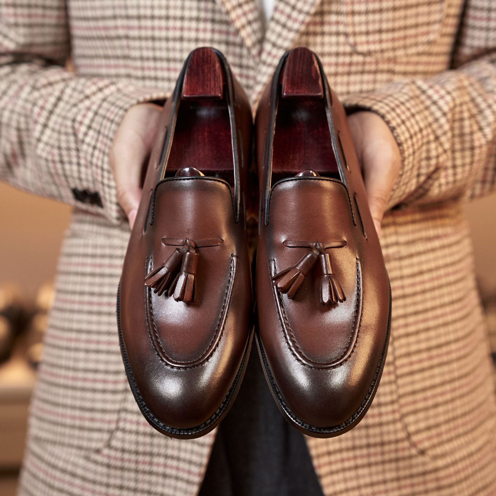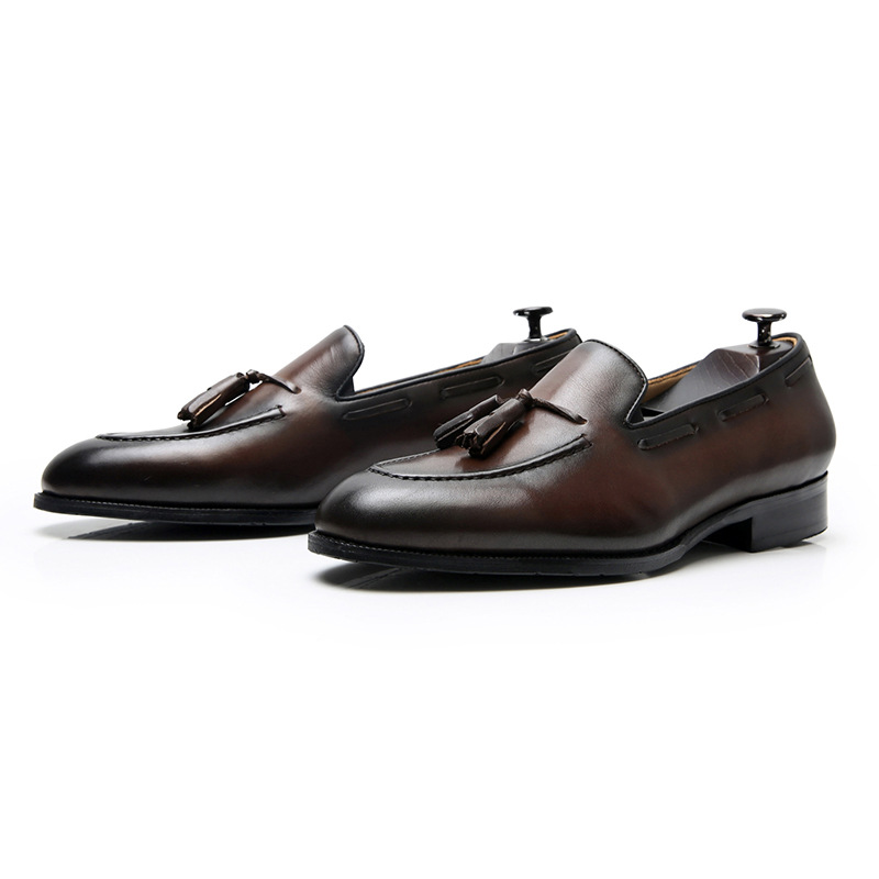 Мужская повседневная кожаная обувь оптом из воловьей кожи первого слоя на одной педали низкие британские Мокасины кожаная Автомобильная прошивка обувь ручной работы