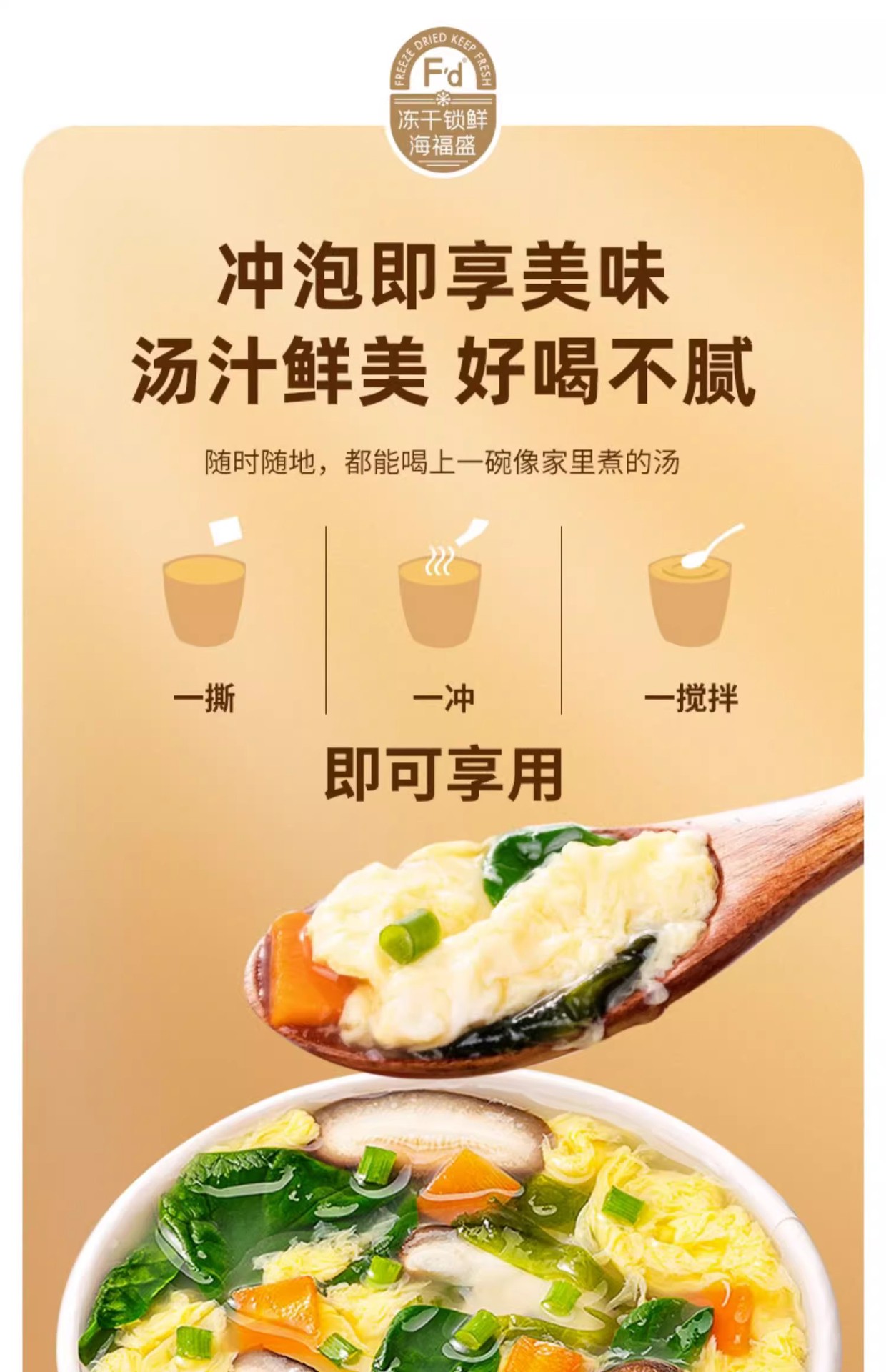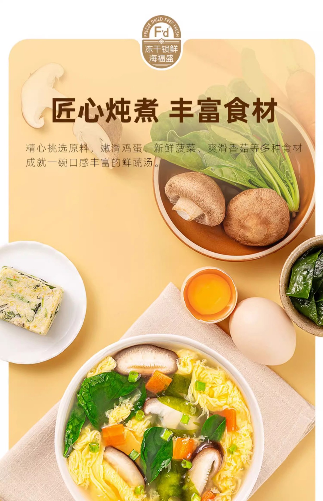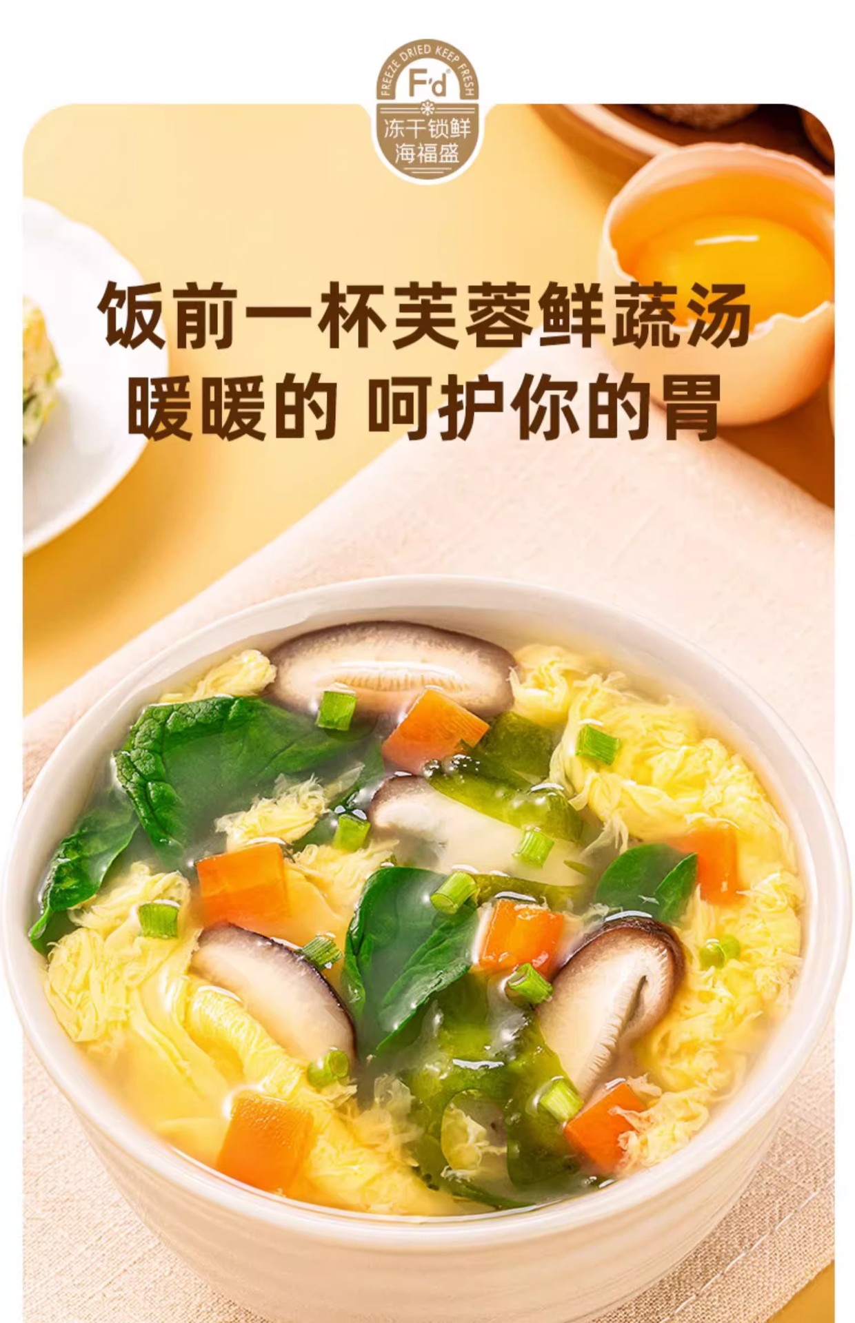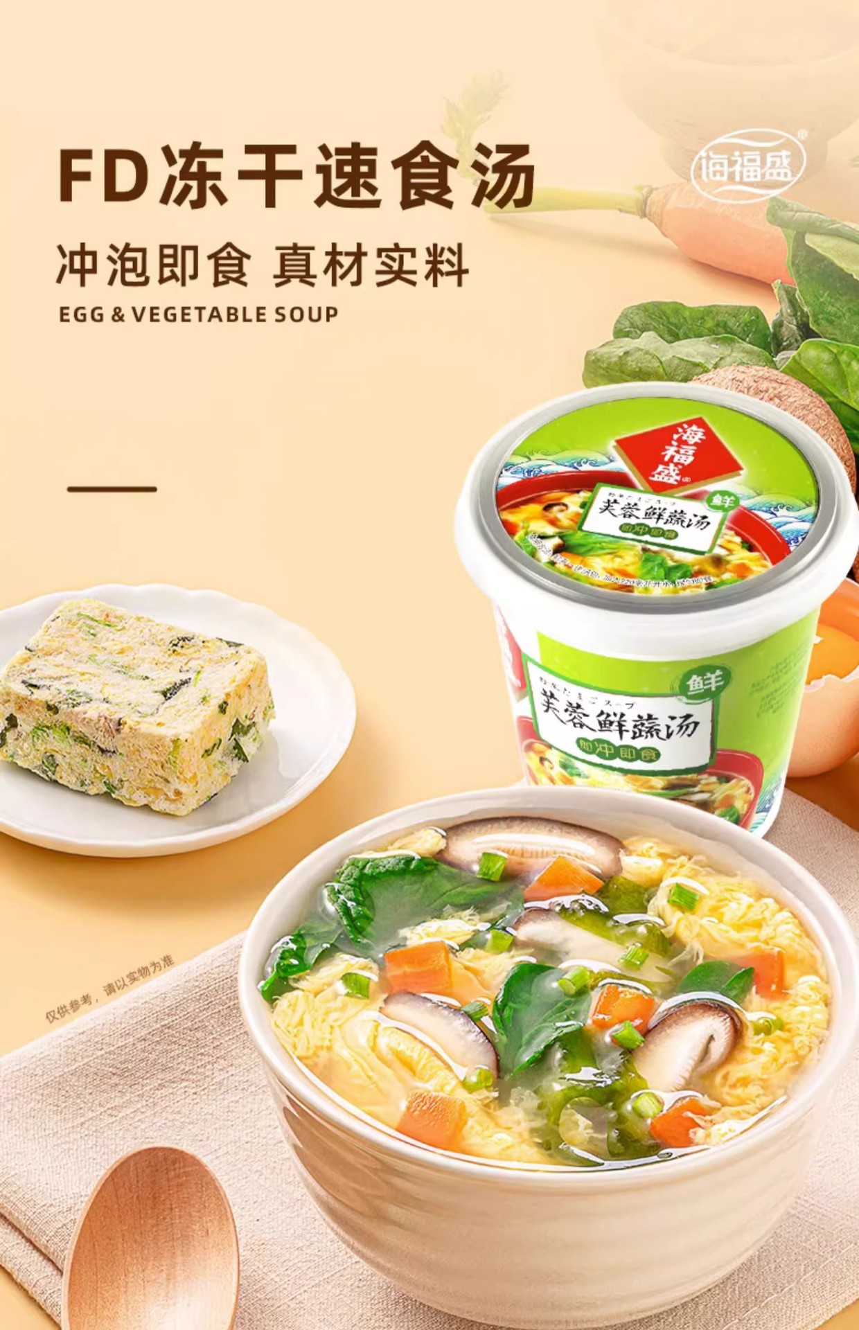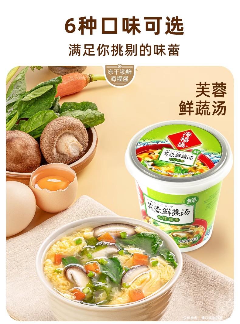 Haifusheng Суп из свежих овощей с гибискусом, 12 чашек, пакет быстрорастворимого супа, овощной суп с морскими водорослями и яйцом, готовый к употреблению, маленькая упаковка