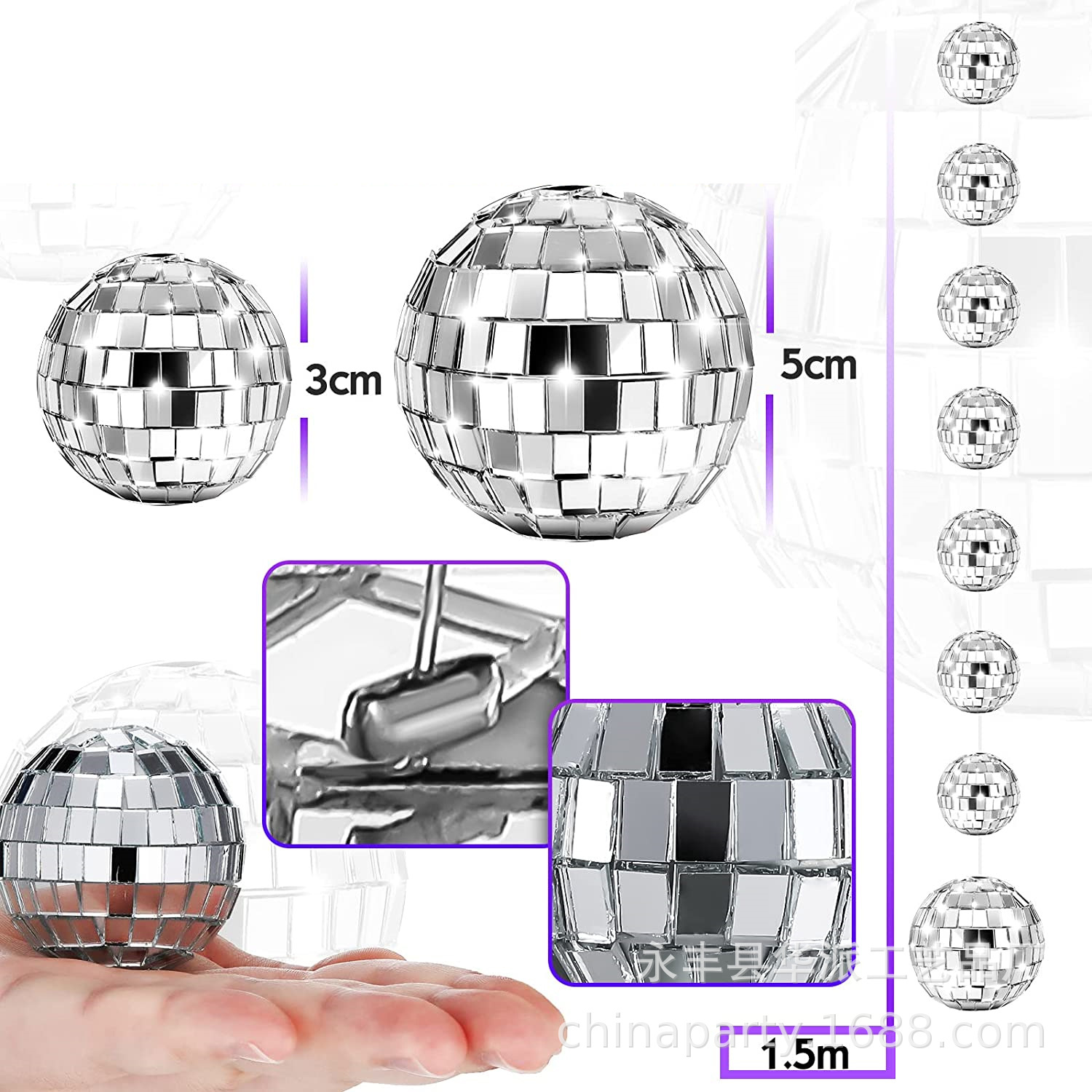 数量:迪斯科球7个3cm,1个5cm总共8个迪斯科球