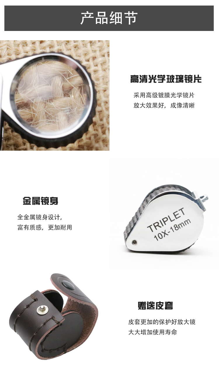 10 раз 18 мм Складной цельнометаллический Идентификация антикварного нефрита с кожаной оболочкой ювелирного стекла увеличительное стекло портативное