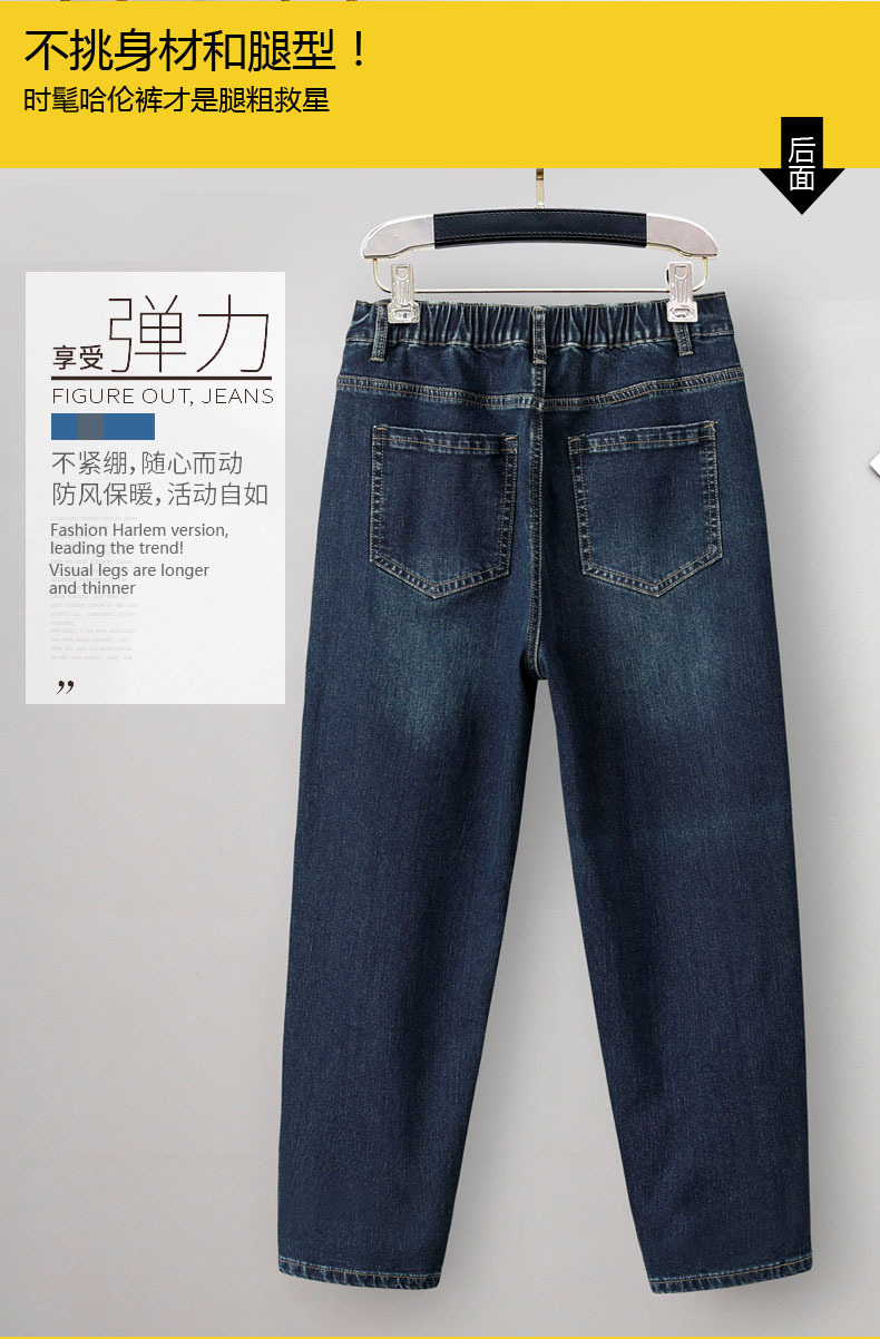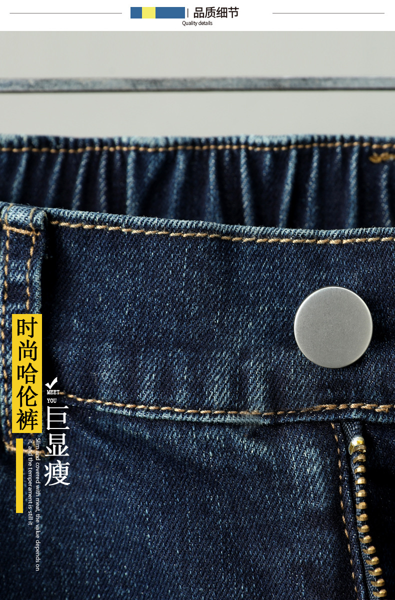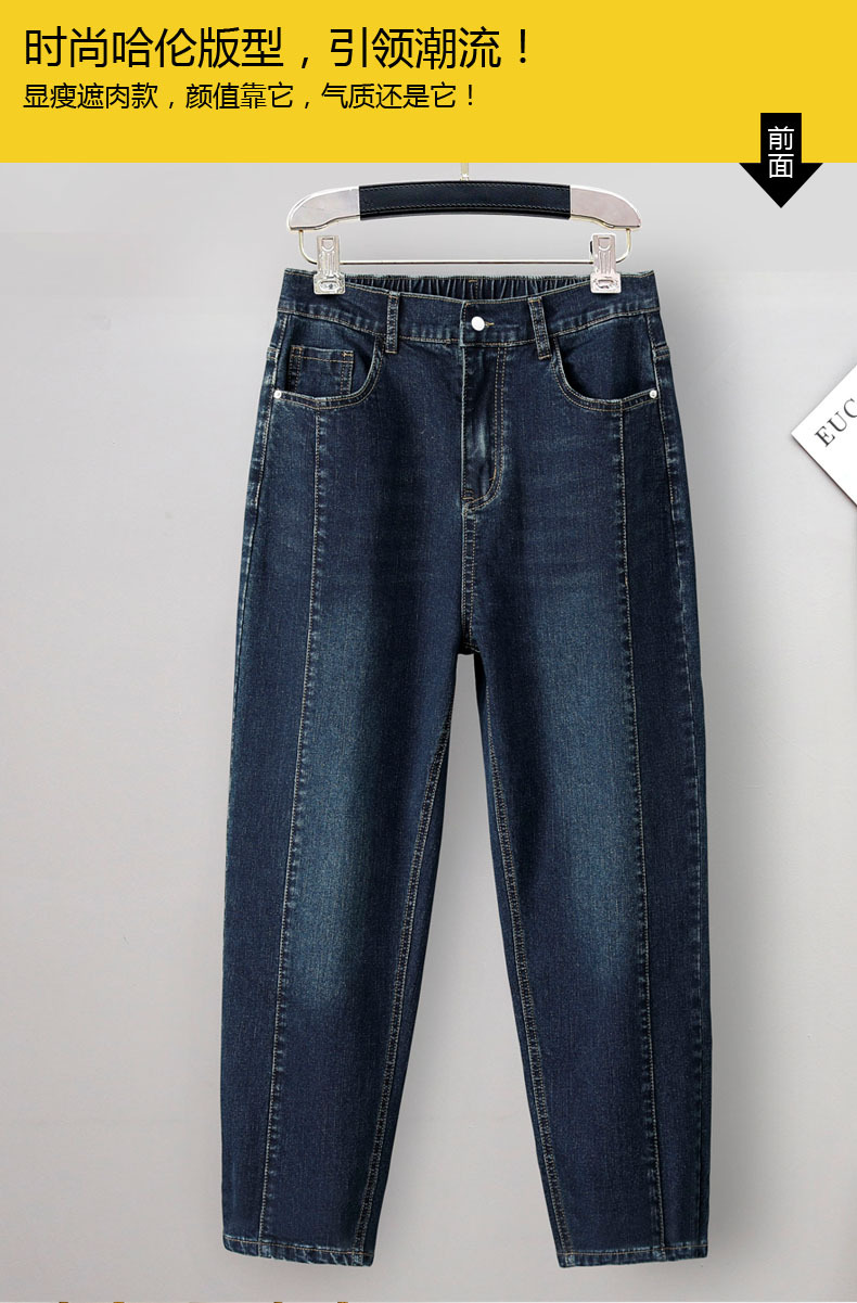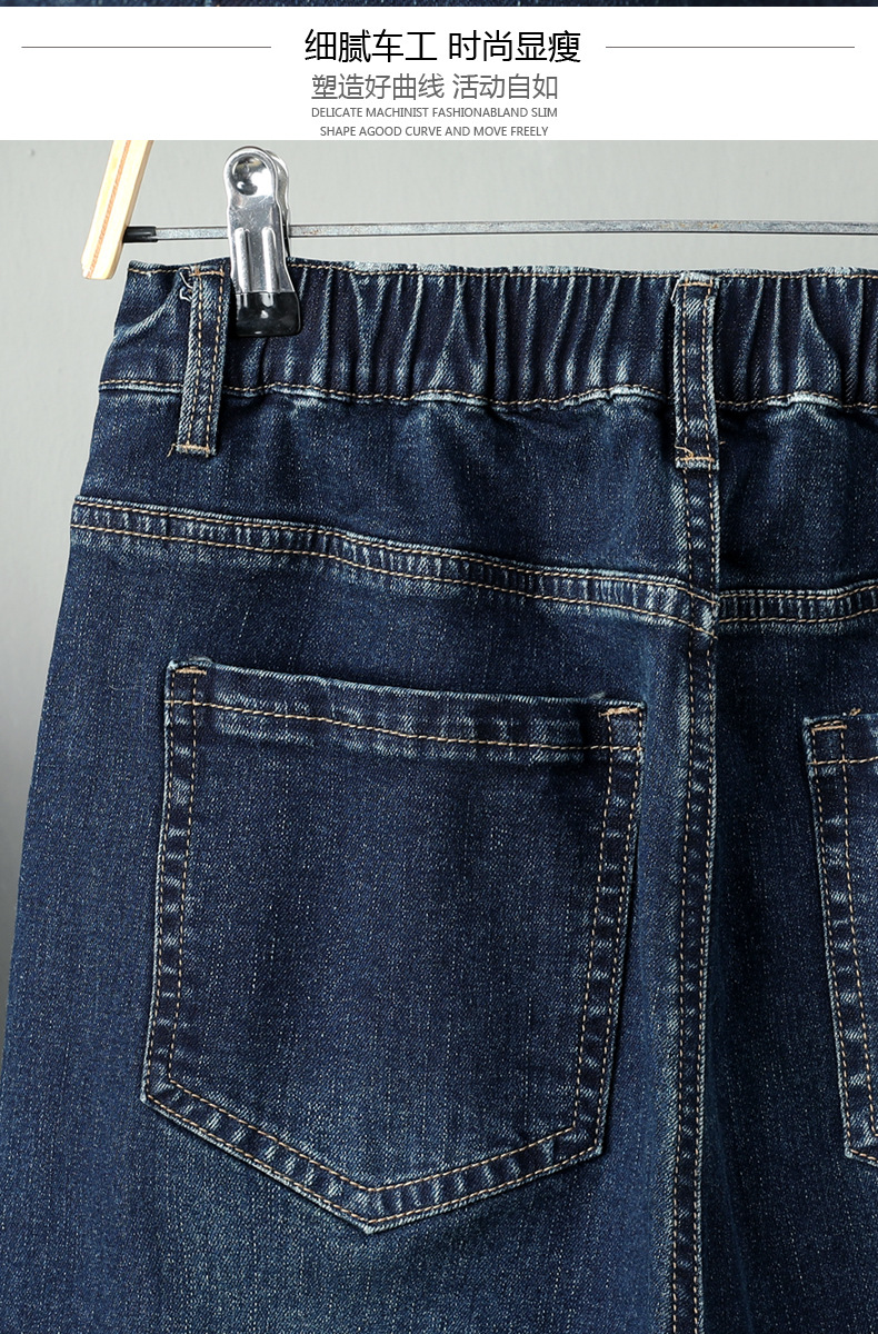 Весна и осень Новый стиль укороченные брюки для полных девушек серо-синие эластичные джинсы женские 230 кг эластичные брюки с высокой талией свободные стройнящие