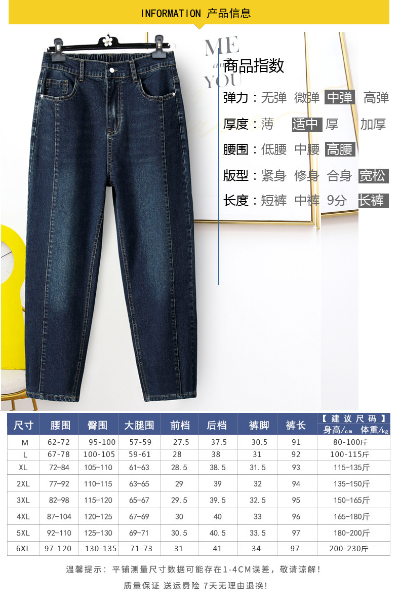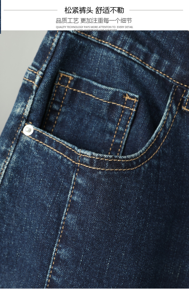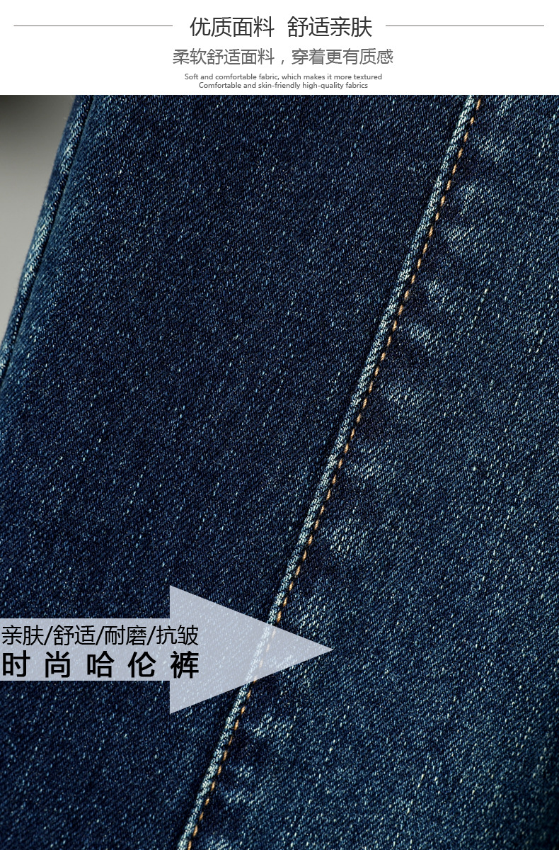 Весна и осень Новый стиль укороченные брюки для полных девушек серо-синие эластичные джинсы женские 230 кг эластичные брюки с высокой талией свободные стройнящие