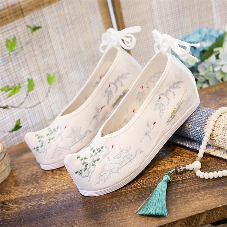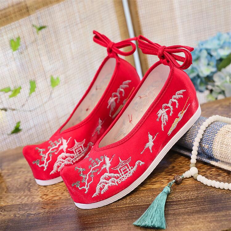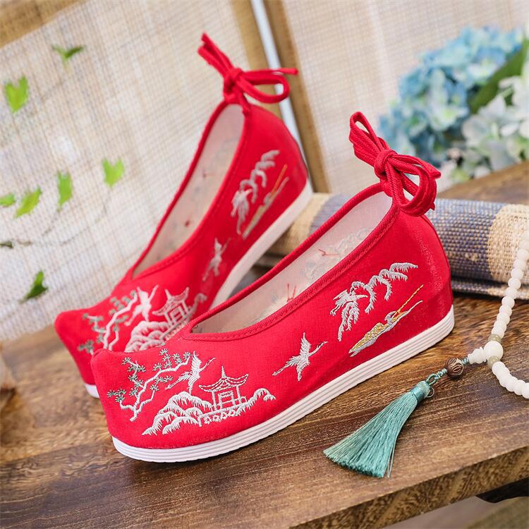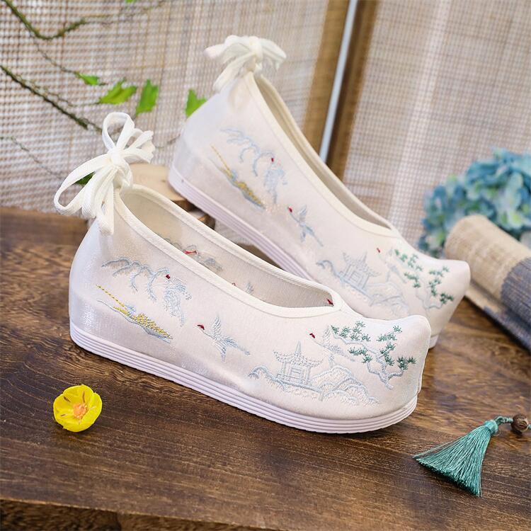Поэтичная и живописная 2023 новый стиль, соответствующий антикварной китайской одежде, обувь с вышивкой, обувь для увеличения внутренней высоты, лук, деформированная голова, старинная одежда, Студенческая обувь