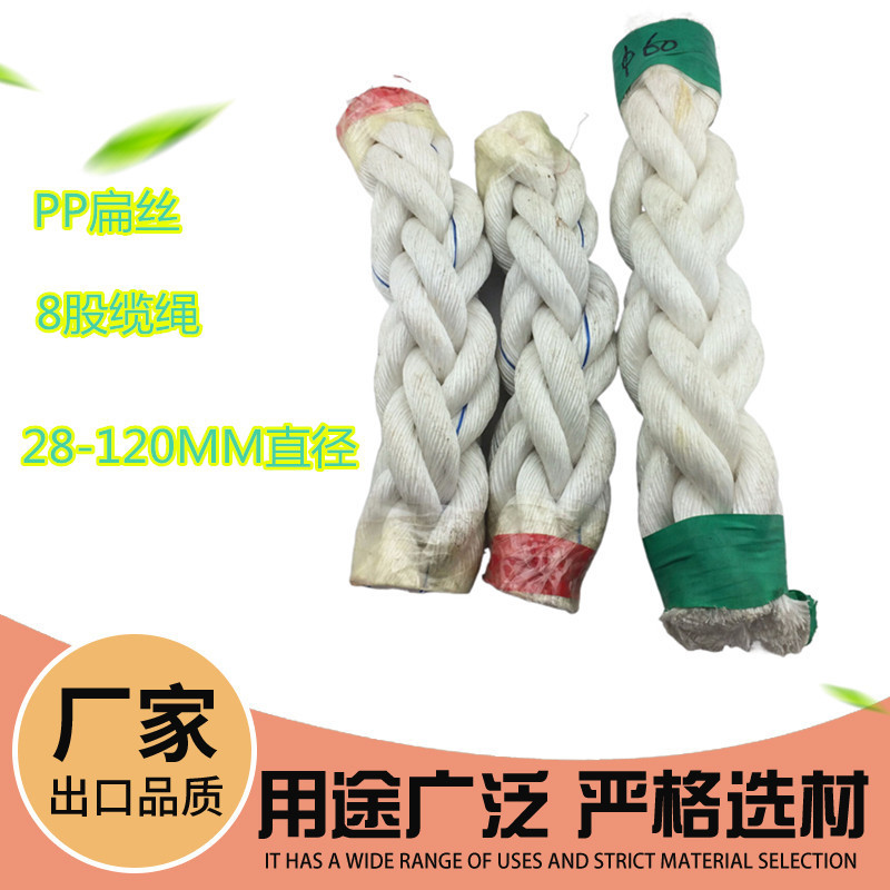 Производители поставляют 8-прядный или 12-прядный кабель, полипропиленовый плоский кабель, лодочный трос, якорный канат, оплетка веревки