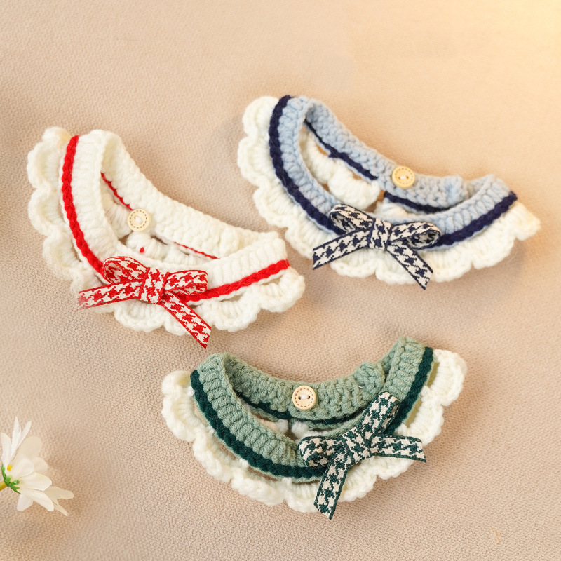 Кошка Шарф Домашнее Животное Кошка Собака Кролик Шарф Цветок Вязание Крючком Вязаный Воротник Плюшевый Beaune Шерсть Вязаный Милый