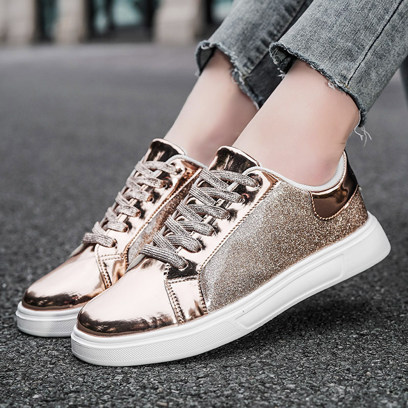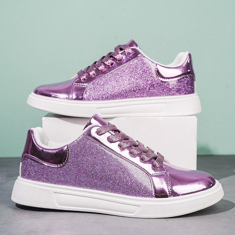 Весенне-осенние корейские повседневные спортивные настольные туфли, модные женские туфли с глянцевым золотом, низкие туфли на плоской подошве со шнуровкой, Фиолетовые женские туфли