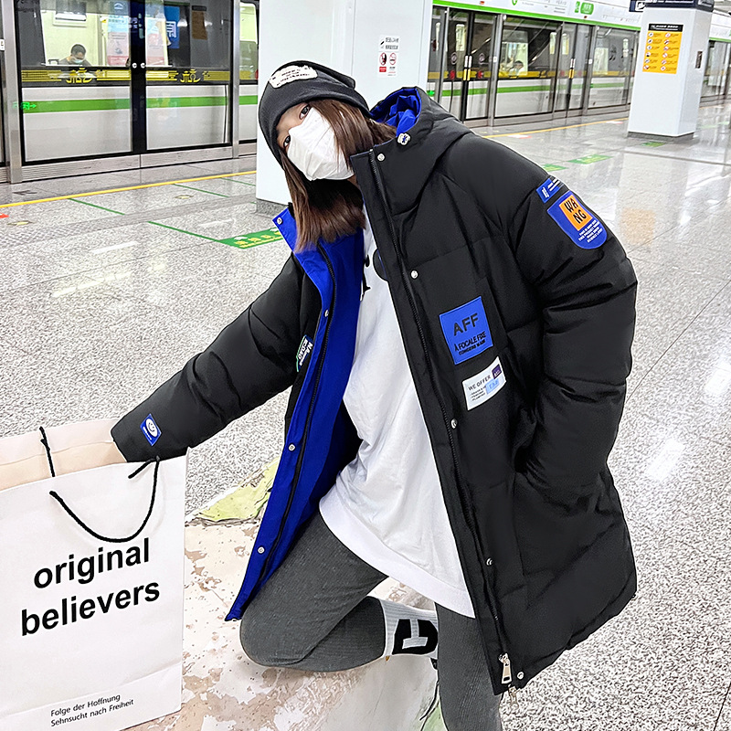 Двустороннее пуховое пальто на хлопковой подкладке, Женское зимнее Свободное пальто на хлопковой подкладке в Корейском стиле средней длины, утепленное Двустороннее пальто для студентов
