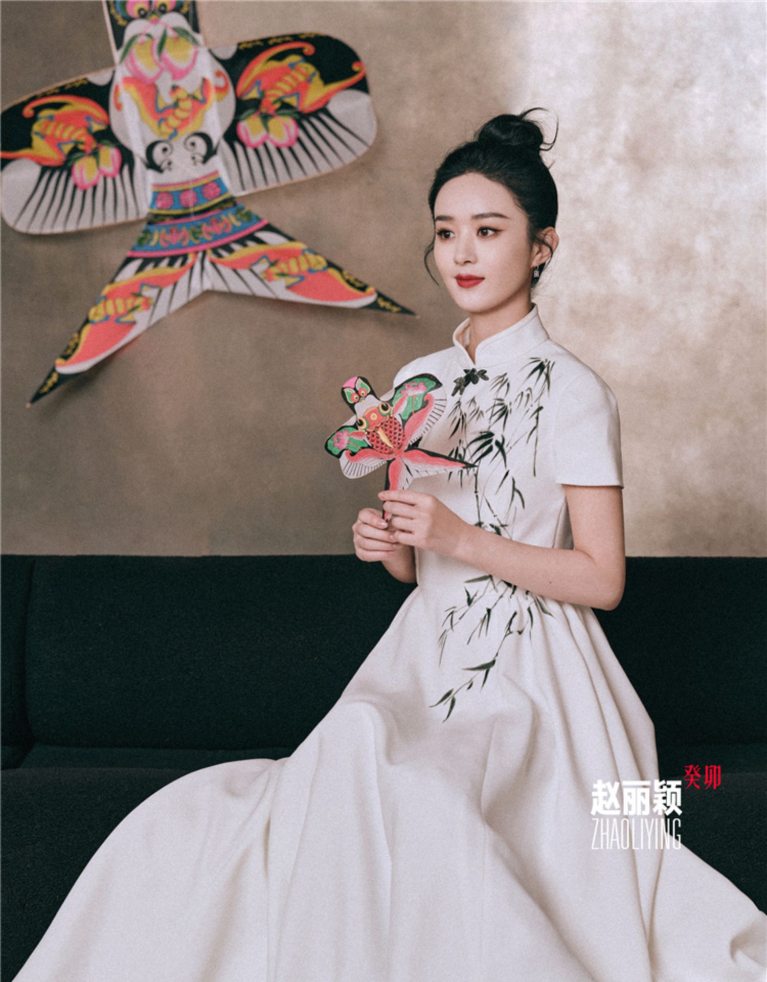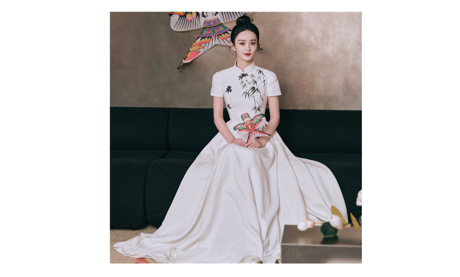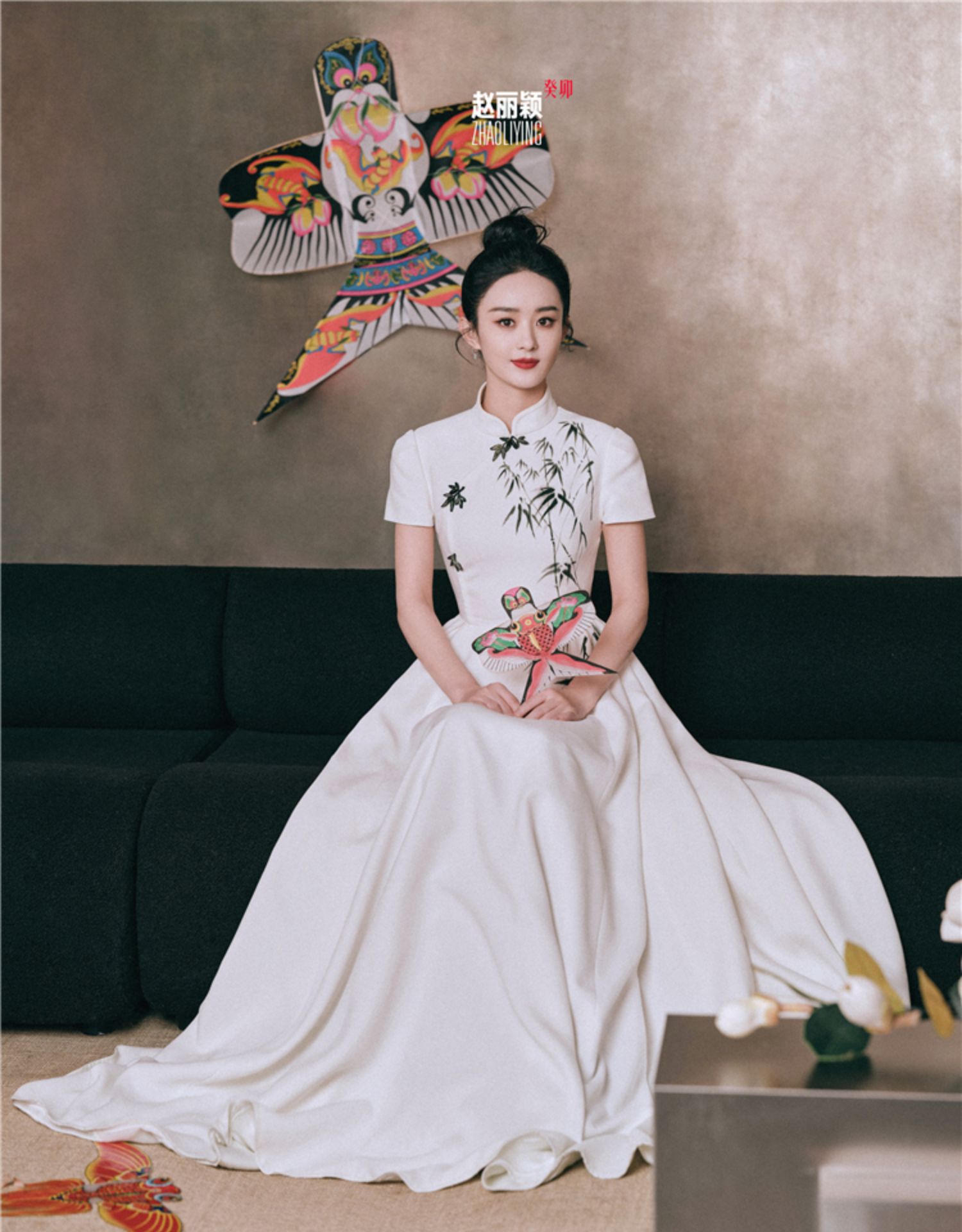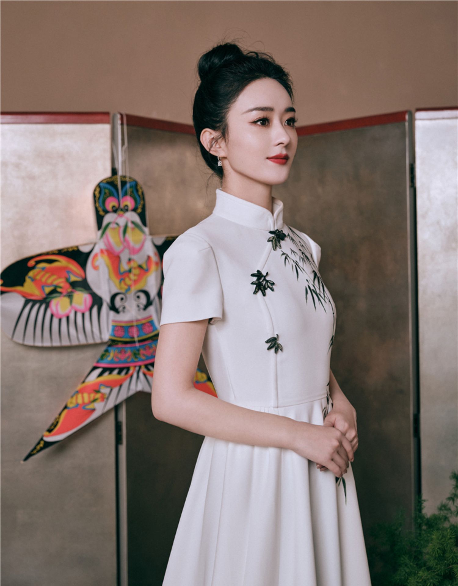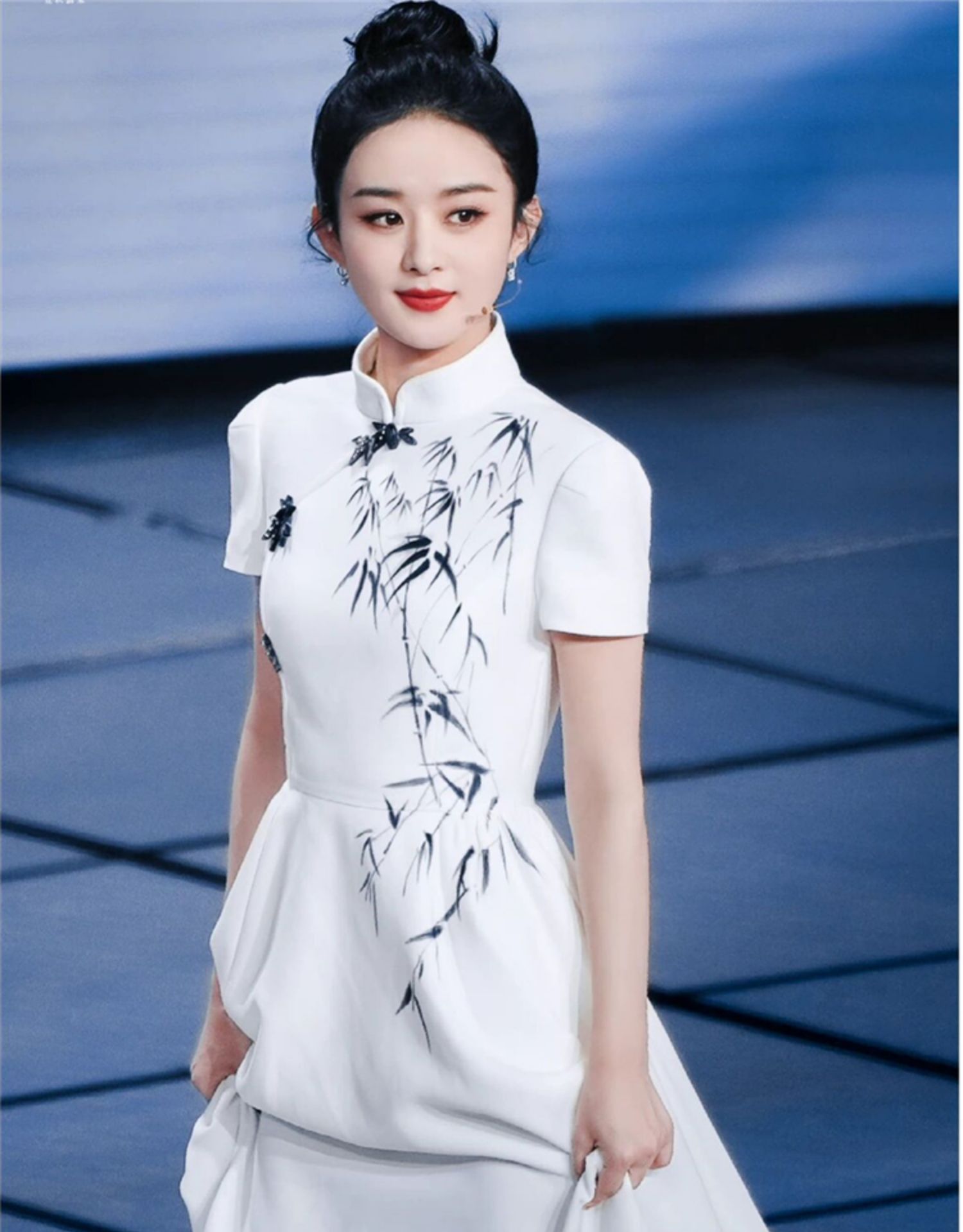 9108 Zhao Liying 2023 CCTV Весенний фестиваль Гала-концерт с белым платьем Чернильное бамбуковое платье Чонсам с короткими рукавами в национальном стиле