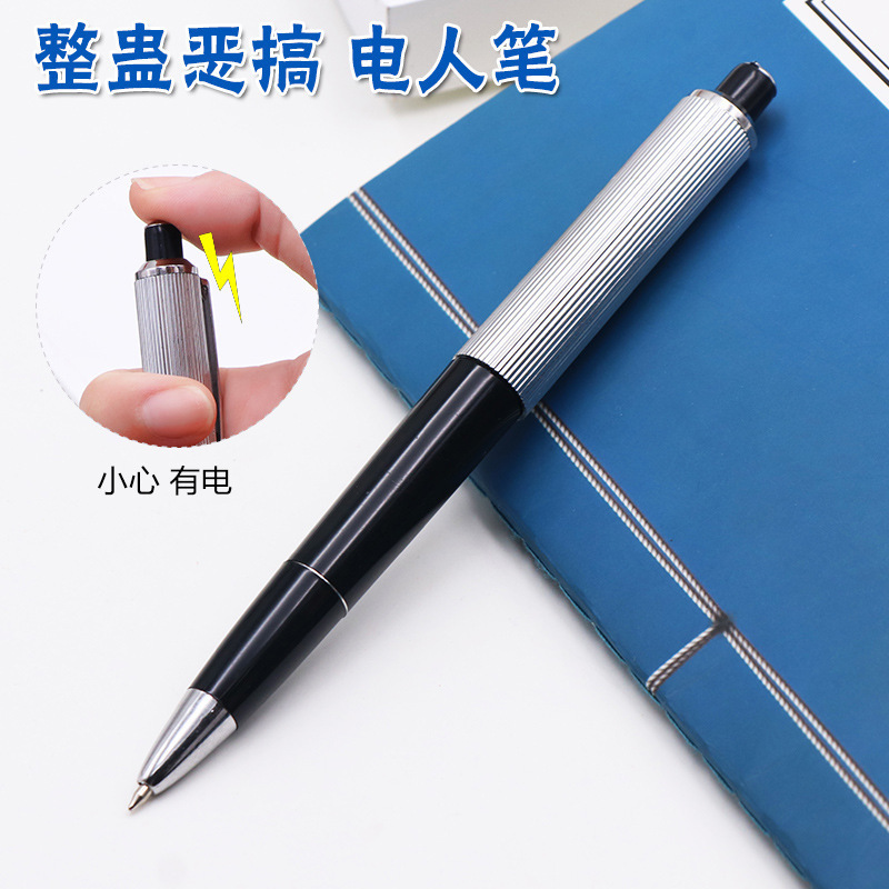 假装将笔借给朋友写字,朋友自然很高兴啦~~当看到笔头没笔芯时他会很自然的去按笔尾上的按钮,可惜当他按下去时不是笔芯弹出来,而是他的手指被电流弹了出去,让他哇哇直叫。。。“有电
