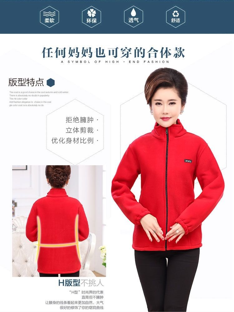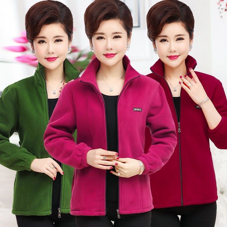 Женская флисовая куртка для мужчин и женщин среднего и пожилого возраста больших размеров Флисовая куртка для матери Осенне-зимняя флисовая утепленная теплая куртка
