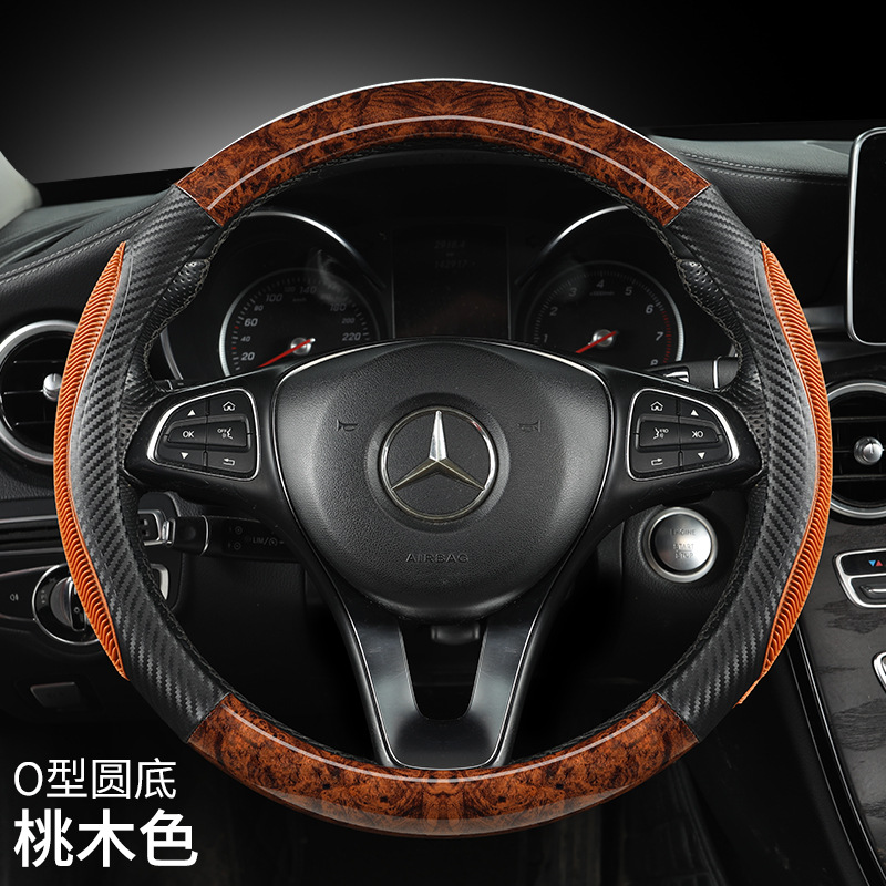 Новый чехол на руль автомобиля четыре сезона универсальный Хрустальный персиковый Деревянный чехол из углеродного волокна с нескользящей трансграничной внутренней ручкой оптом