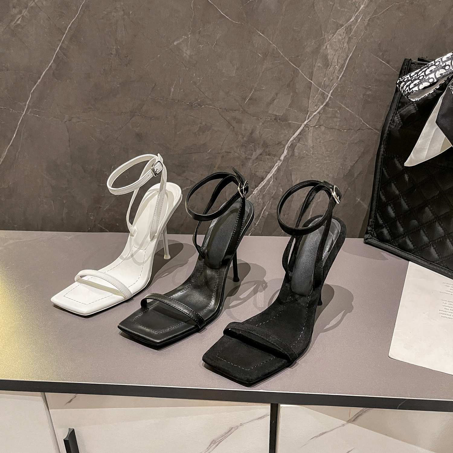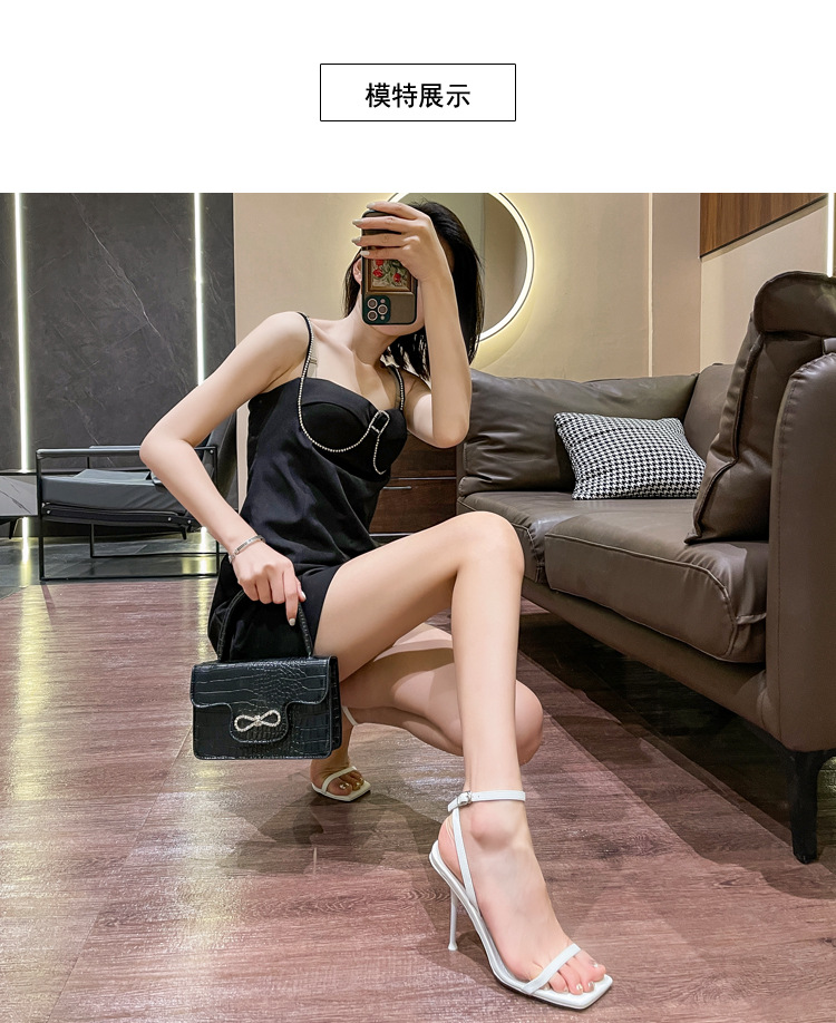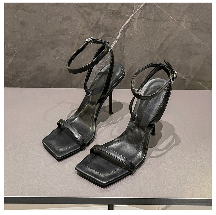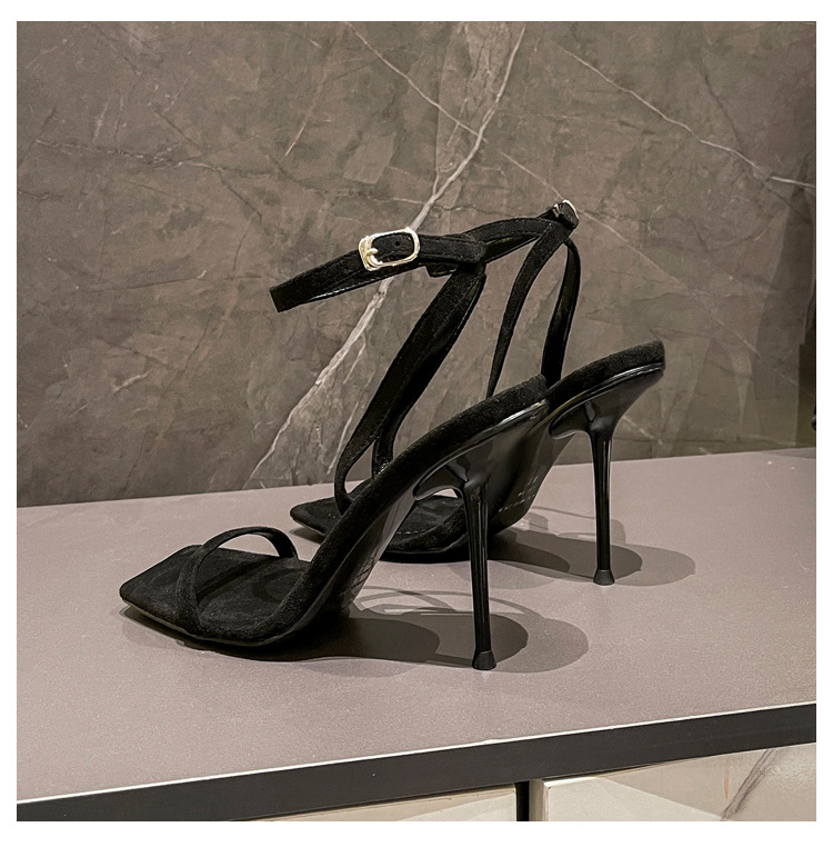 2023 летние новые нишевые сандалии с квадратным носком на одном каблуке женские туфли на шпильке черные замшевые туфли с открытым носком универсальные