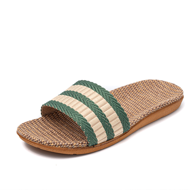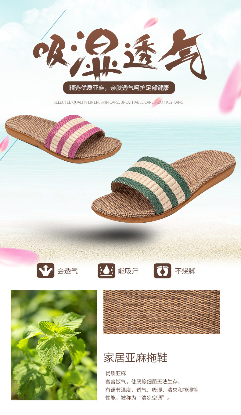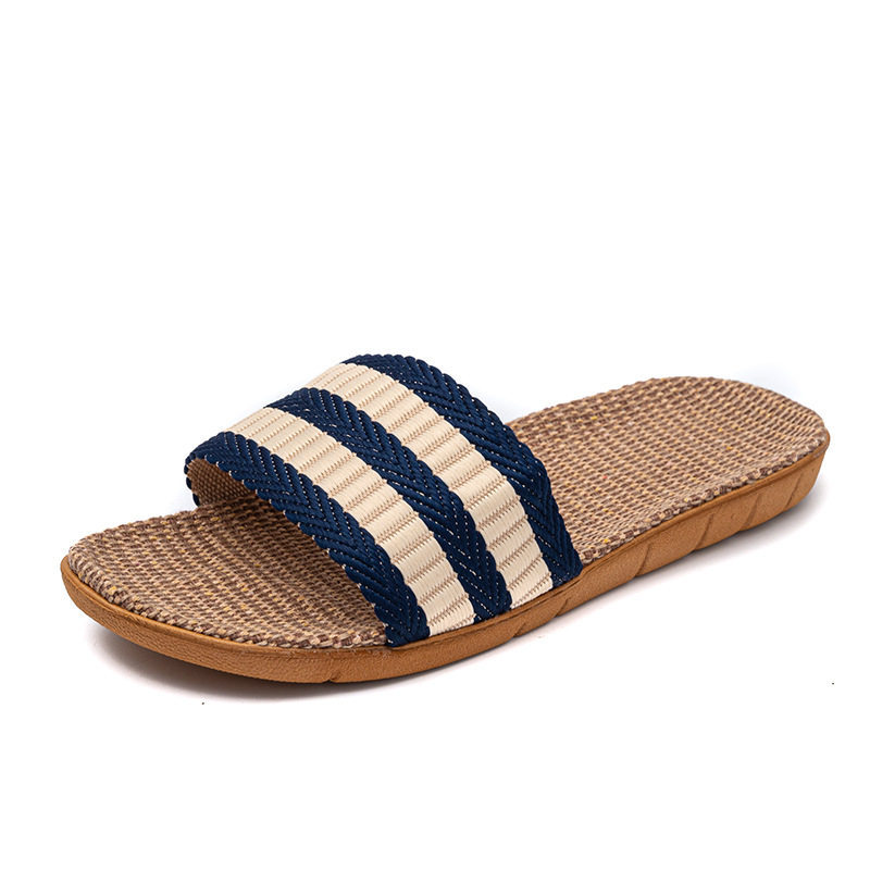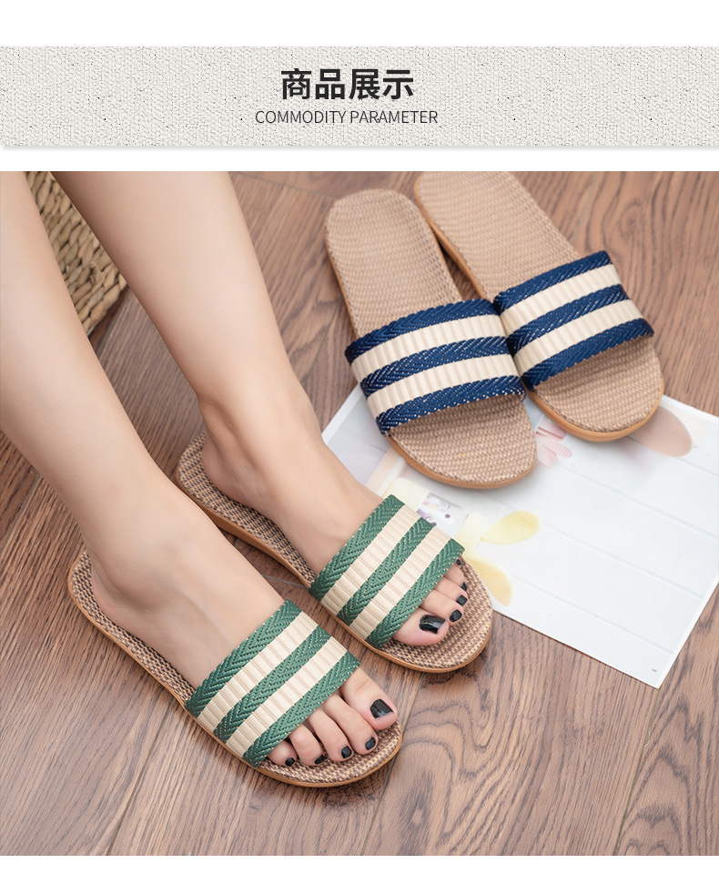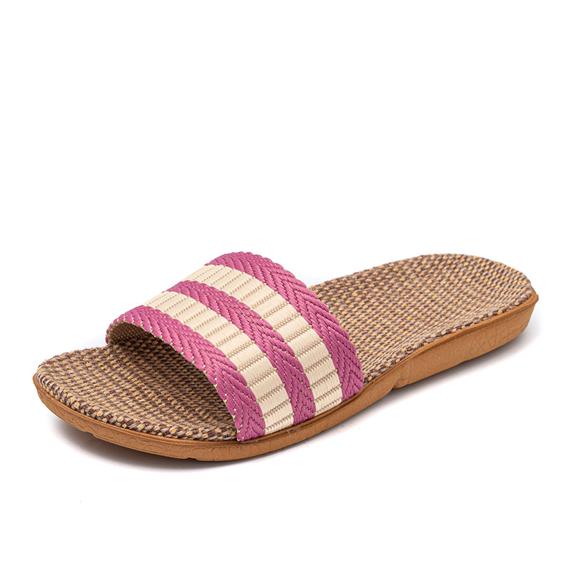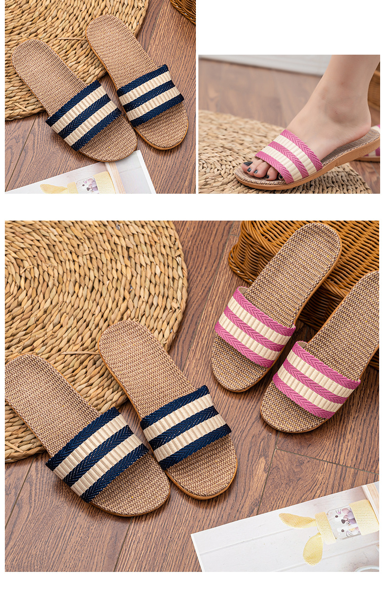 Новые льняные тапочки Four Seasons, женские домашние тапочки, впитывающие пот, бесшумные домашние тапочки для пар, домашние сандалии, тапочки в светлую полоску