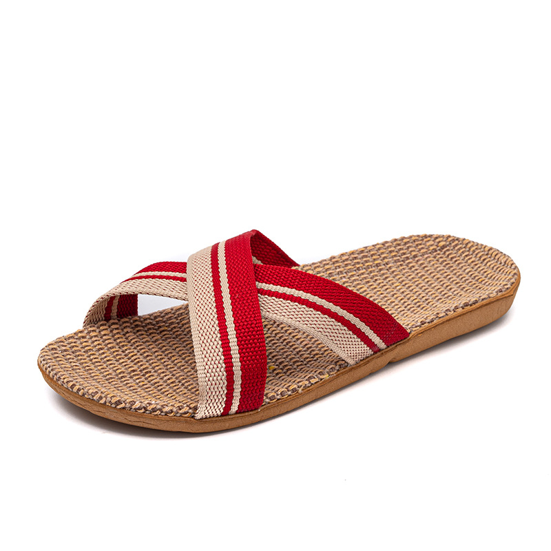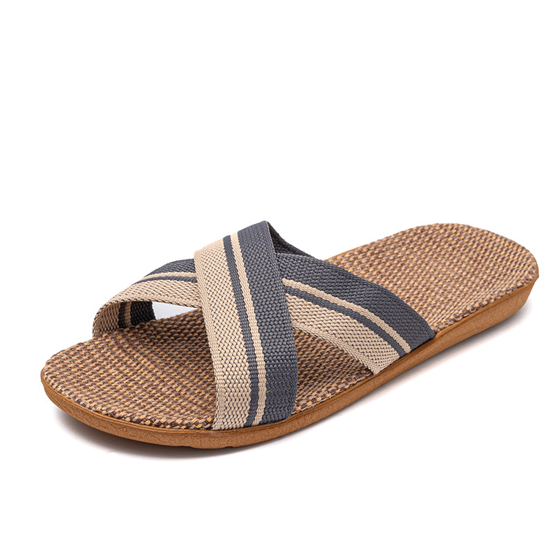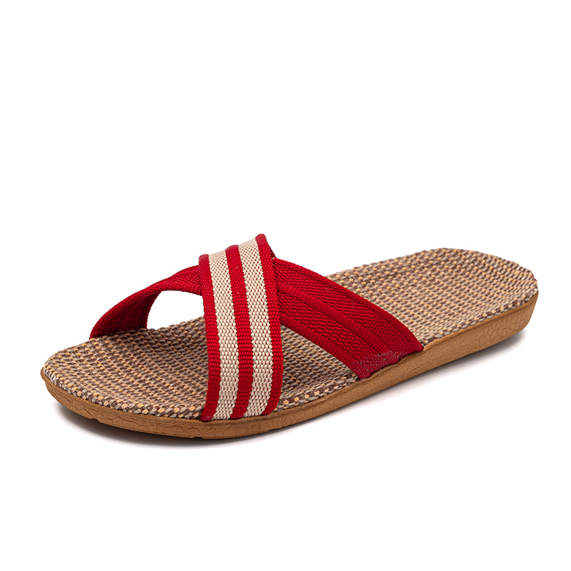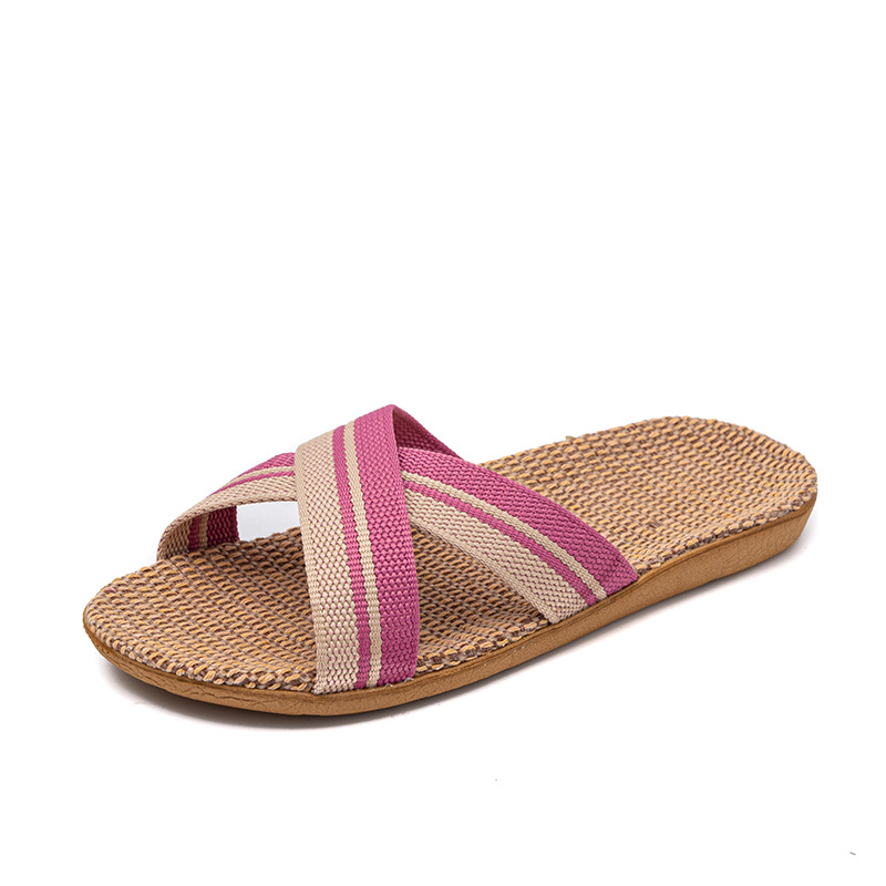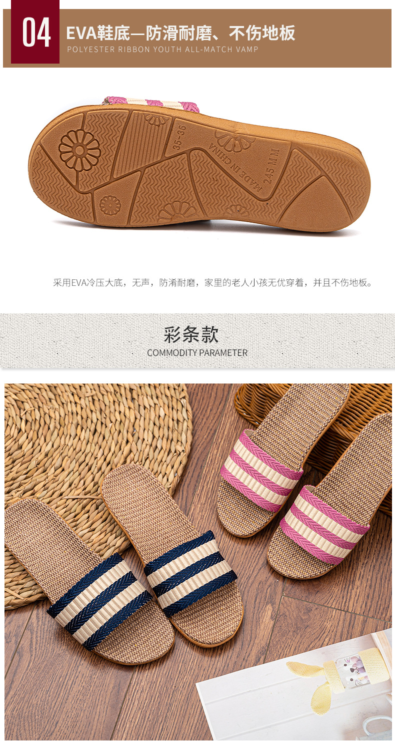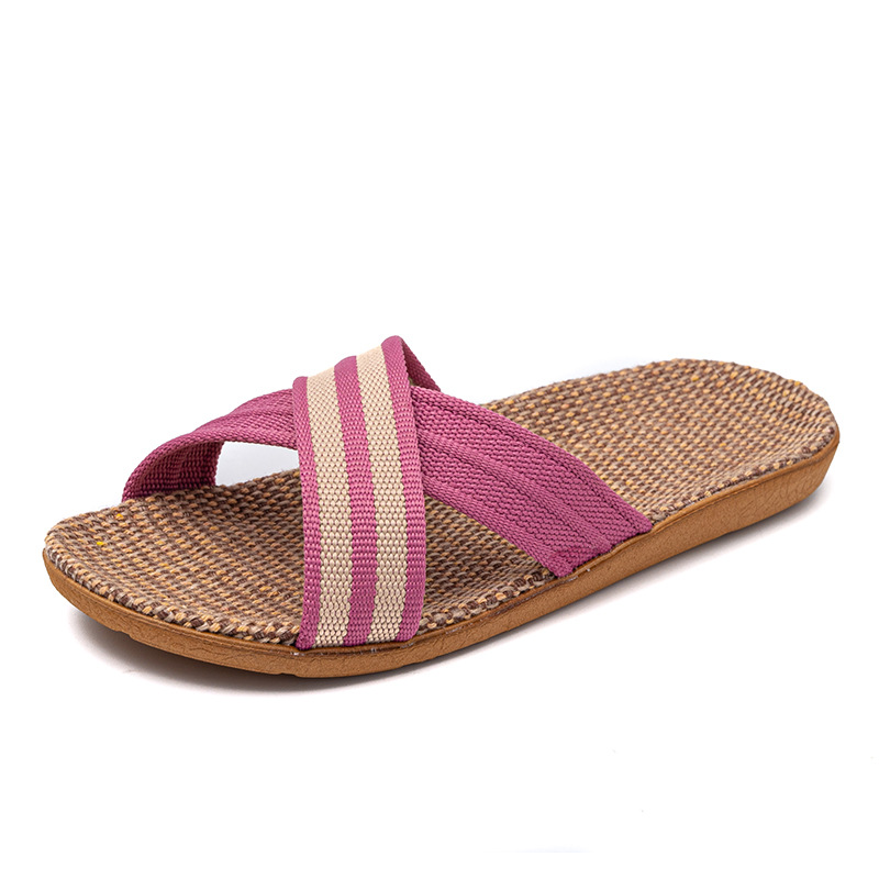 Новые льняные тапочки Four Seasons, женские домашние тапочки, впитывающие пот, бесшумные домашние тапочки для пар, домашние сандалии, тапочки в светлую полоску