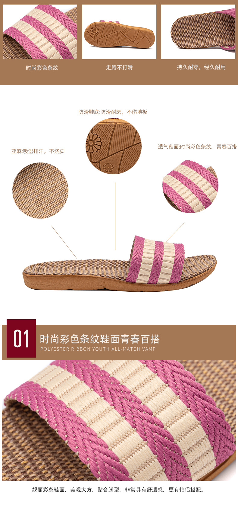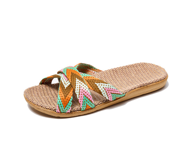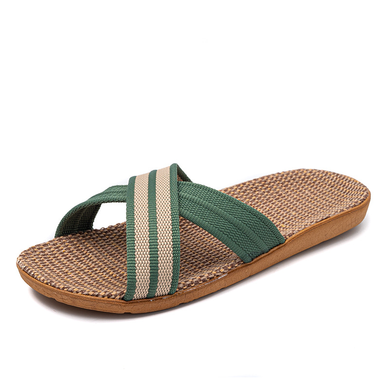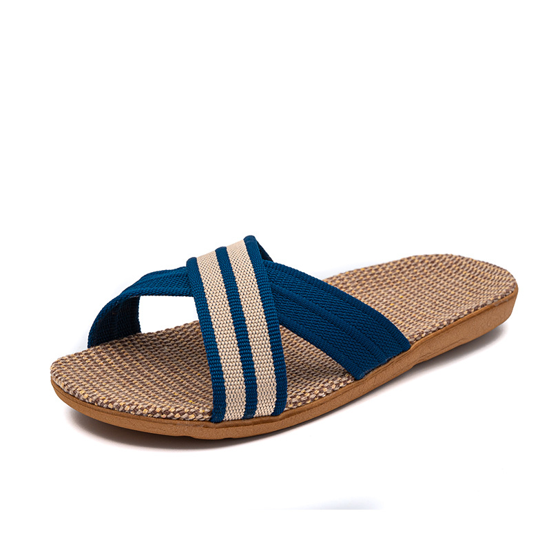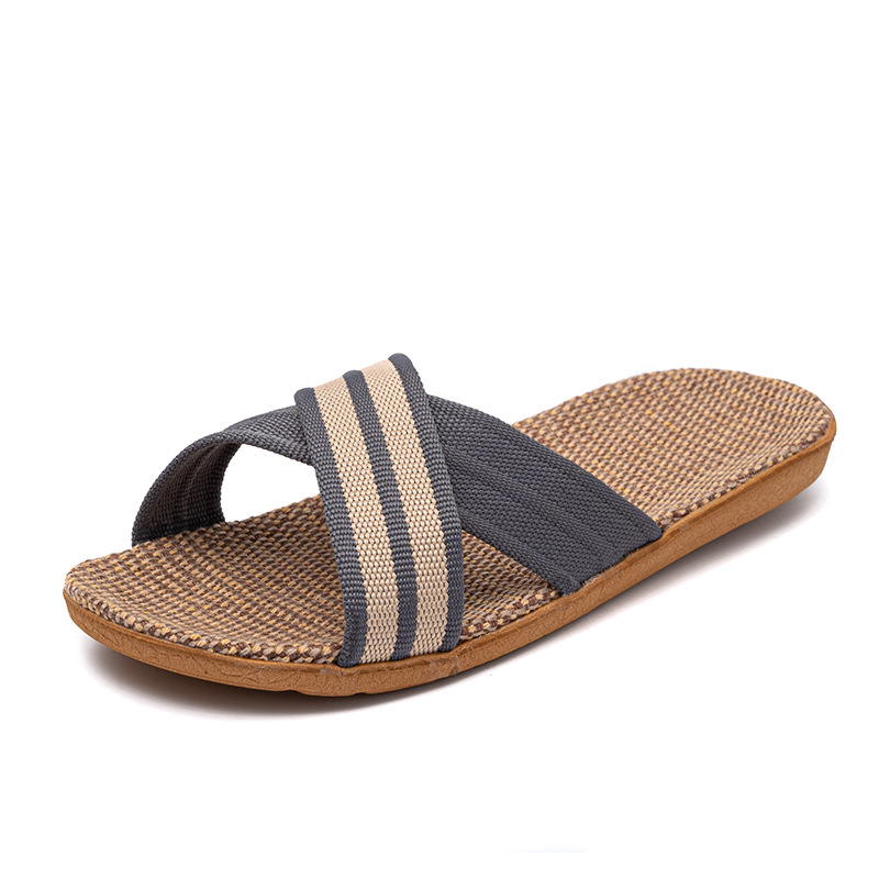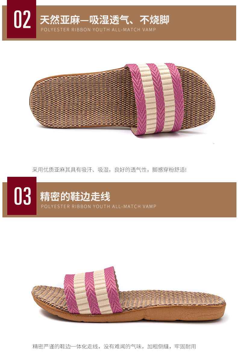 Новые льняные тапочки Four Seasons, женские домашние тапочки, впитывающие пот, бесшумные домашние тапочки для пар, домашние сандалии, тапочки в светлую полоску