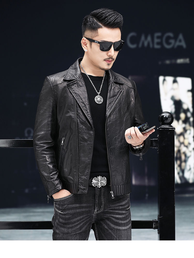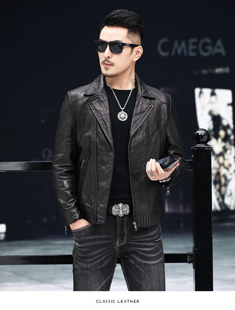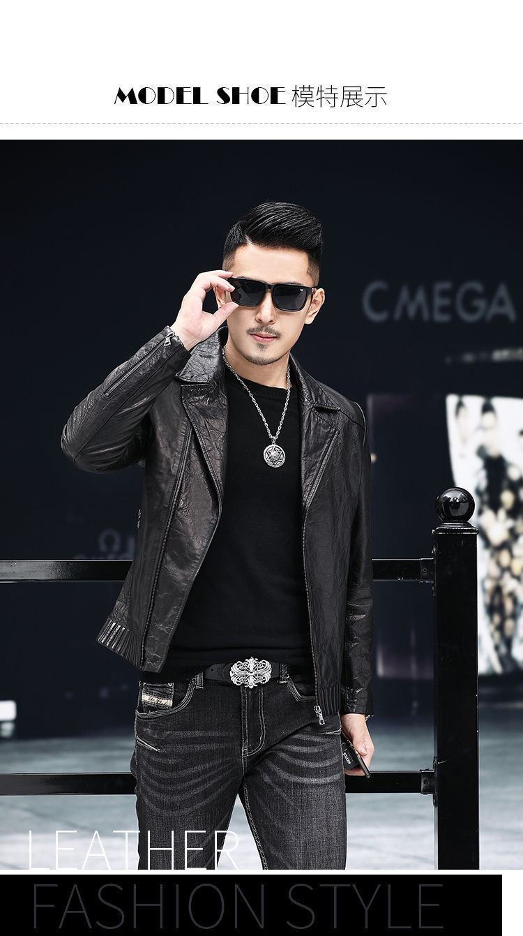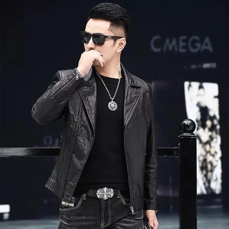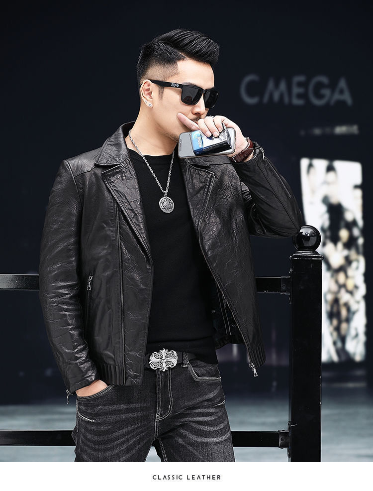 Новая кожаная куртка Haining для мужчин на весну и осень, короткая приталенная куртка в корейском стиле с воротником-стойкой, повседневное кожаное пальто