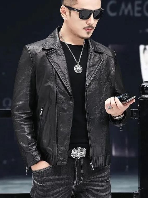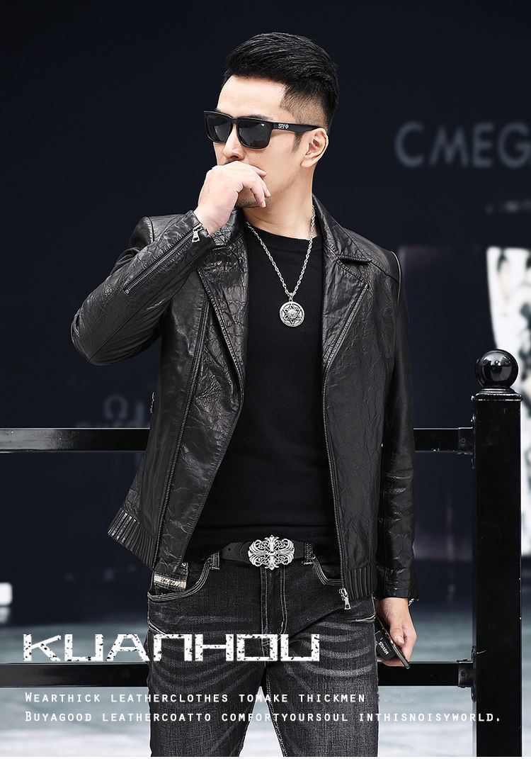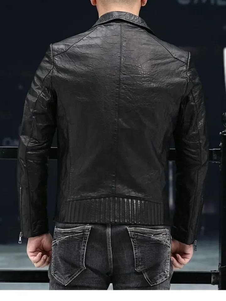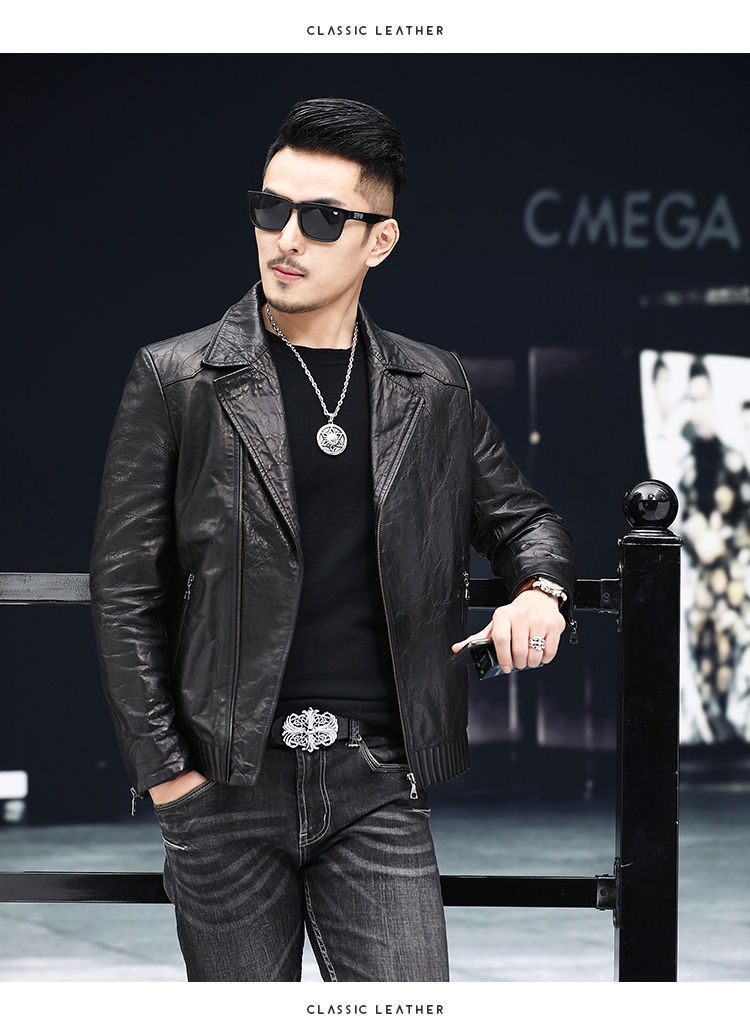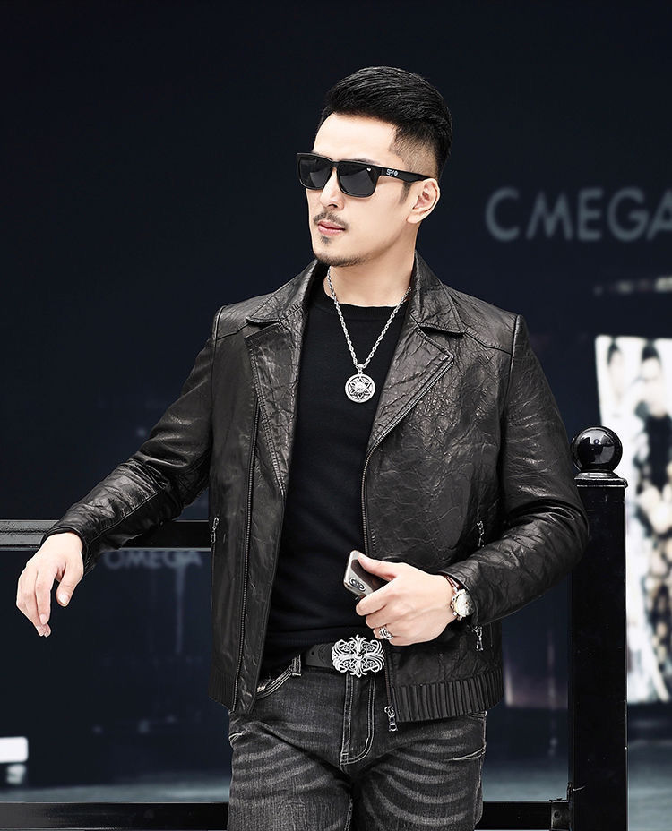 Новая кожаная куртка Haining для мужчин на весну и осень, короткая приталенная куртка в корейском стиле с воротником-стойкой, повседневное кожаное пальто