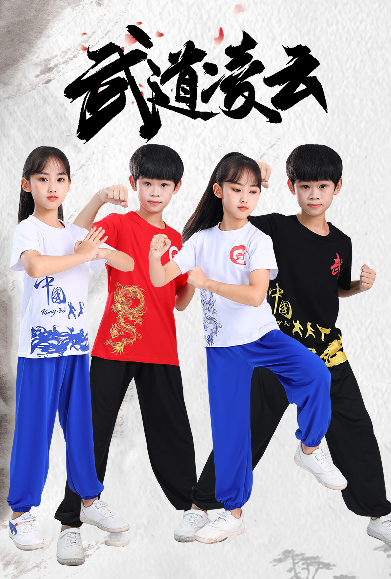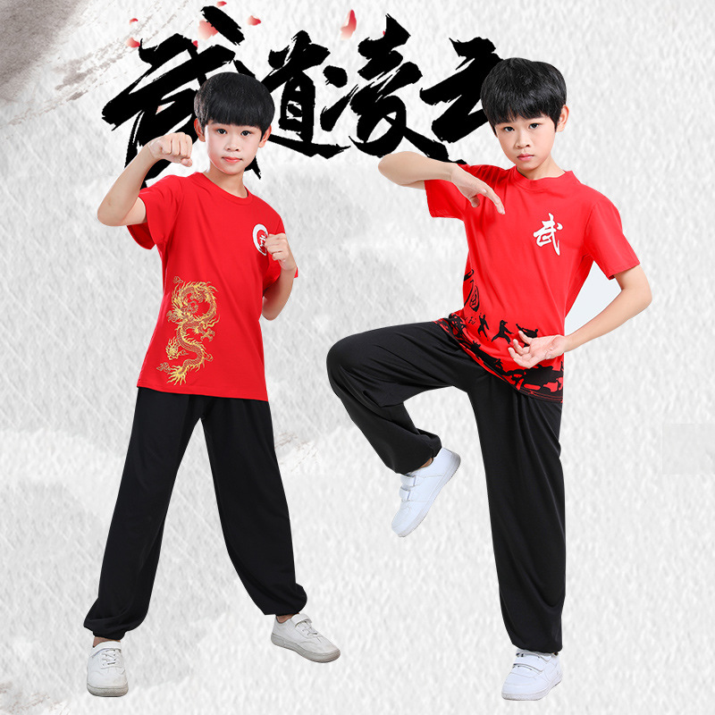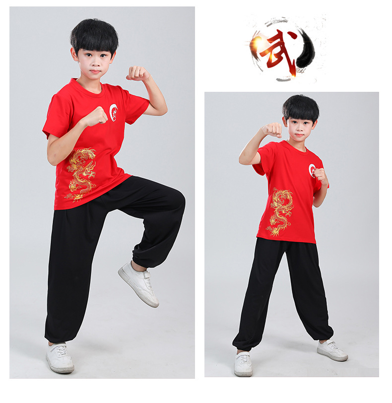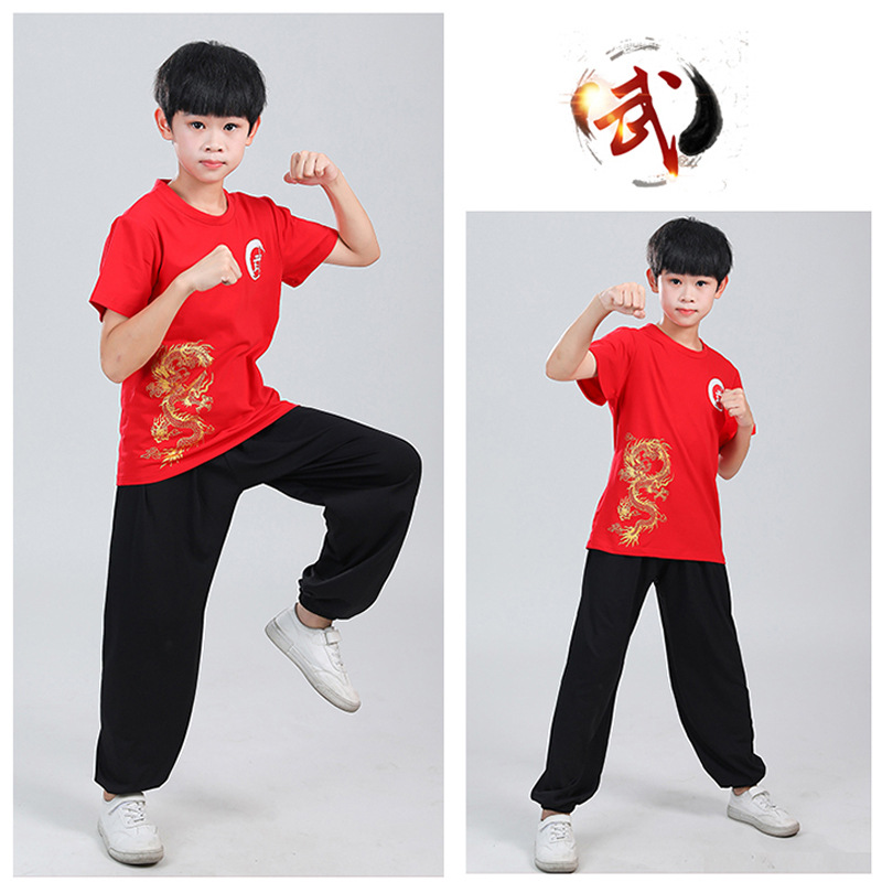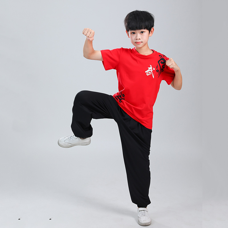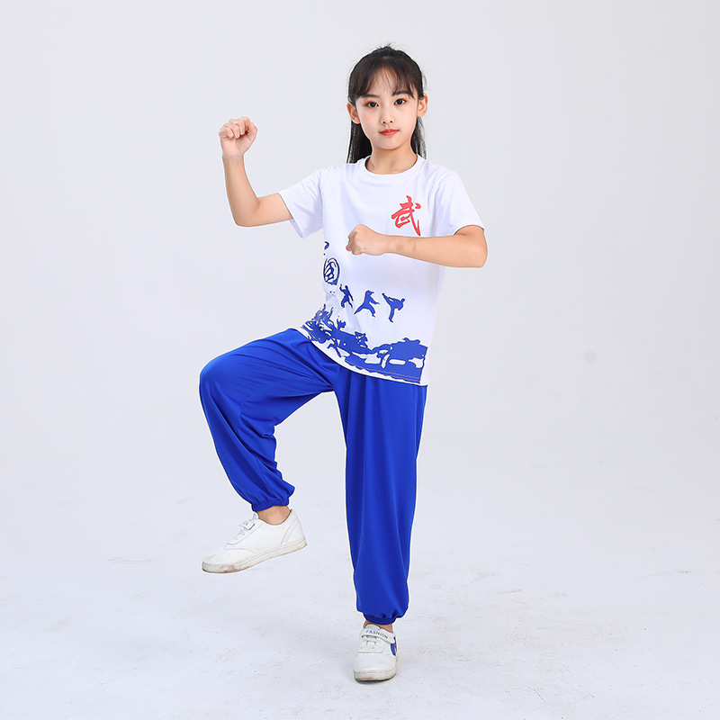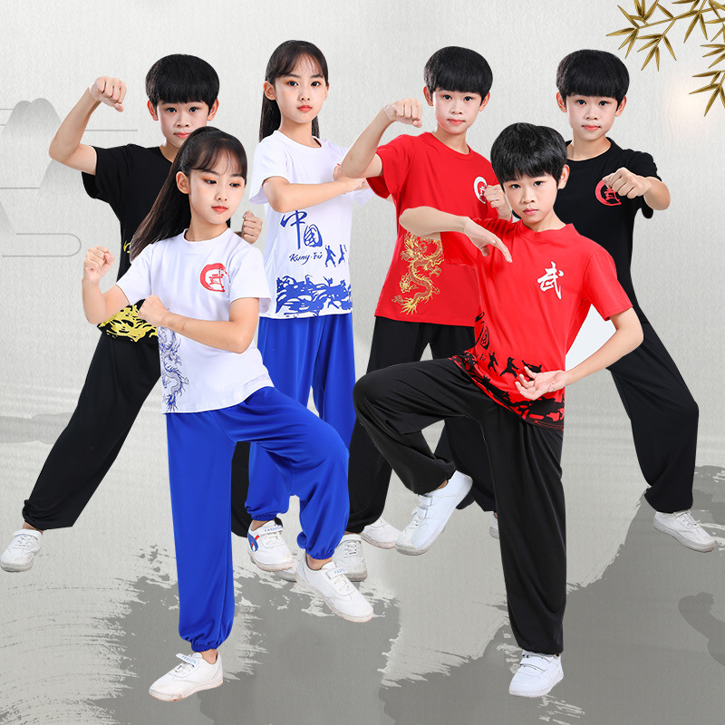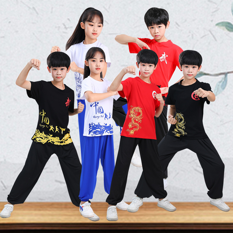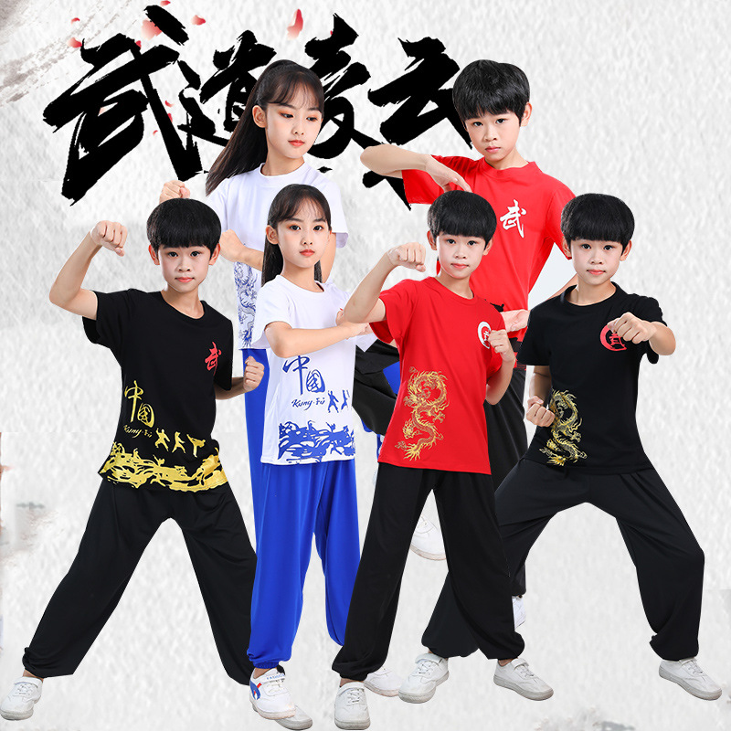 Детская одежда для ушу, весенне-летняя одежда для тайцзи для мальчиков и девочек Тренировочная одежда для боевых искусств, школьная тренировочная одежда для ушу с короткими рукавами