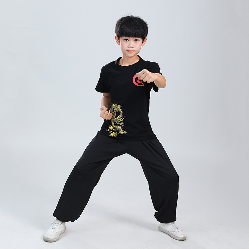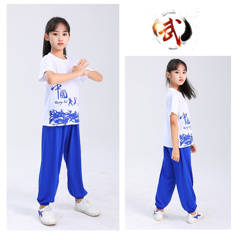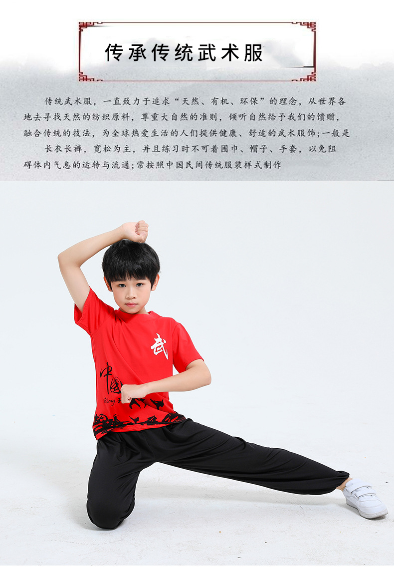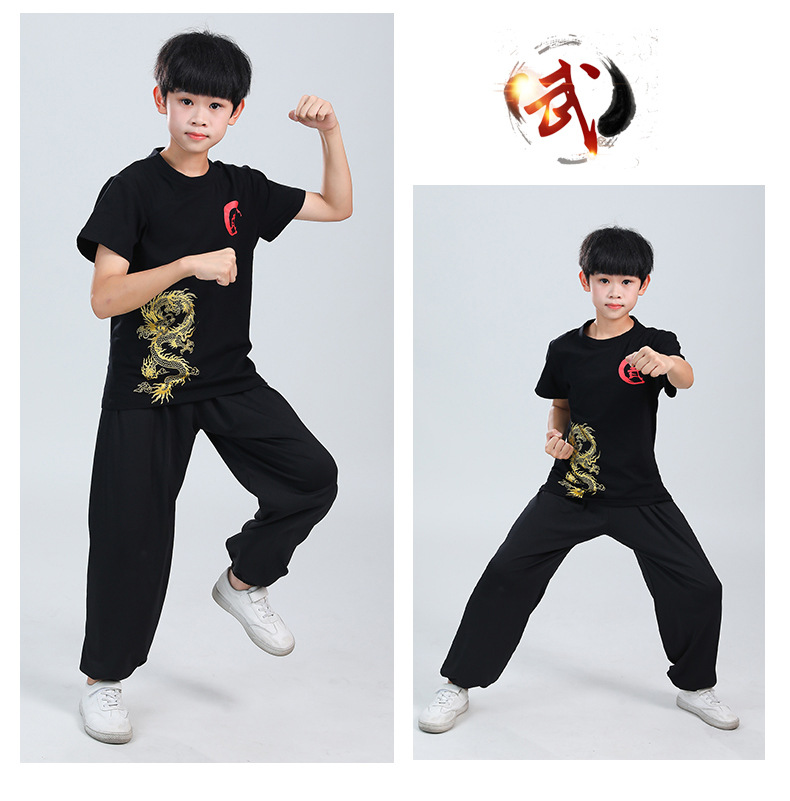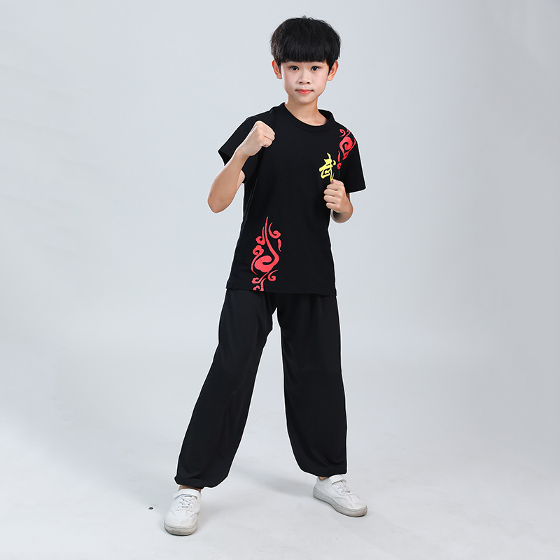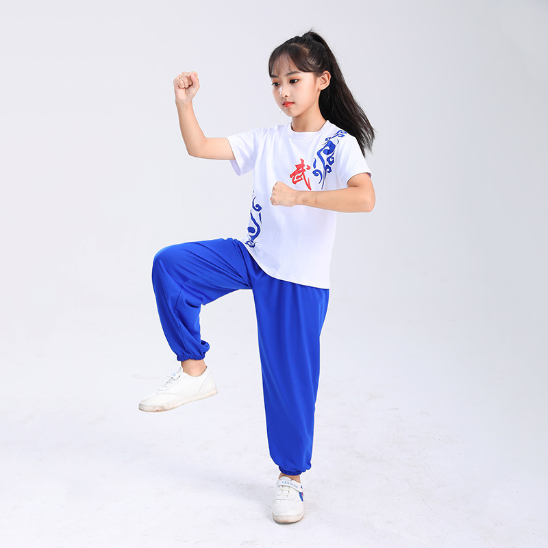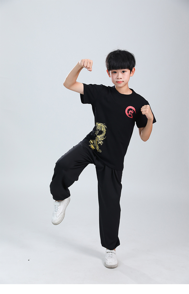 Детская одежда для ушу, весенне-летняя одежда для тайцзи для мальчиков и девочек Тренировочная одежда для боевых искусств, школьная тренировочная одежда для ушу с короткими рукавами