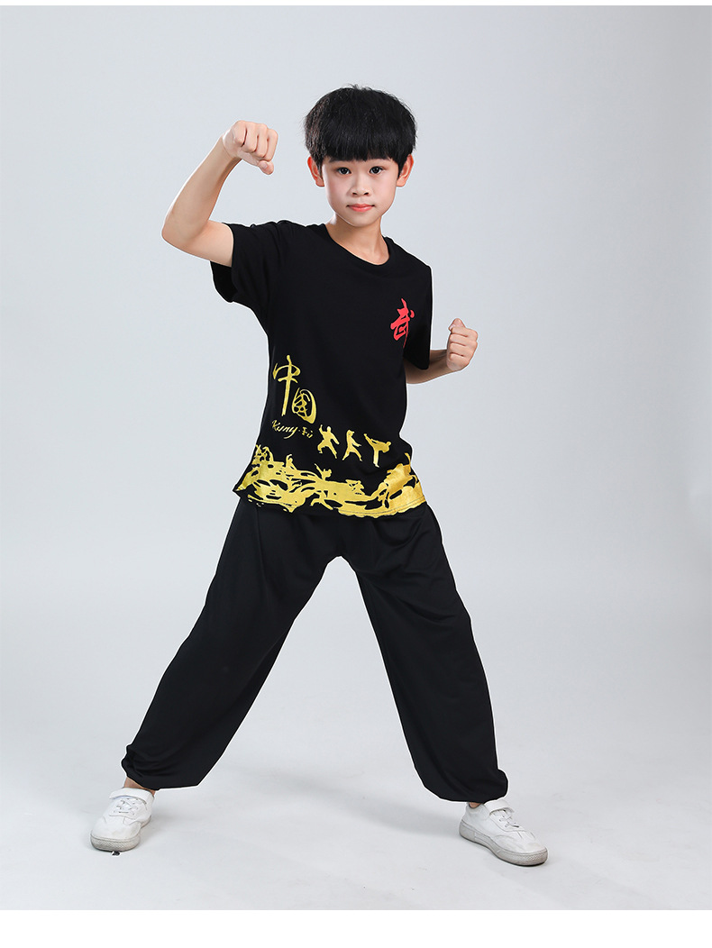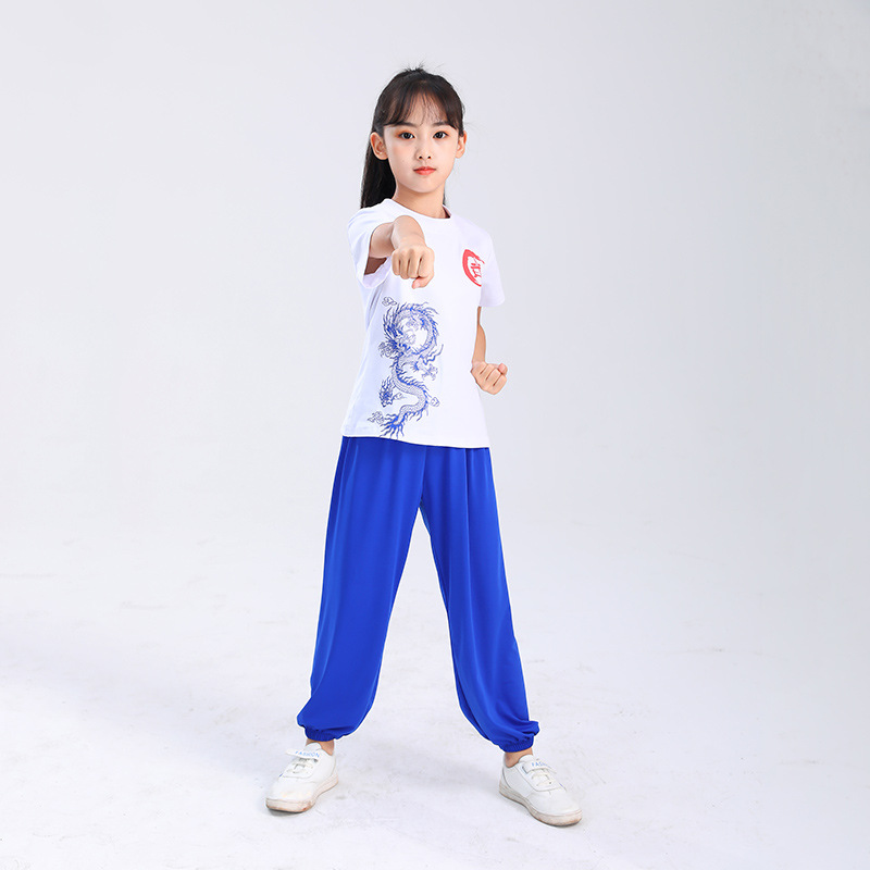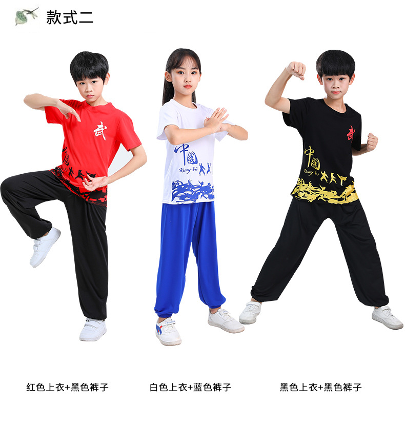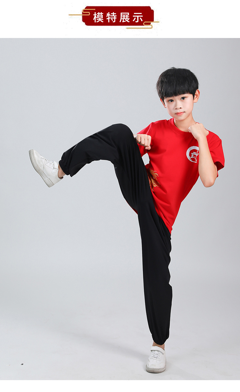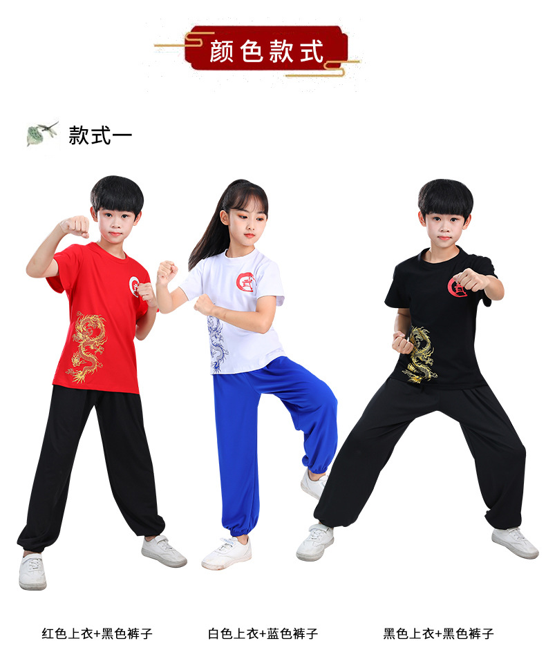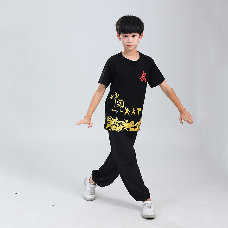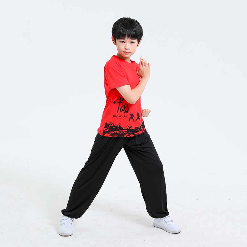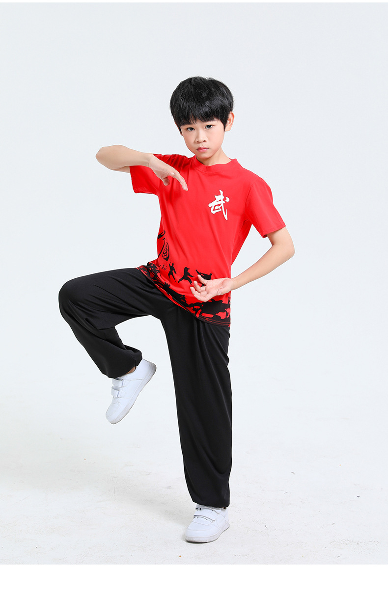 Детская одежда для ушу, весенне-летняя одежда для тайцзи для мальчиков и девочек Тренировочная одежда для боевых искусств, школьная тренировочная одежда для ушу с короткими рукавами