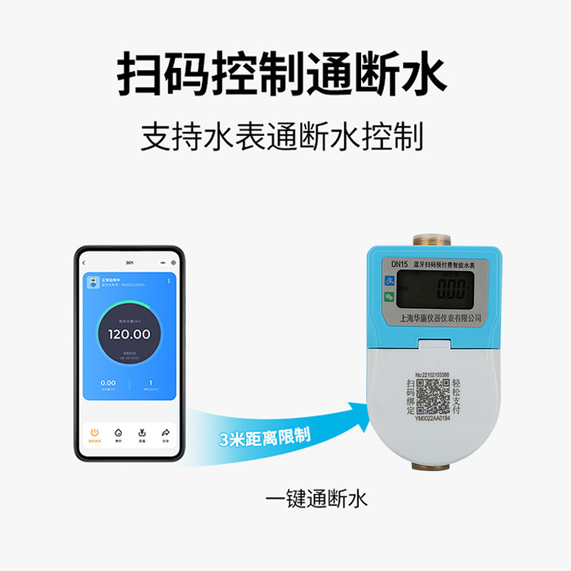 Однофазный предоплатный счетчик воды с Bluetooth и сканированием QR-кода для школ, квартир, арендных домов, удаленная оплата самообслуживания, интеллектуальное управление водоснабжением