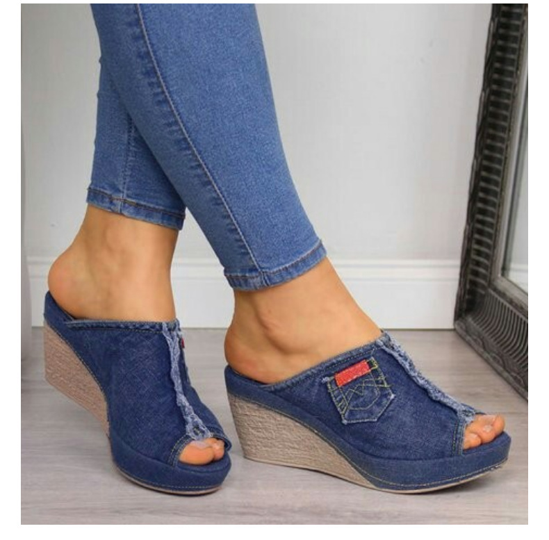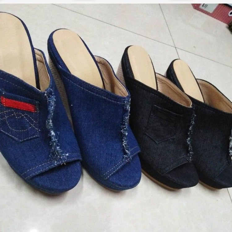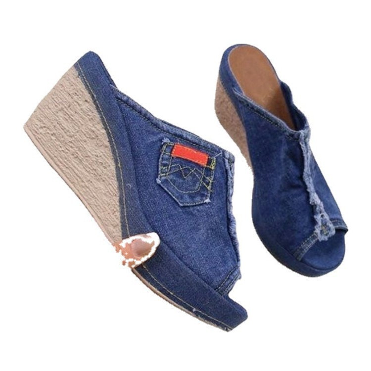Amazon Внешняя торговля Новые летние джинсовые Этнические женские сандалии больших размеров на каблуке Производители женской обуви прямые поставки