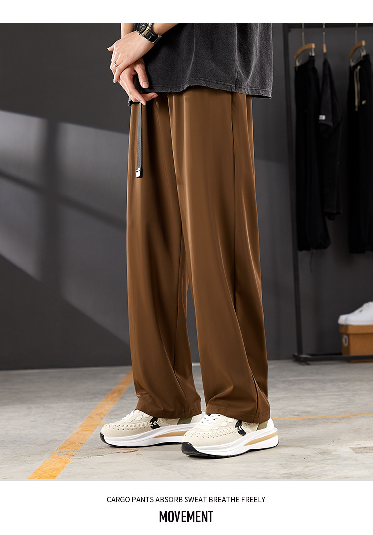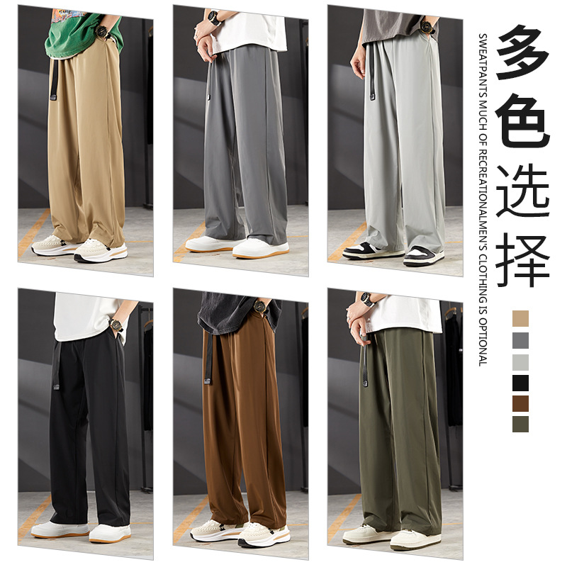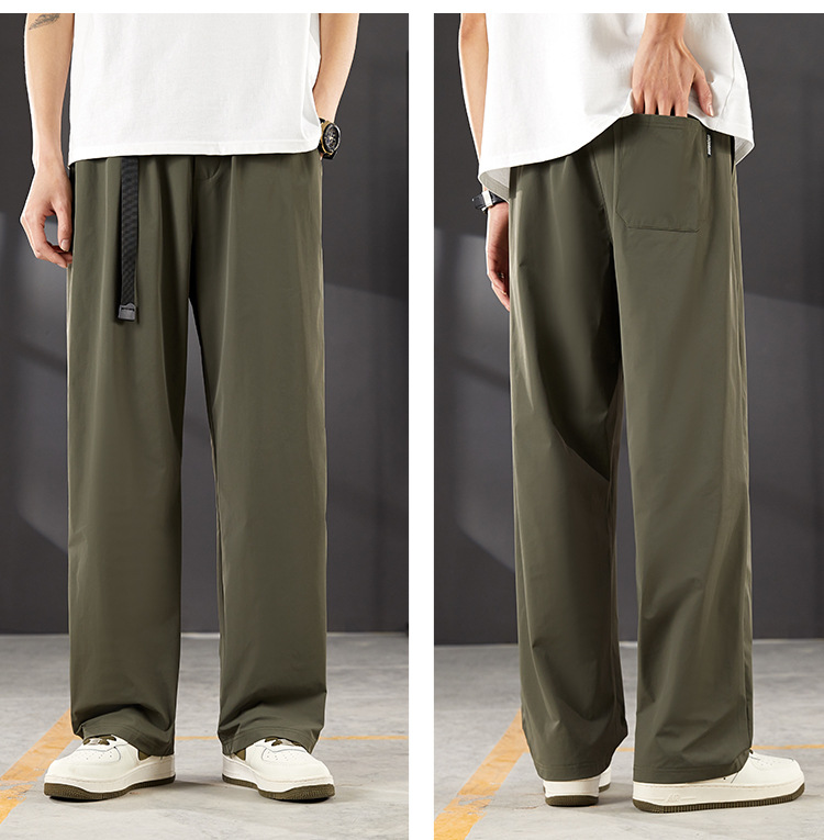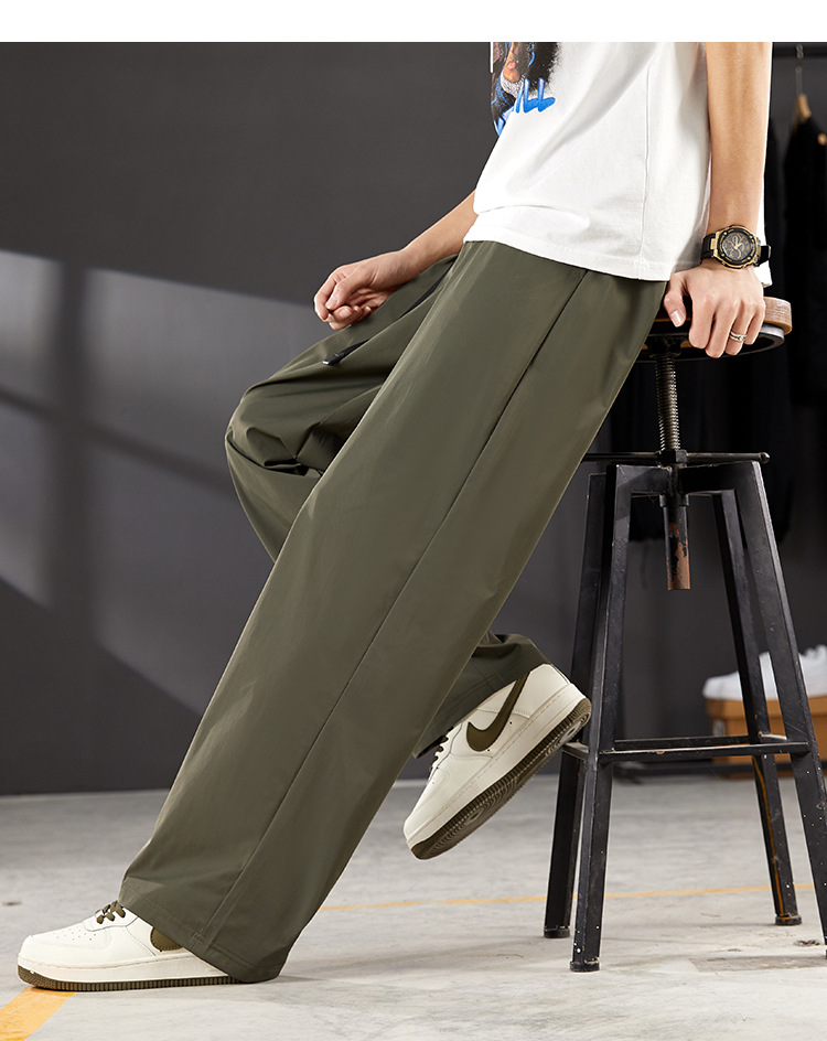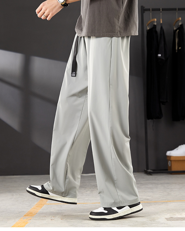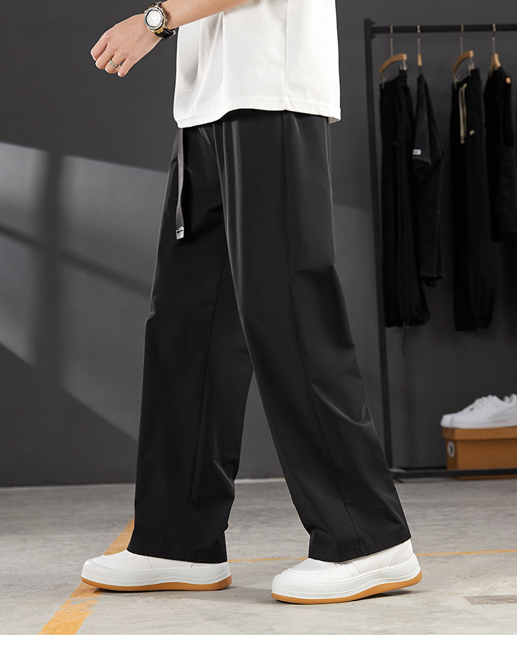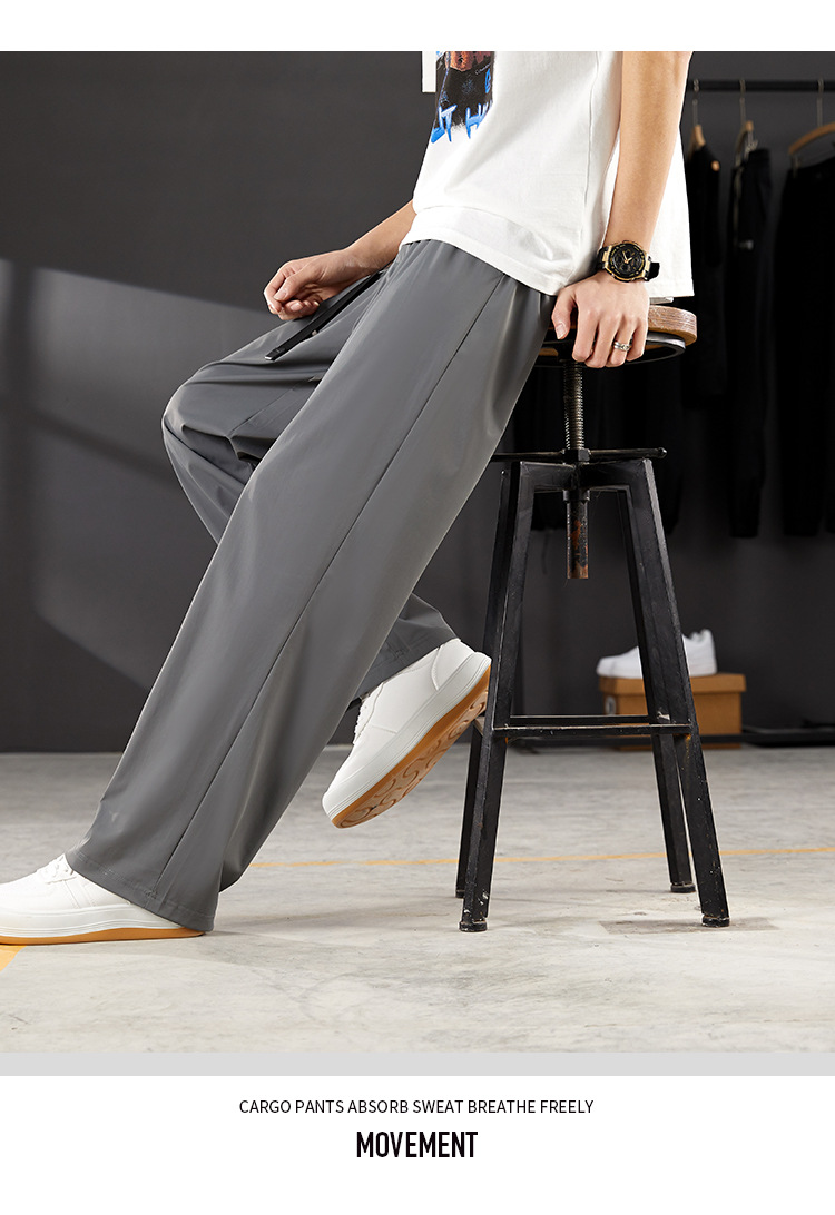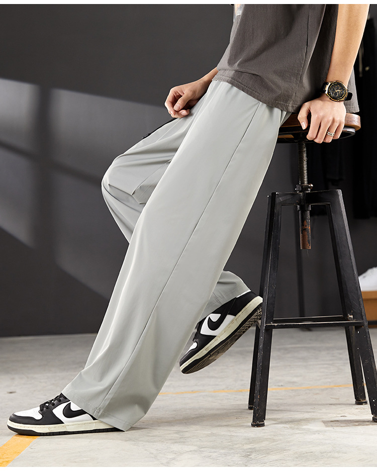 Летние широкие повседневные брюки, мужские прямые тонкие ледяные шелковые быстросохнущие свободные спортивные модные летние мужские дышащие
