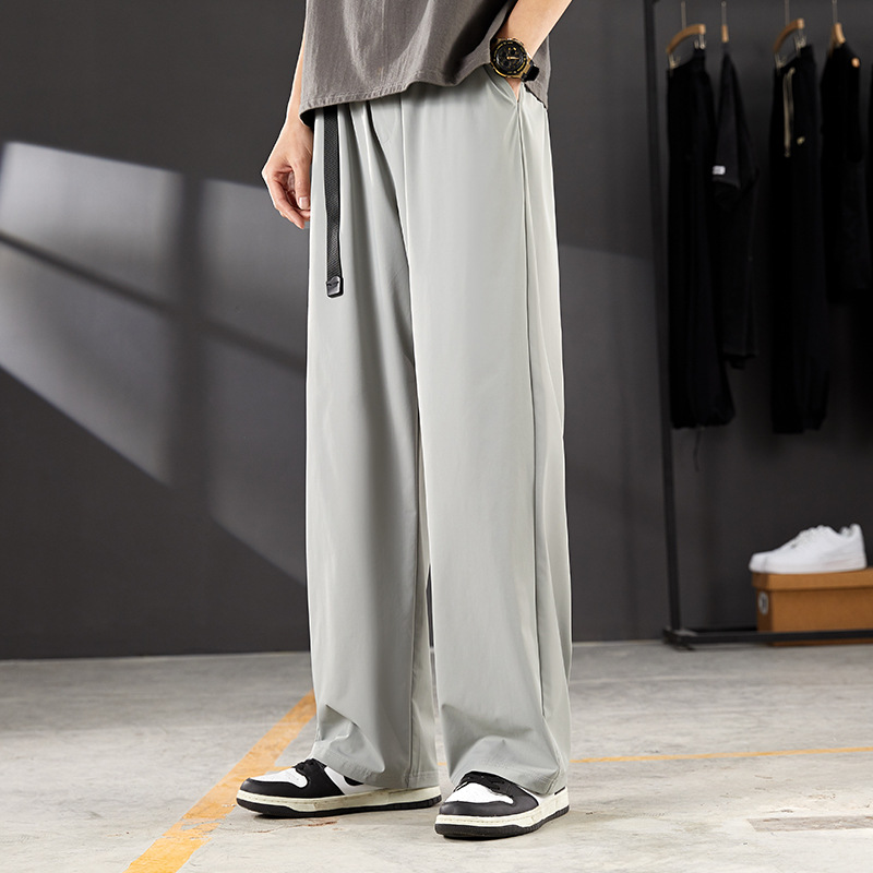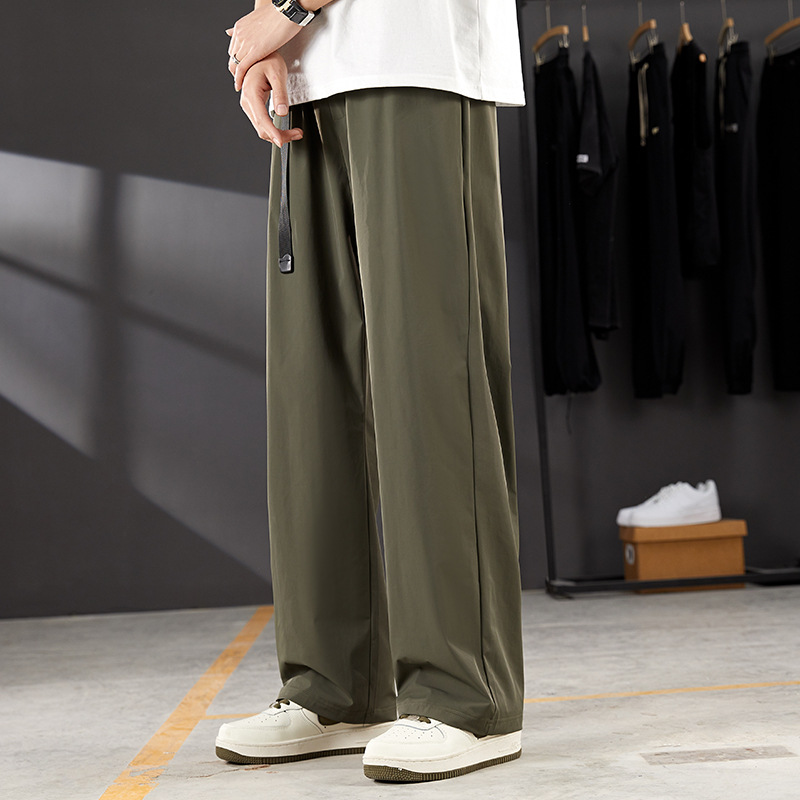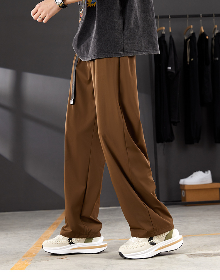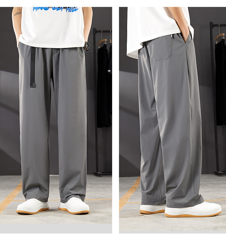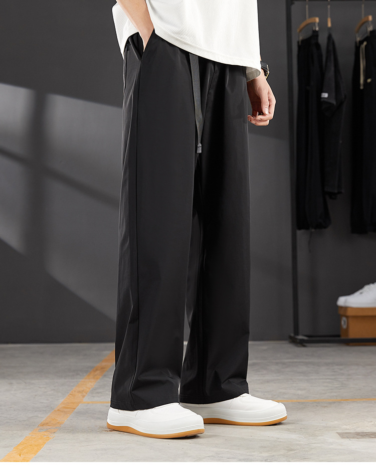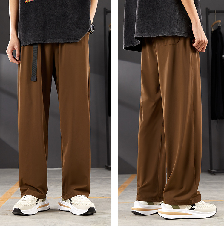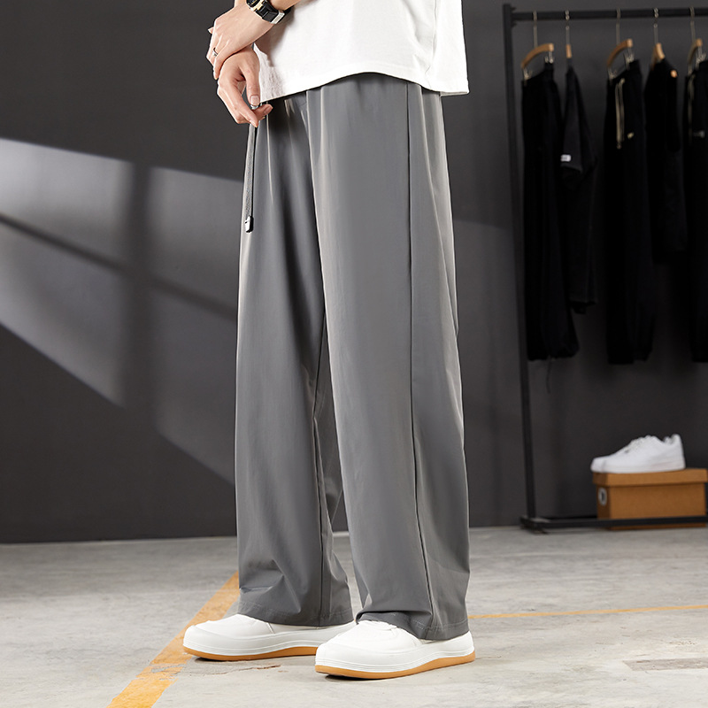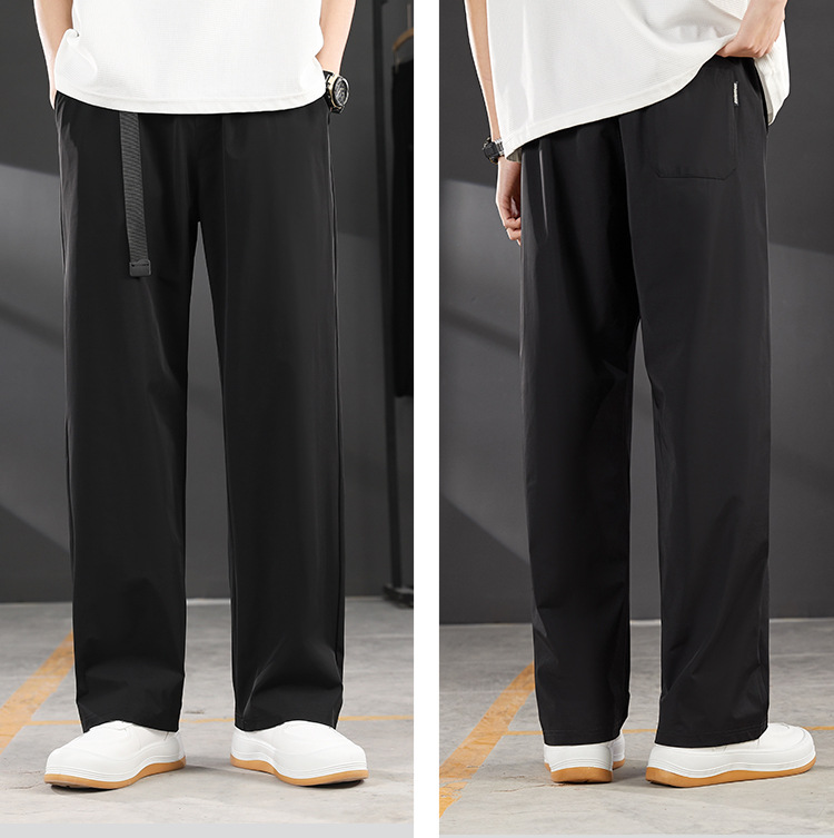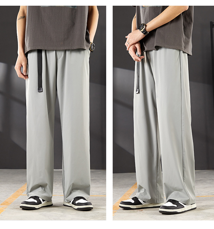 Летние широкие повседневные брюки, мужские прямые тонкие ледяные шелковые быстросохнущие свободные спортивные модные летние мужские дышащие