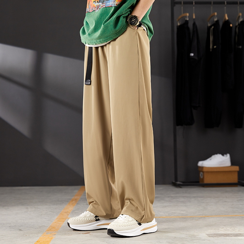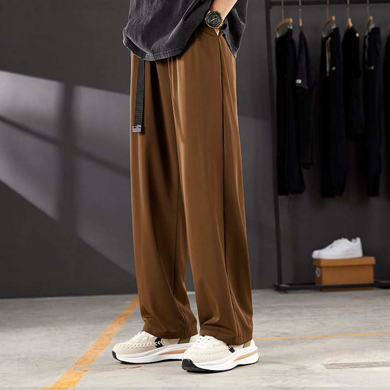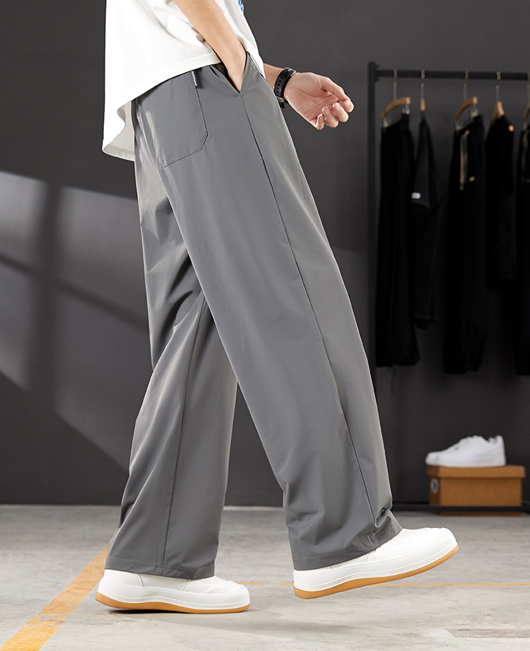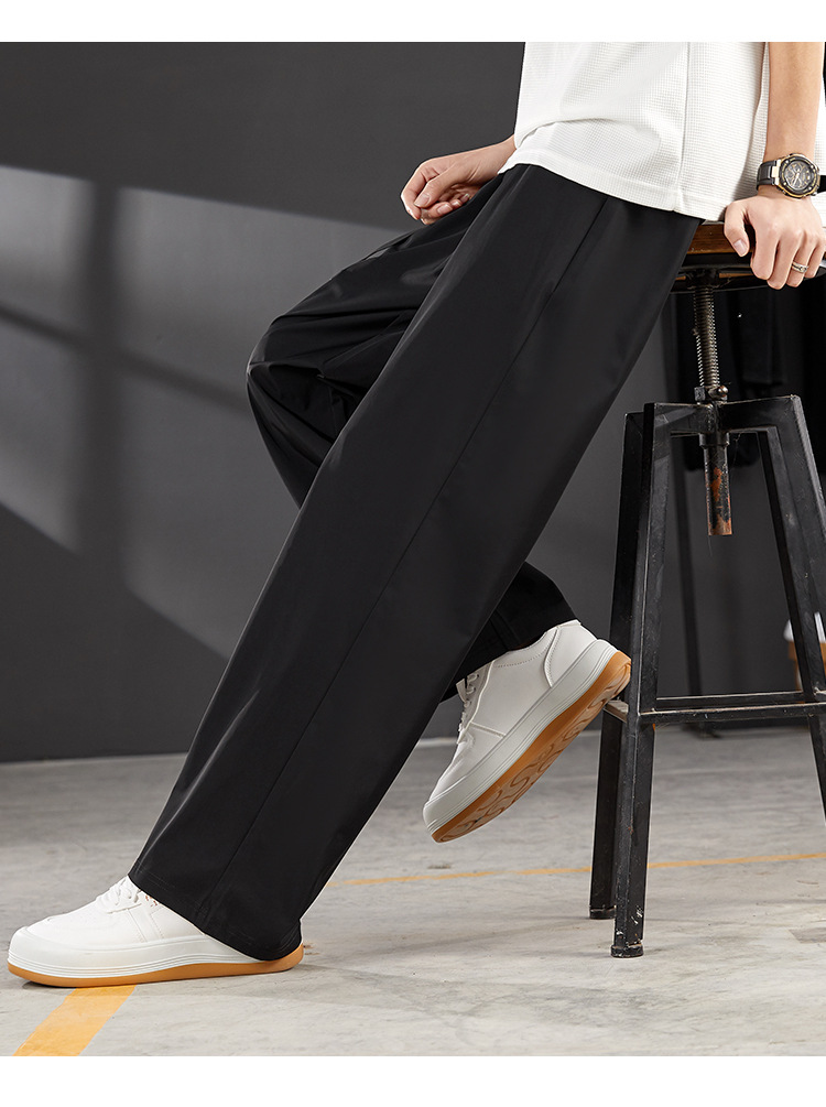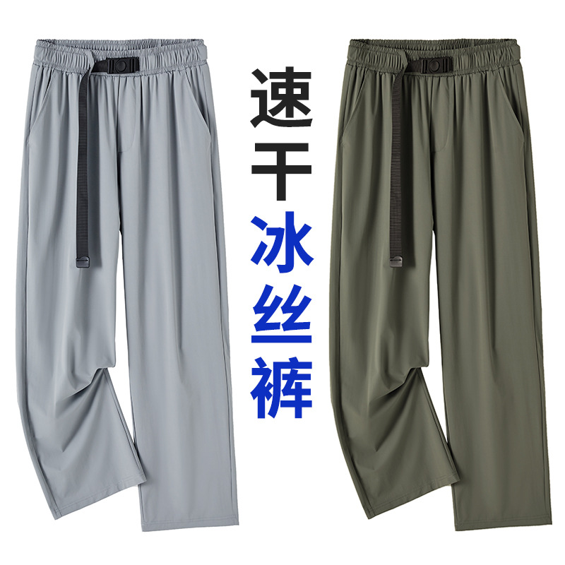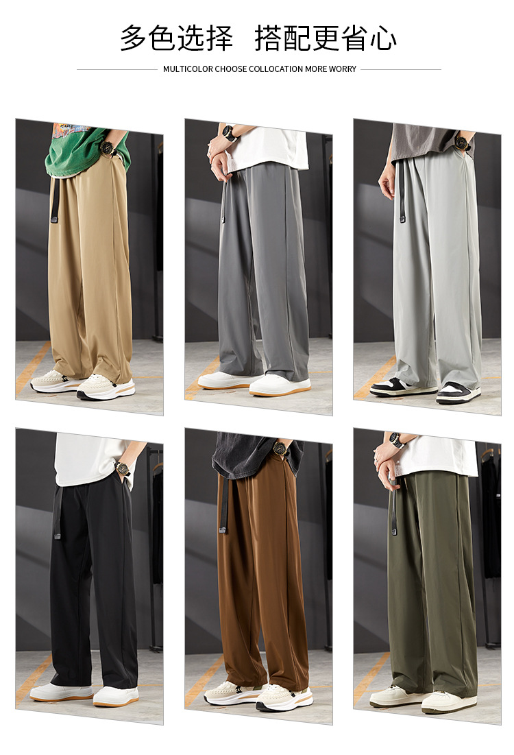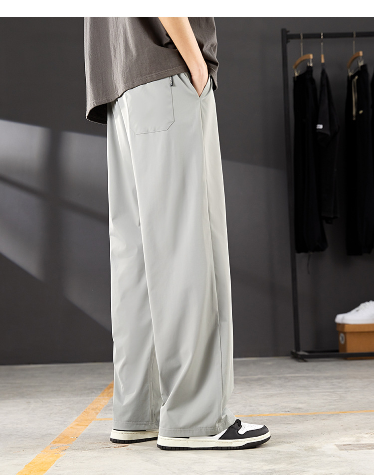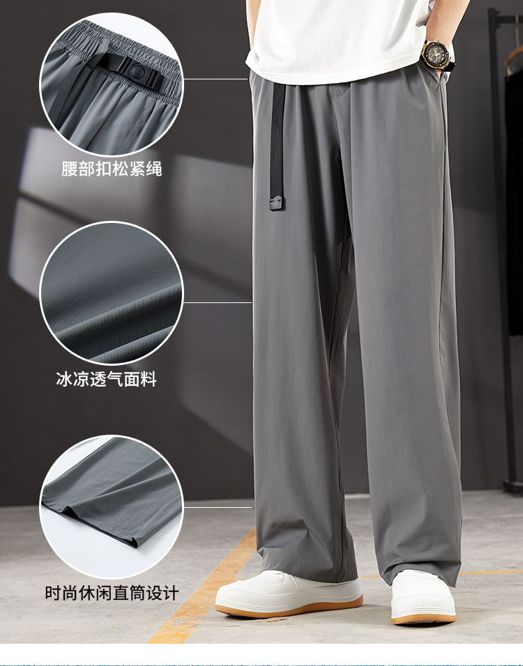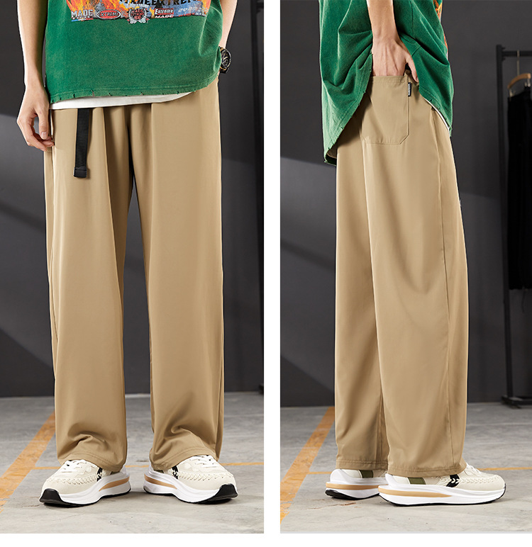 Летние широкие повседневные брюки, мужские прямые тонкие ледяные шелковые быстросохнущие свободные спортивные модные летние мужские дышащие