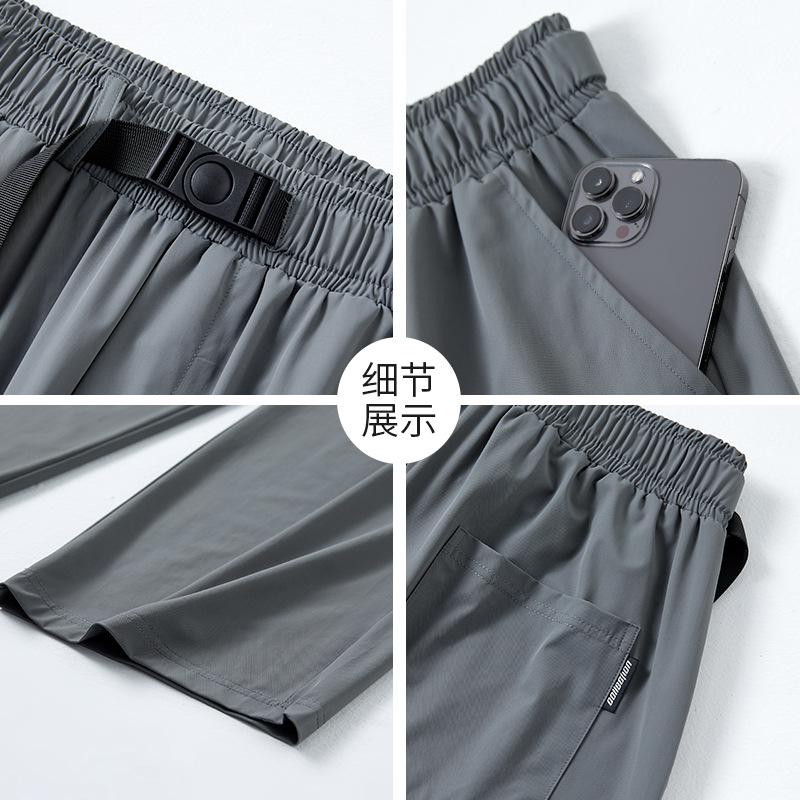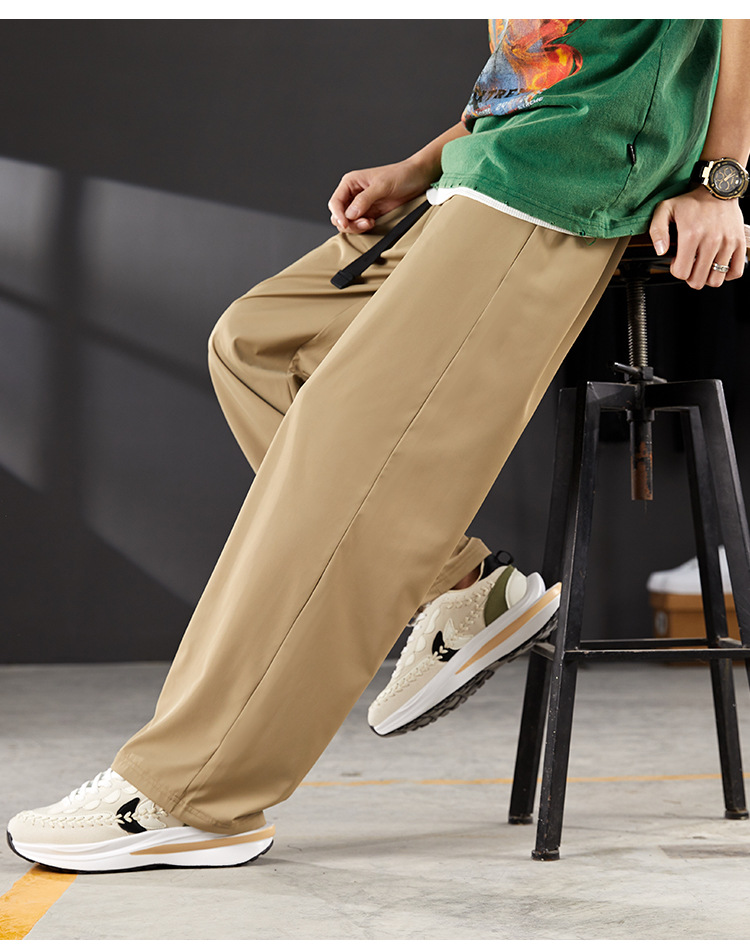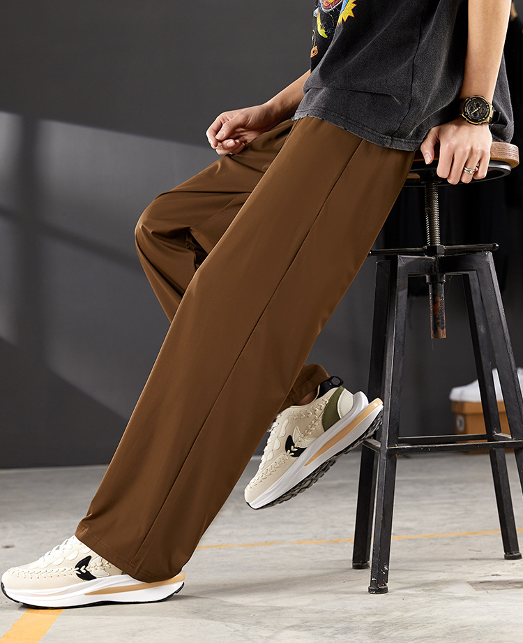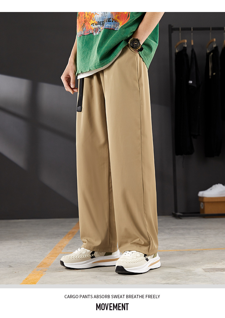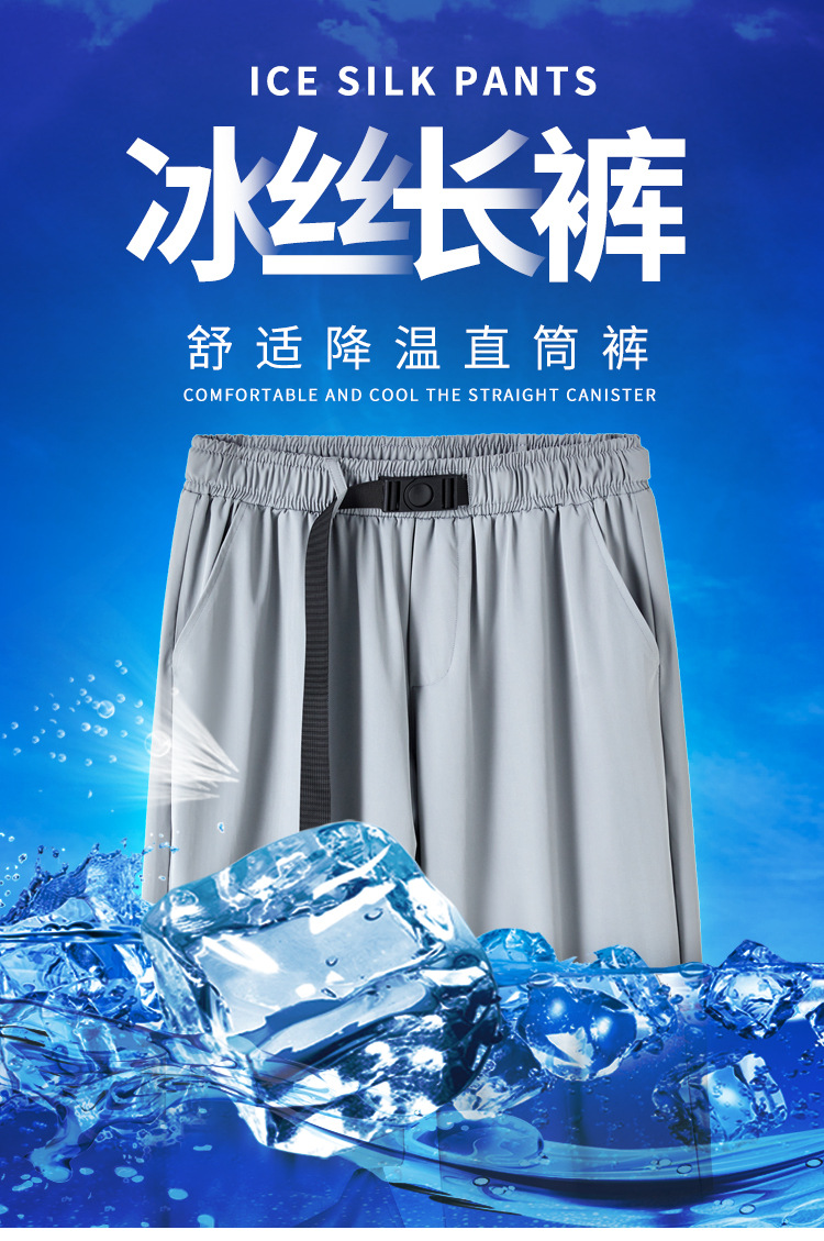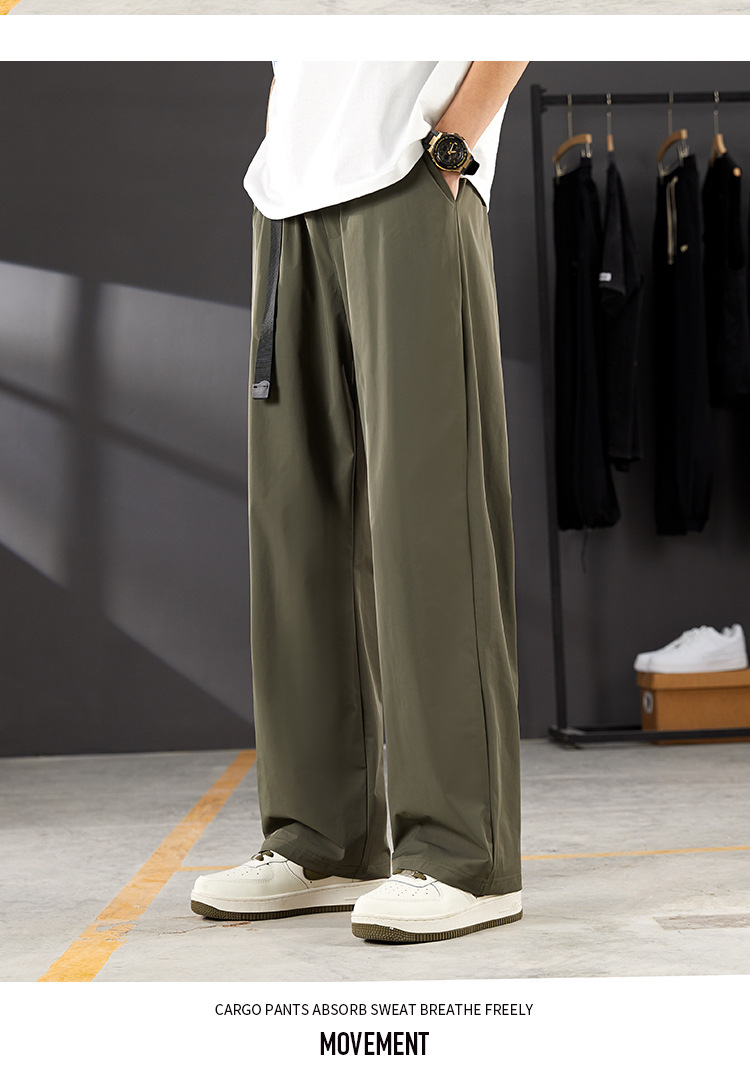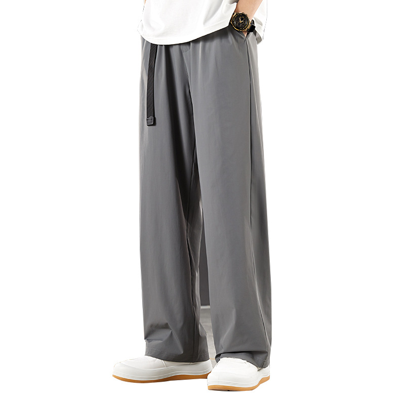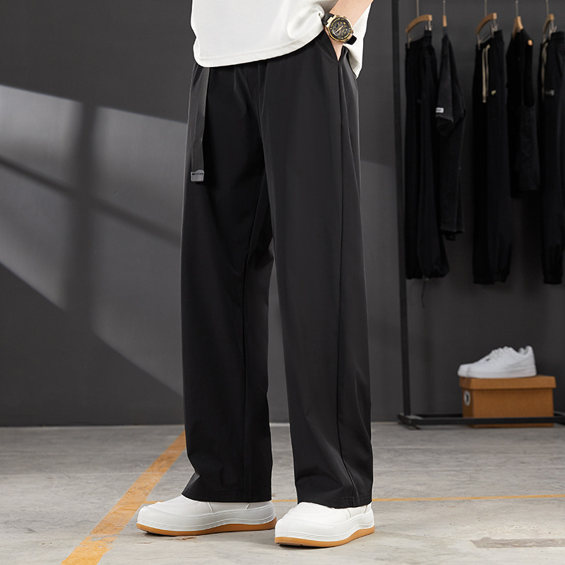 Летние широкие повседневные брюки, мужские прямые тонкие ледяные шелковые быстросохнущие свободные спортивные модные летние мужские дышащие