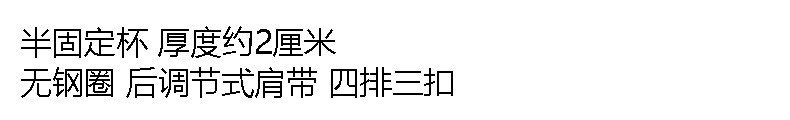 собрать; Без следов; дышащий; Поддержка; Красивая спина; Впитывать пот; Регулируемый тип; Комфортный; Боковое закрытие; Закрыть дополнительную грудь