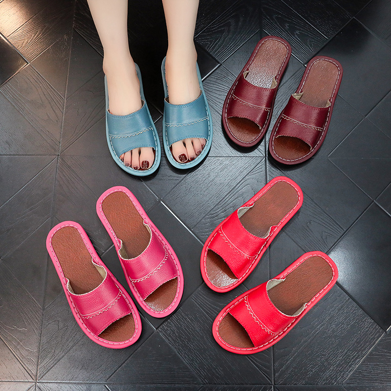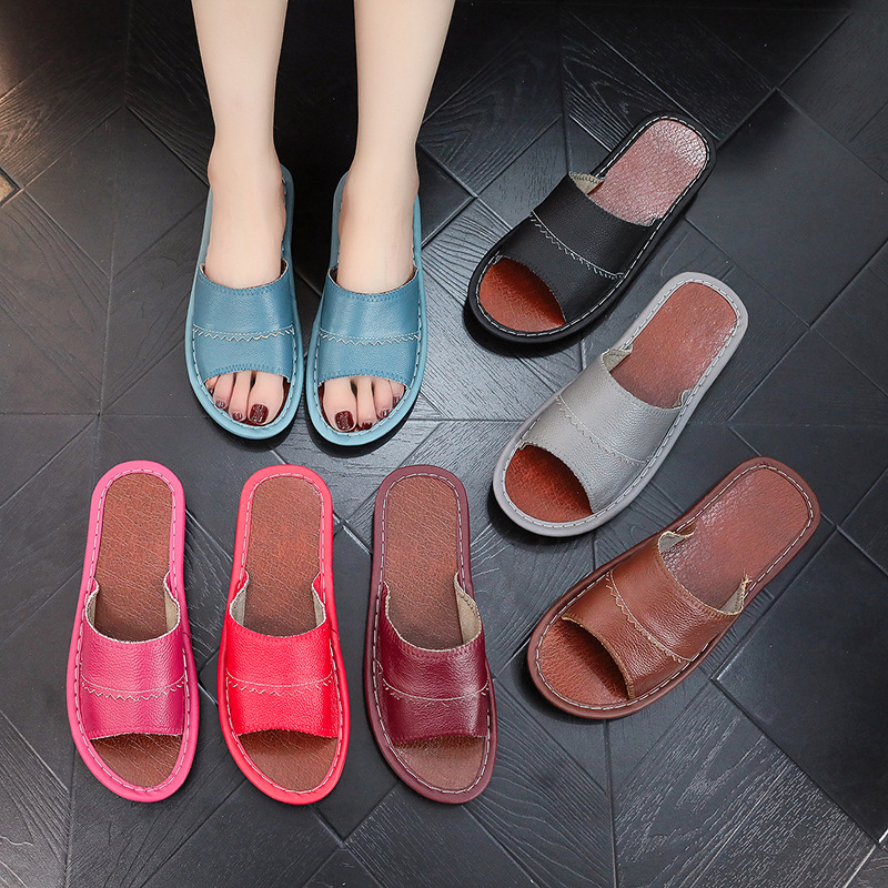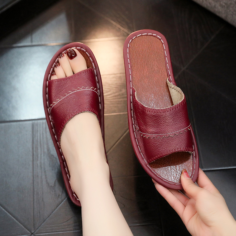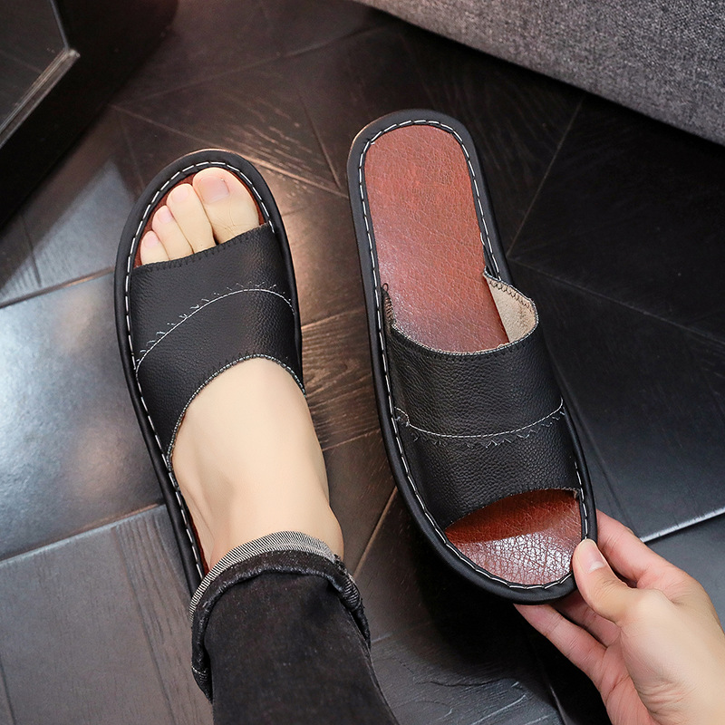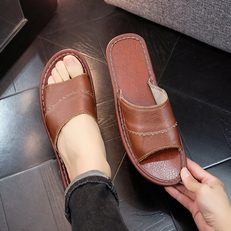 Тапочки из натуральной кожи из чистой воловьей кожи, домашние мужские и женские тапочки Haining, домашние летние нескользящие сандалии для пар с твердой подошвой, дышащие