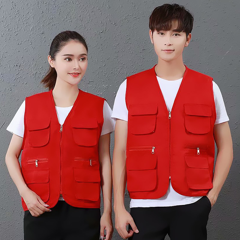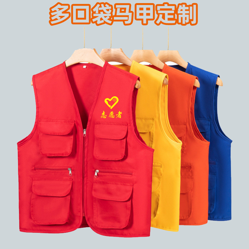 Жилет для Добровольцев С V-образным вырезом и несколькими карманами Индивидуальный логотип Рекламная рабочая одежда Жилет Индивидуальная рабочая одежда Печать рисунка