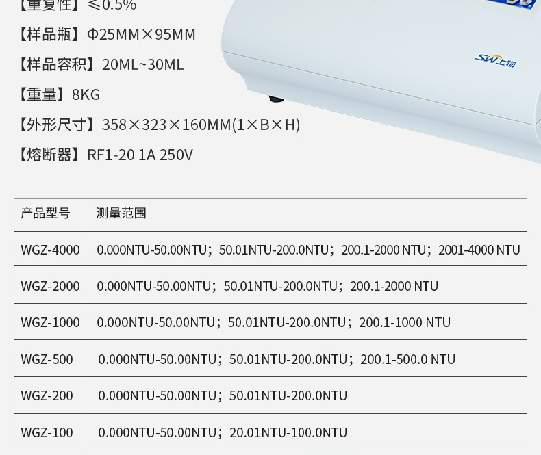 上海上物WGZ系列台式浊度计实验室水质浊度检测仪浊度计