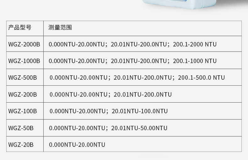 WGZ-100 Настольный измеритель мутности; WGZ-200 Настольный измеритель мутности; WGZ-500 Настольный измеритель мутности; WGZ-1000 Настольный измеритель мутности; WGZ-2000 Настольный измеритель мутности; WGZ-4000 Настольный измеритель мутности; WGZ-20B портативный измеритель мутности; WGZ-50B портативный измеритель мутности; WGZ-100B портативный измеритель мутности; WGZ-200B портативный измеритель мутности; WGZ-500B портативный измеритель мутности; WGZ-1000B портативный измеритель мутности; WGZ-2000B портативный измеритель мутности