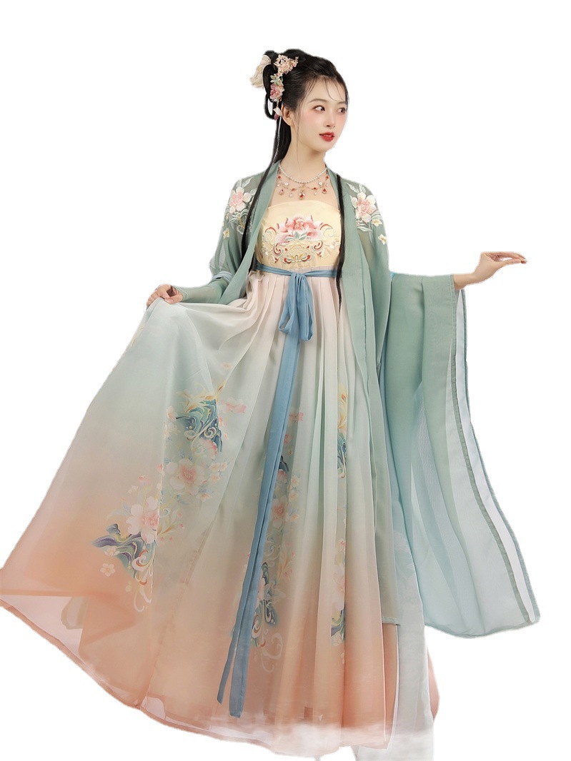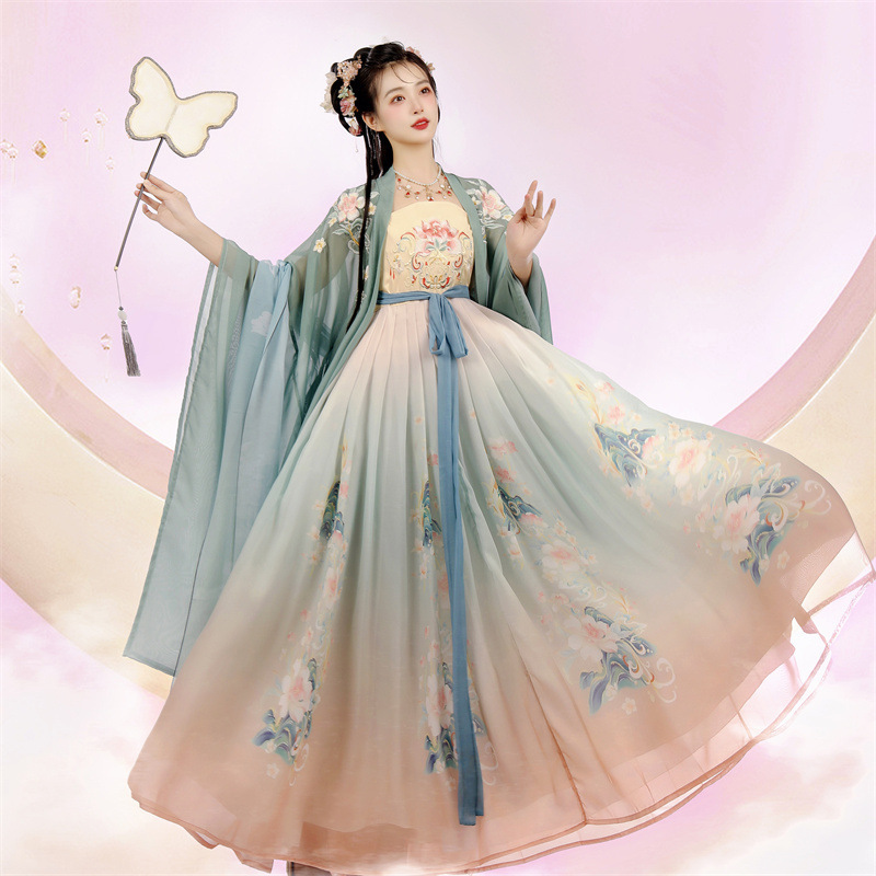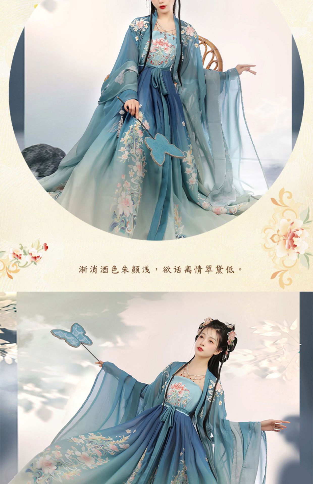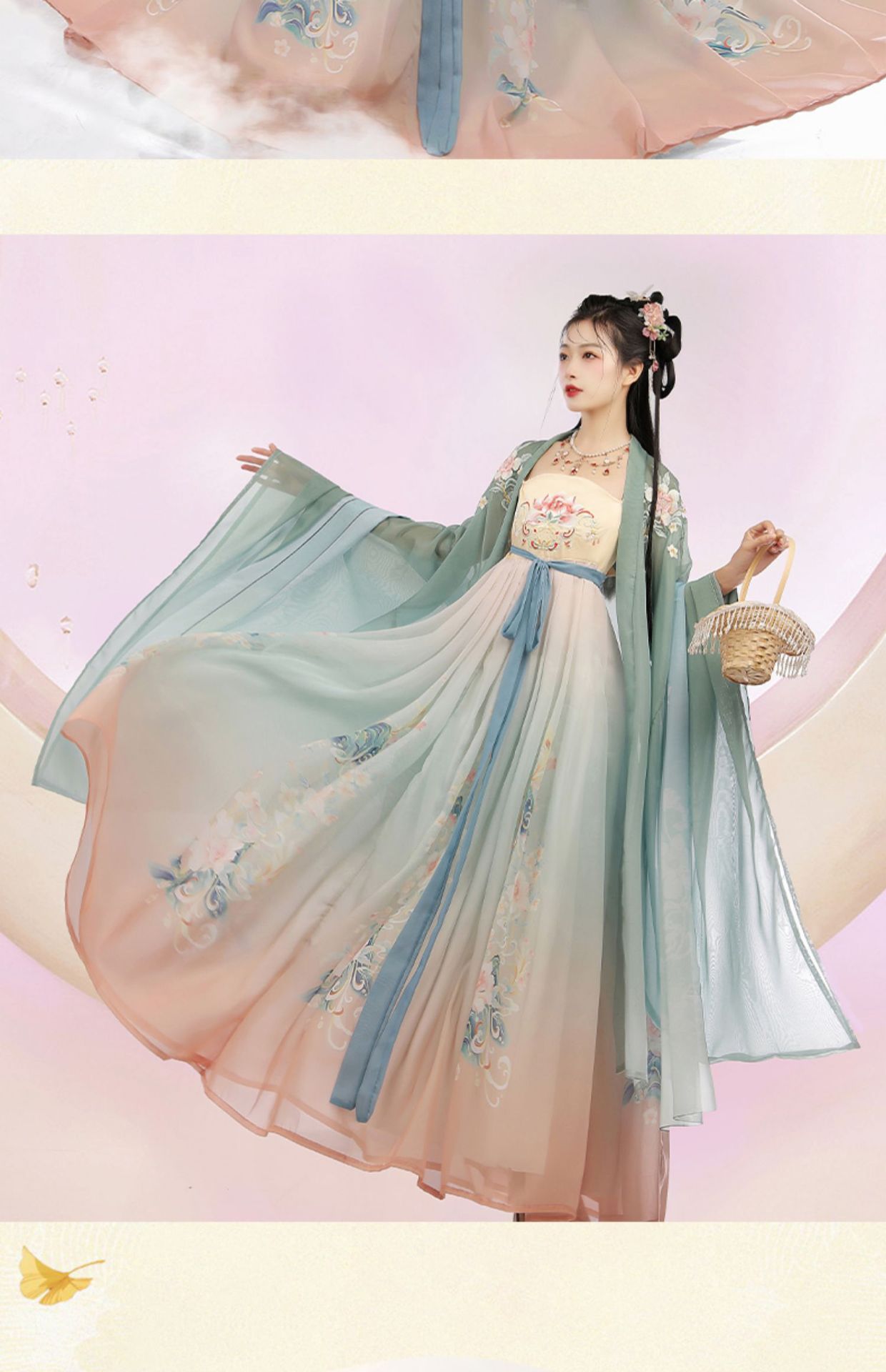 Женская юбка-чебула из ткани Тан, рубашка с большим рукавом и вышивкой, цельная на всю грудь, древний костюм, сказочный стиль, Повседневная Весна и осень, новый стиль