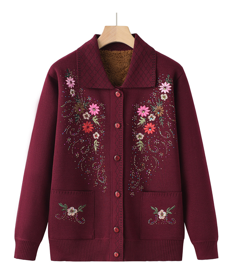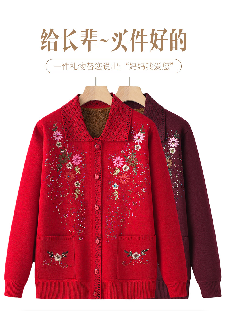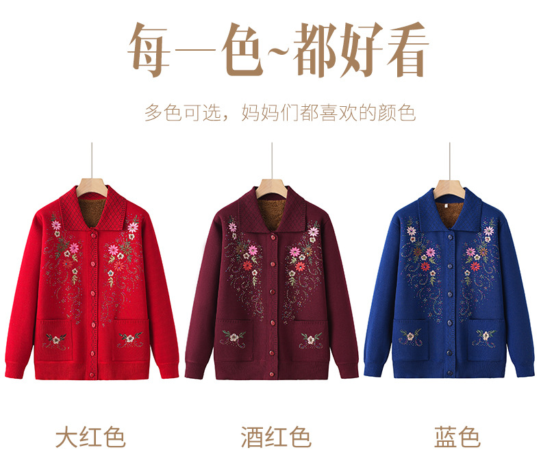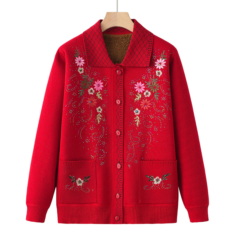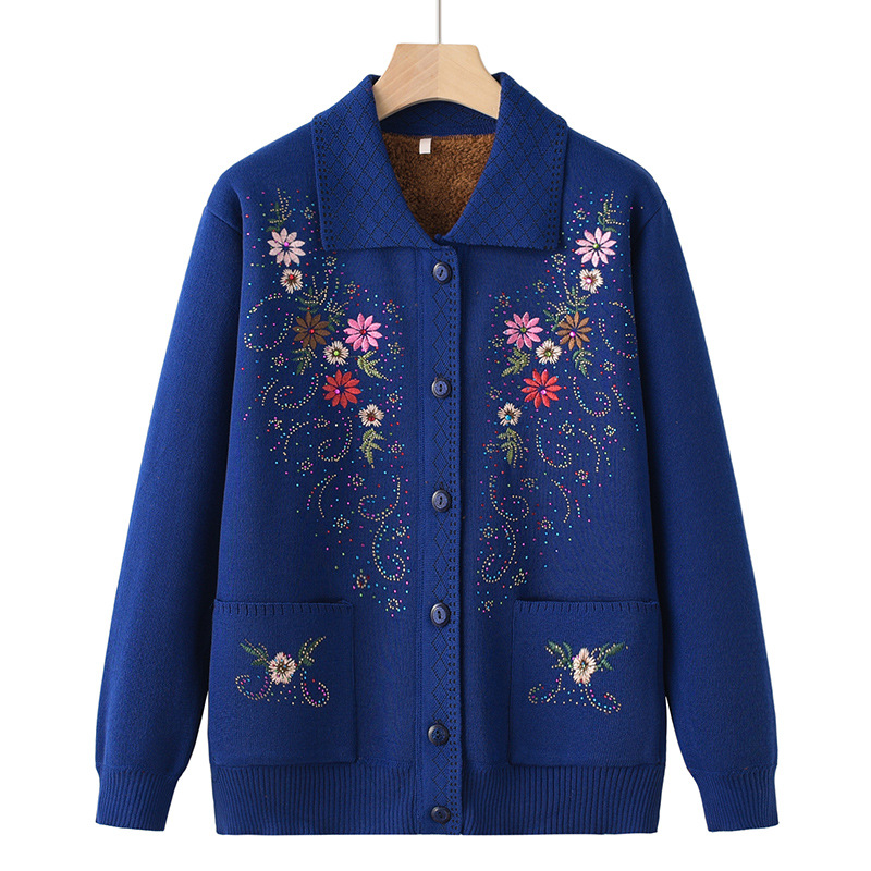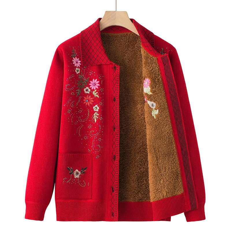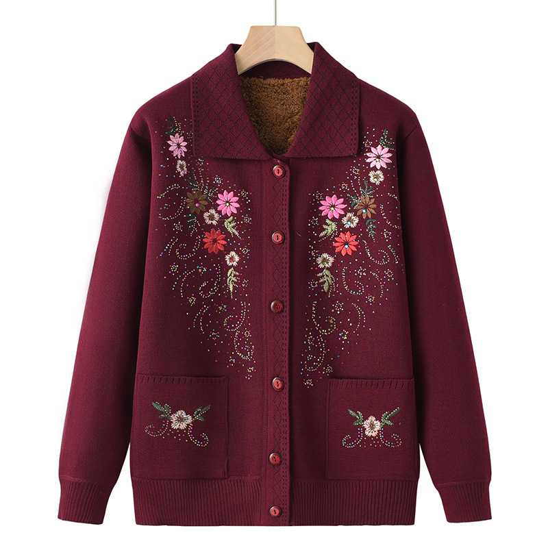 Осенне-зимний костюм старой леди, вязаный свитер на флисовой подкладке, пальто, утепленный свитер с лацканами для бабушки, кардиган для женщин среднего и пожилого возраста, мать