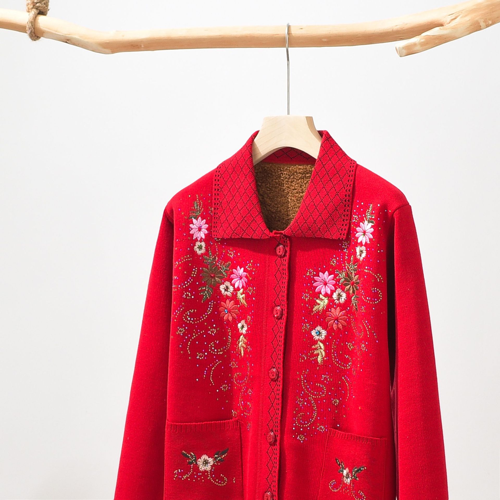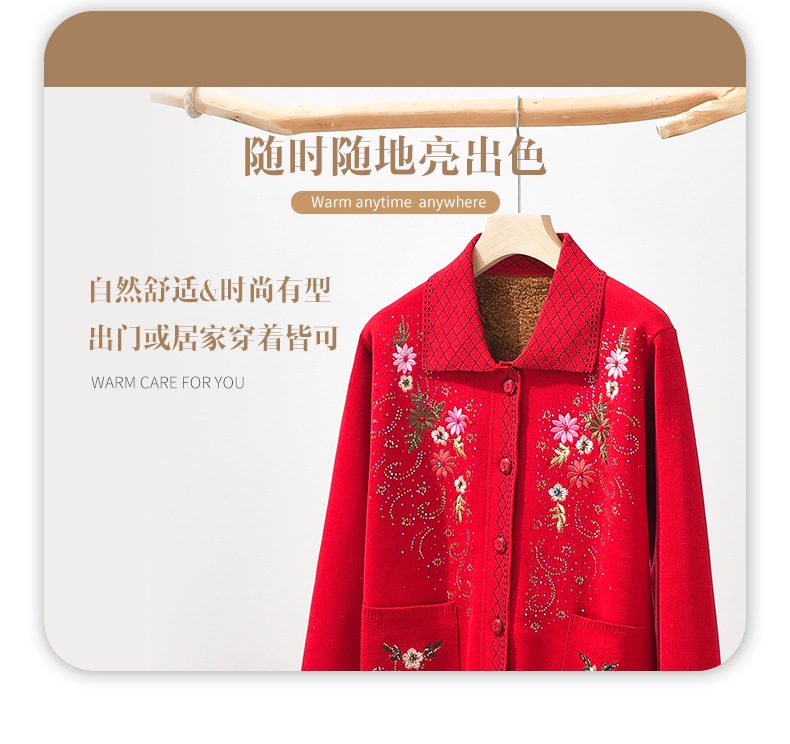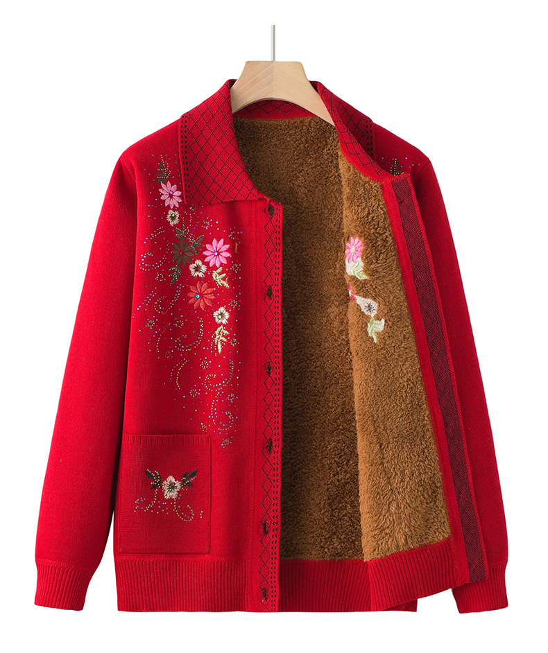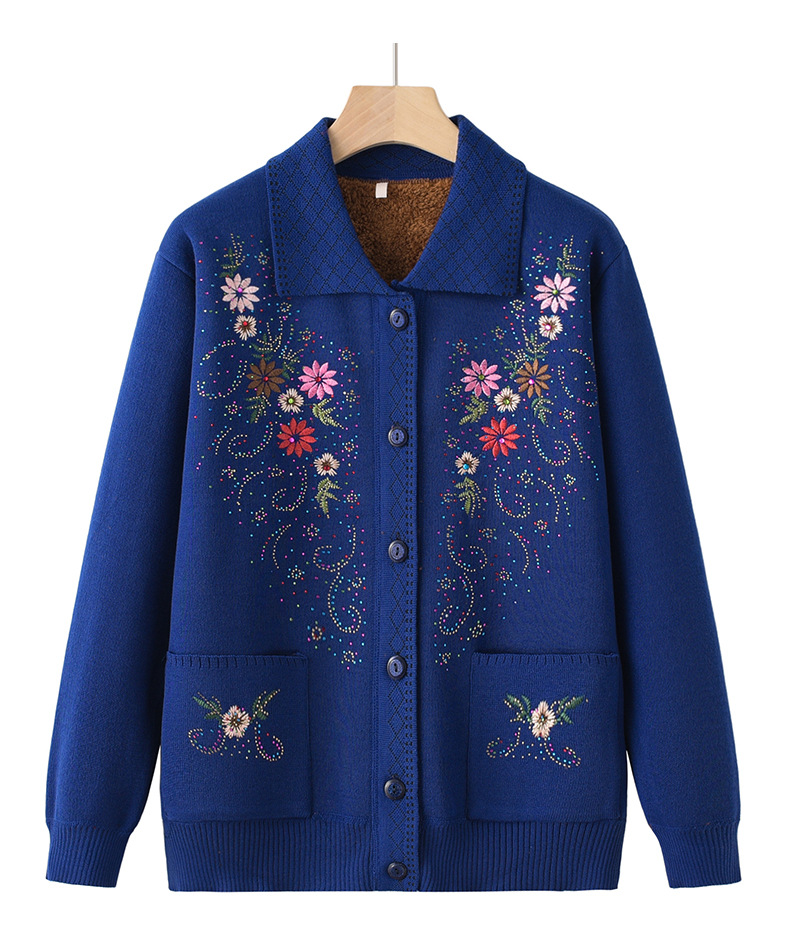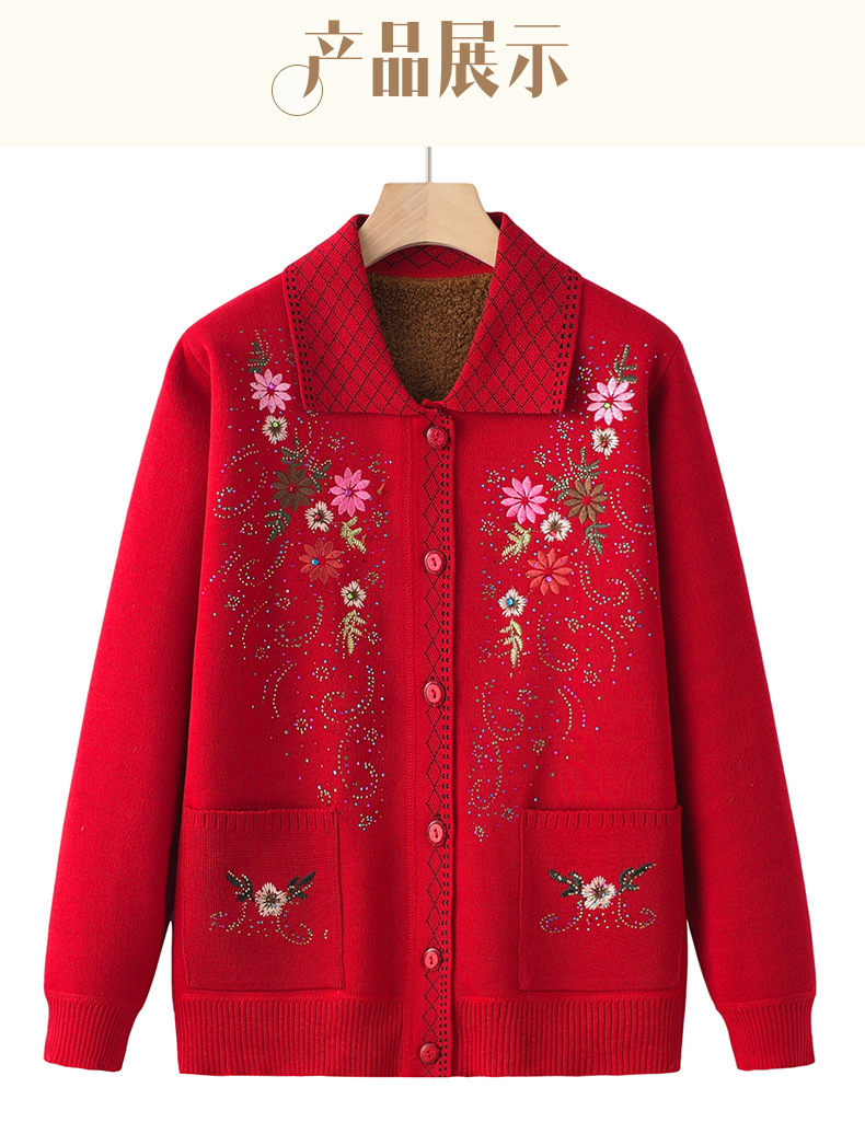 Осенне-зимний костюм старой леди, вязаный свитер на флисовой подкладке, пальто, утепленный свитер с лацканами для бабушки, кардиган для женщин среднего и пожилого возраста, мать