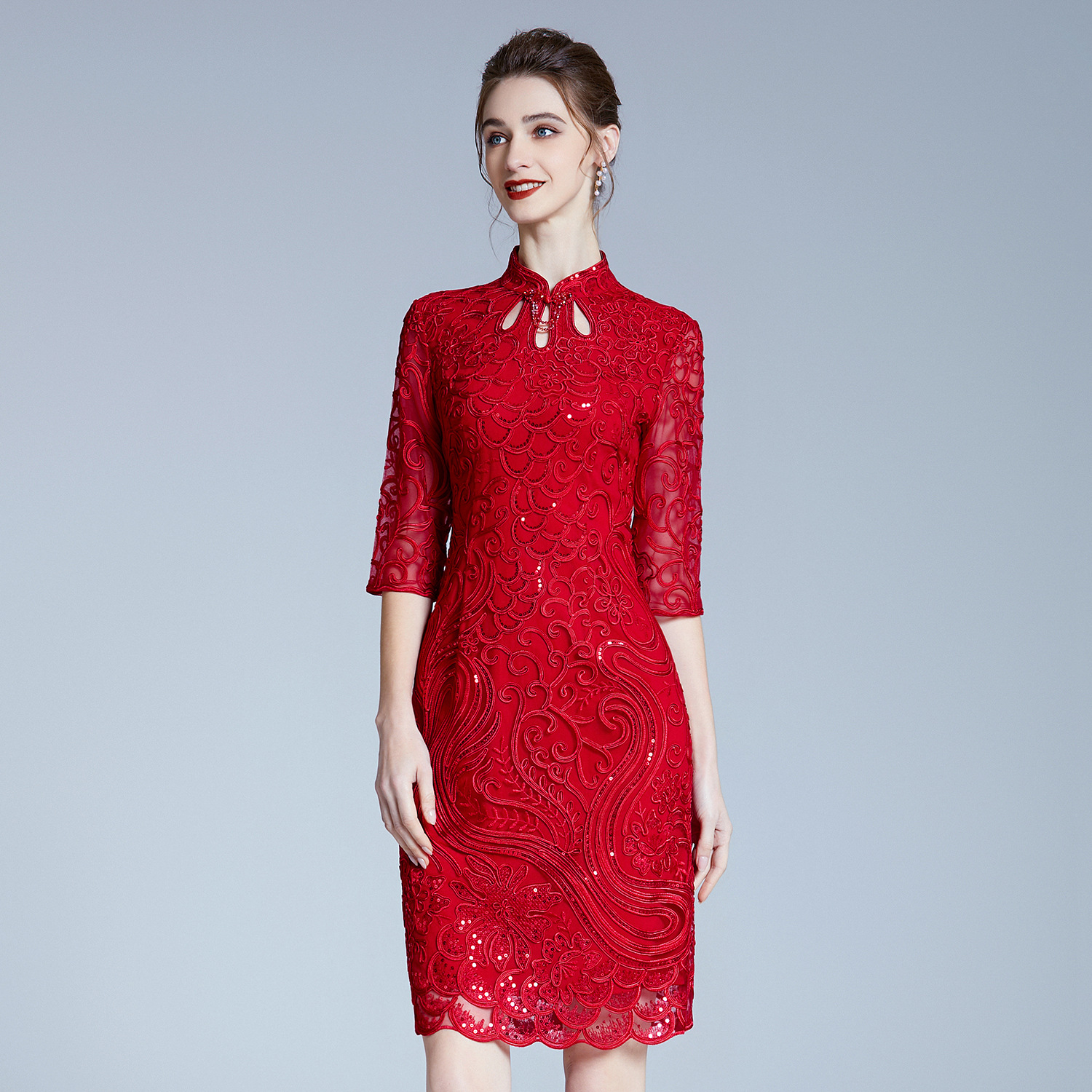 Весеннее высококлассное платье среднего возраста бренд свадебное платье с вышивкой