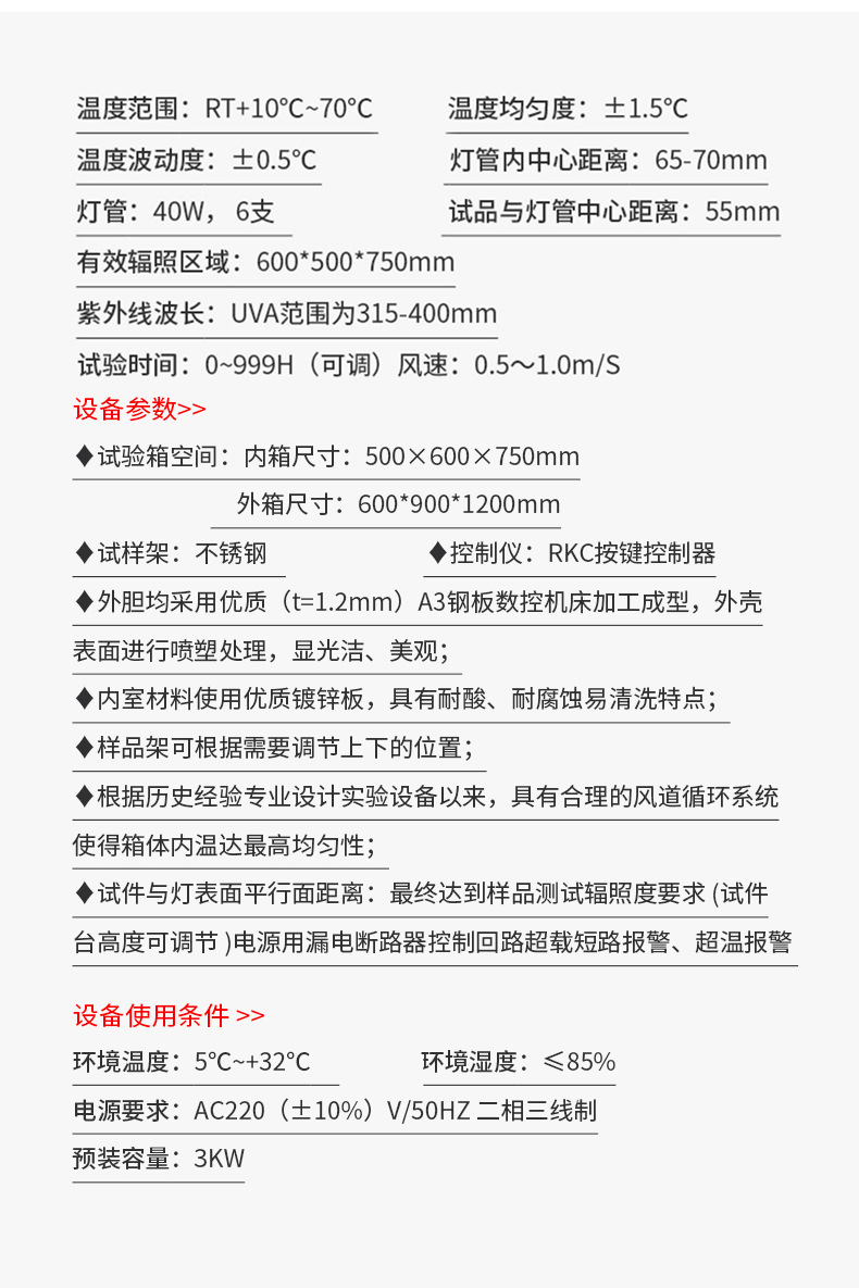Коробчатая УФ-камера для старения с 2 лампами; Камера старения с УФ-излучением «Погнутая башня»; Камера УФ-старения объемом 225 л с лампой Shanghai; Камера УФ-старения на 225 л (голландская лампа); Слоняющаяся башня в фиолетовом стиле, голландская лампа с солнечным светом; Модель ксеноновой лампы емкостью 150 л с компрессором Copeland США