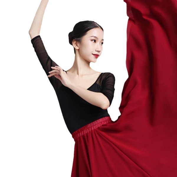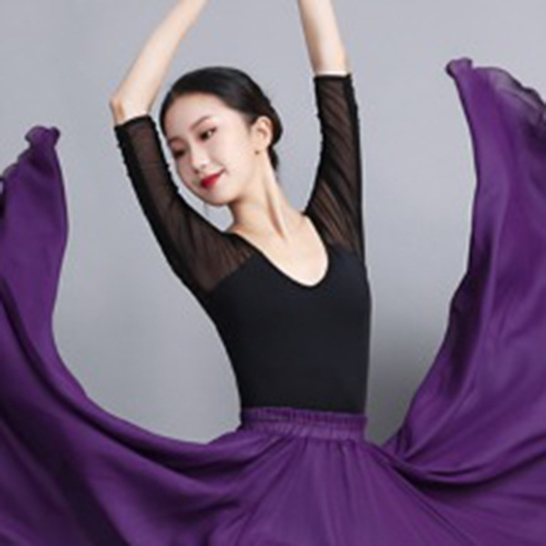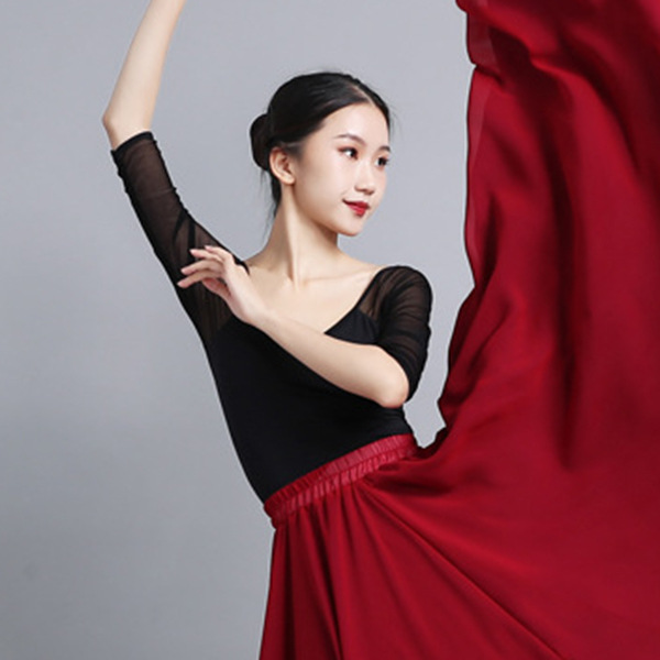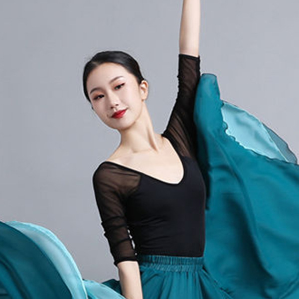Современная танцевальная сетчатая рубашка, одежда для занятий балетом, танцевальные топы с длинными и короткими рукавами, боди, эластичная марлевая одежда.