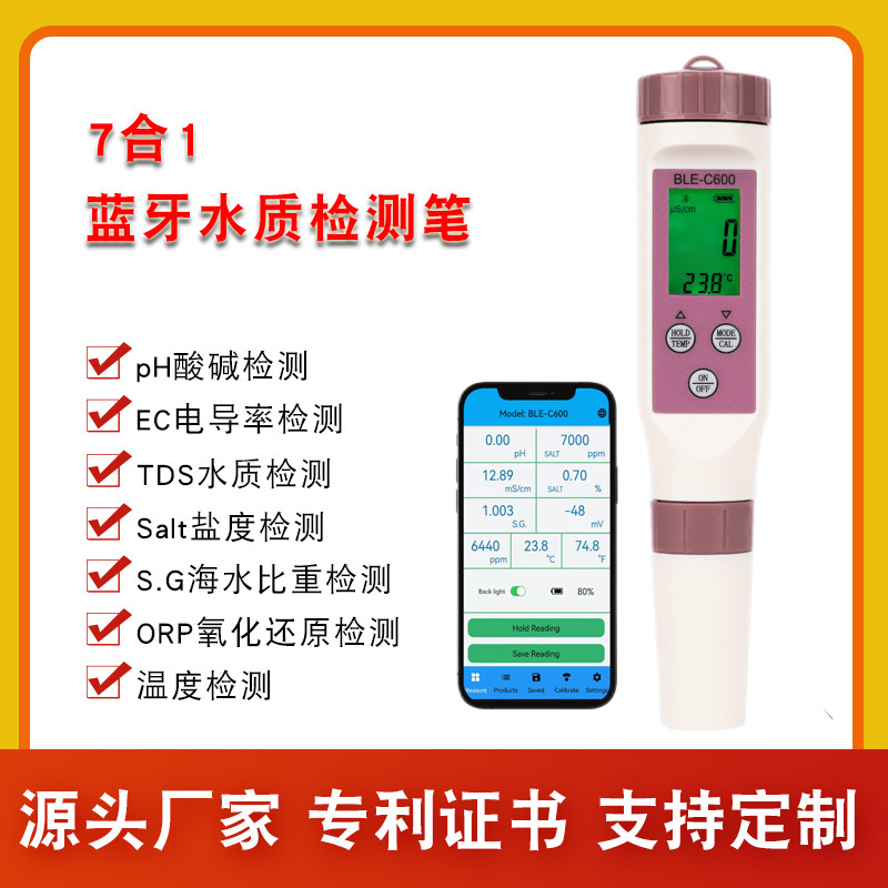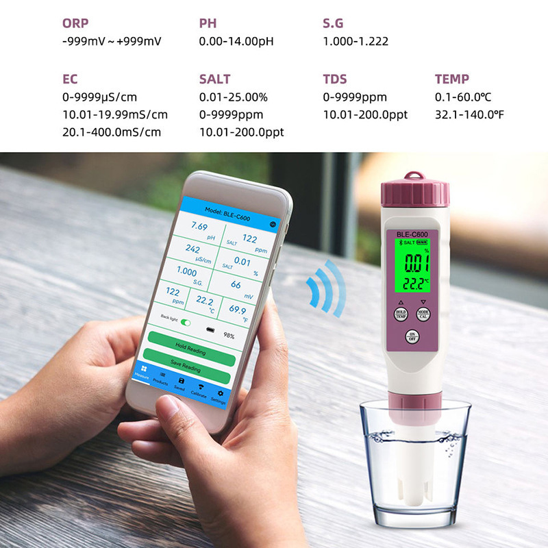 Bluetooth 7-в-1 ручка для проверки качества воды PH/TDS/EC/соленость/SG/ORP/температура многофункциональная тестовая ручка